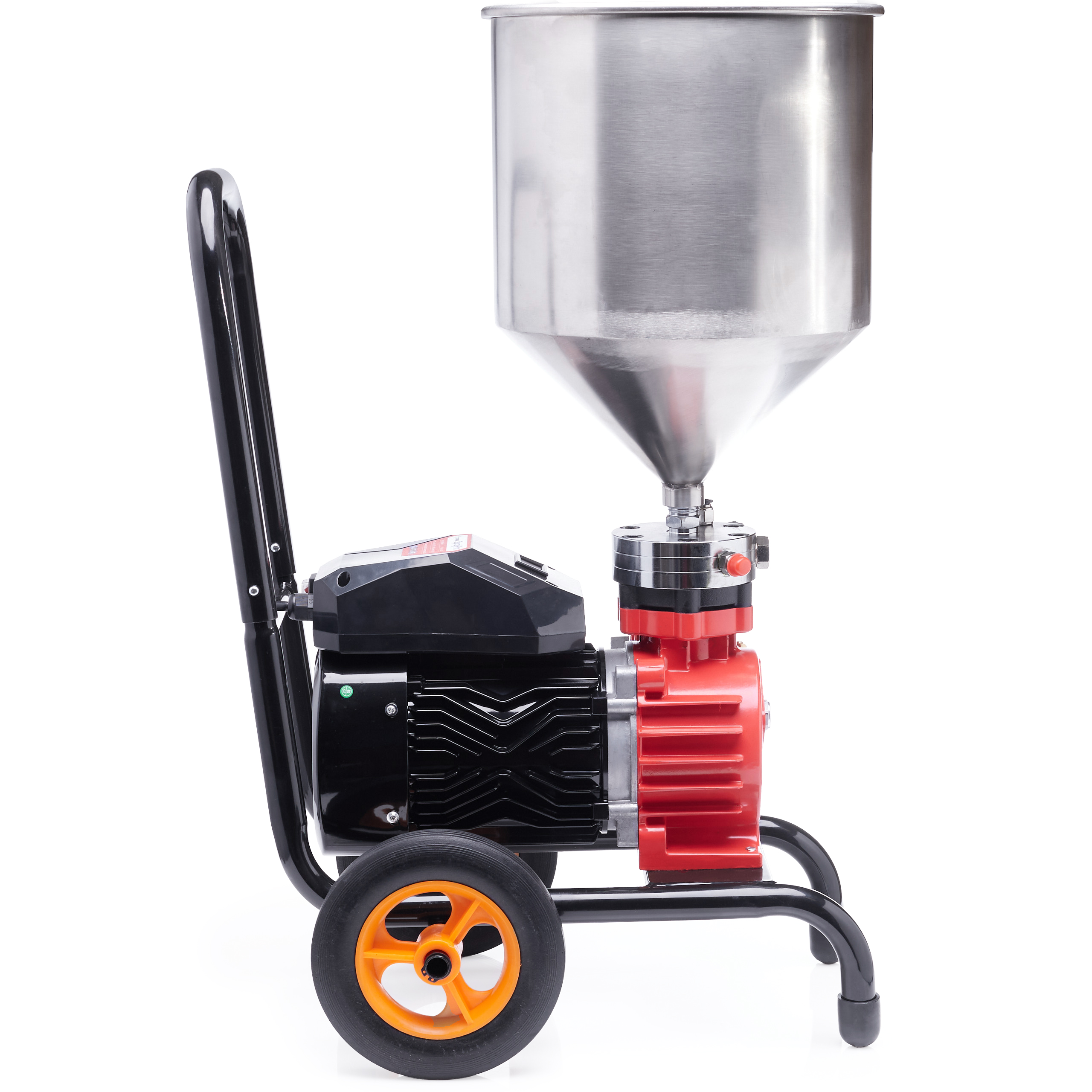 Stalowy zbiornik na farbę o pojemności 18 L w formie leja, montowany bezpośrednio na głowicę agregatu, zapewnia ciągły dopływ farby dzięki spływowi grawitacyjnemu. Wykonanie z nierdzewnej stali INOX ułatwia czyszczenie, gwarantuje odporność na korozję i sprawdza się przy intensywnym użytkowaniu.