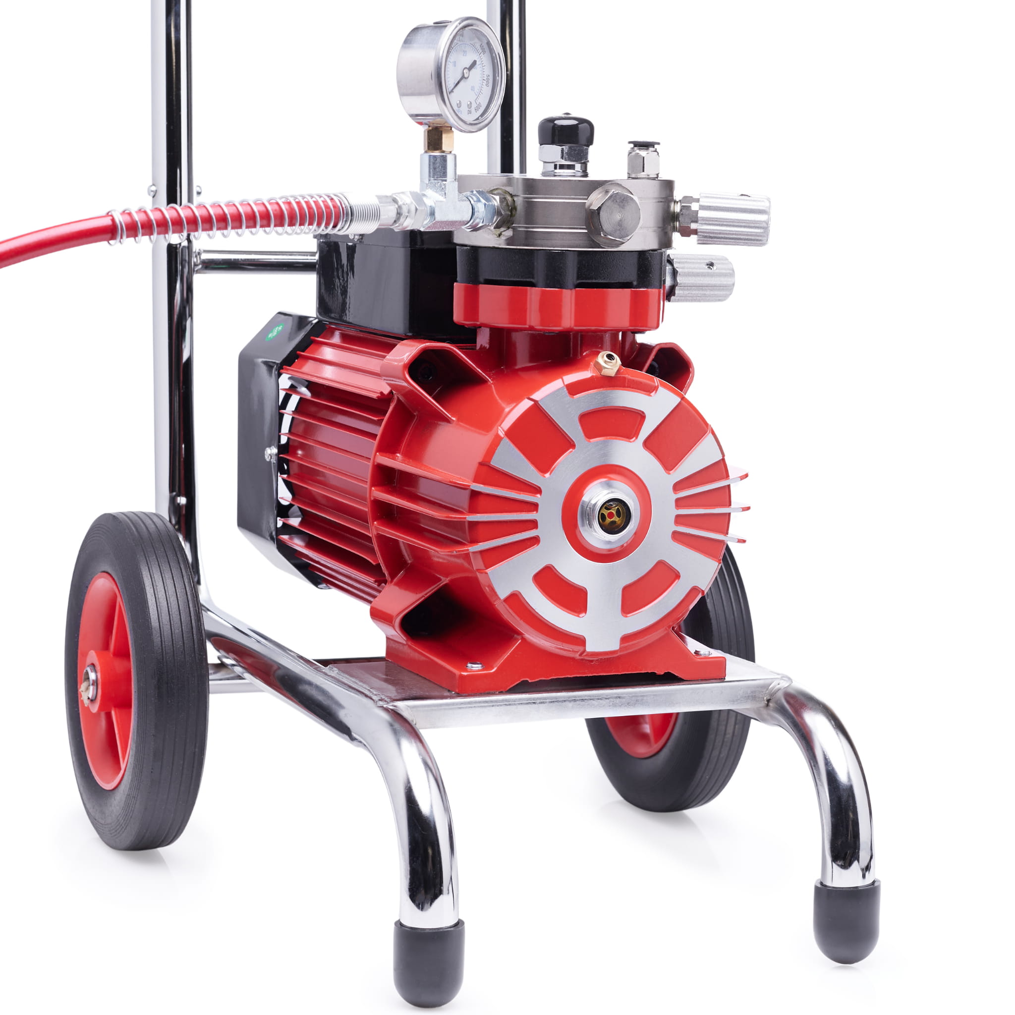 Moc 3500W zapewnia stabilną i płynną pracę nawet przy dużym obciążeniu. Dzięki temu urządzenie jest w stanie obsłużyć szeroki zakres farb, od wodnych emulsji po gęstsze powłoki dekoracyjne. Nie musisz martwić się o przegrzanie ani spadek wydajności – agregat membranowy został zaprojektowany do długotrwałej eksploatacji. Wysoka moc silnika pozwala na malowanie dużych powierzchni w krótkim czasie, co znacznie przyspiesza realizację Twoich projektów.