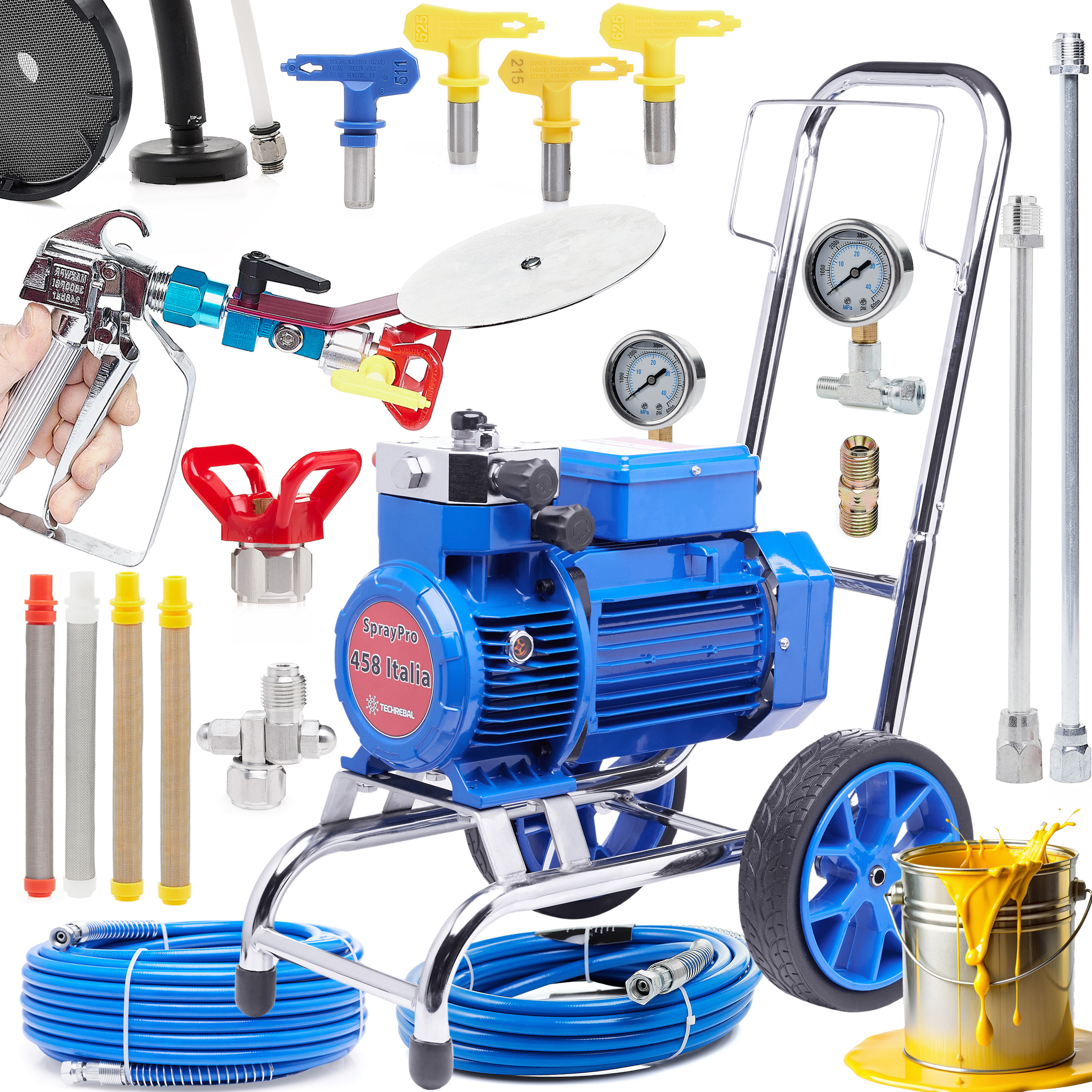 AGREGAT MALARSKI HYDRODYNAMICZNY MEMBRANOWY 458 ITALIA 4500W 2x WĄŻ 2x LANCA 50cm 4x DYSZA 4x FILTR CLEAN SHOT