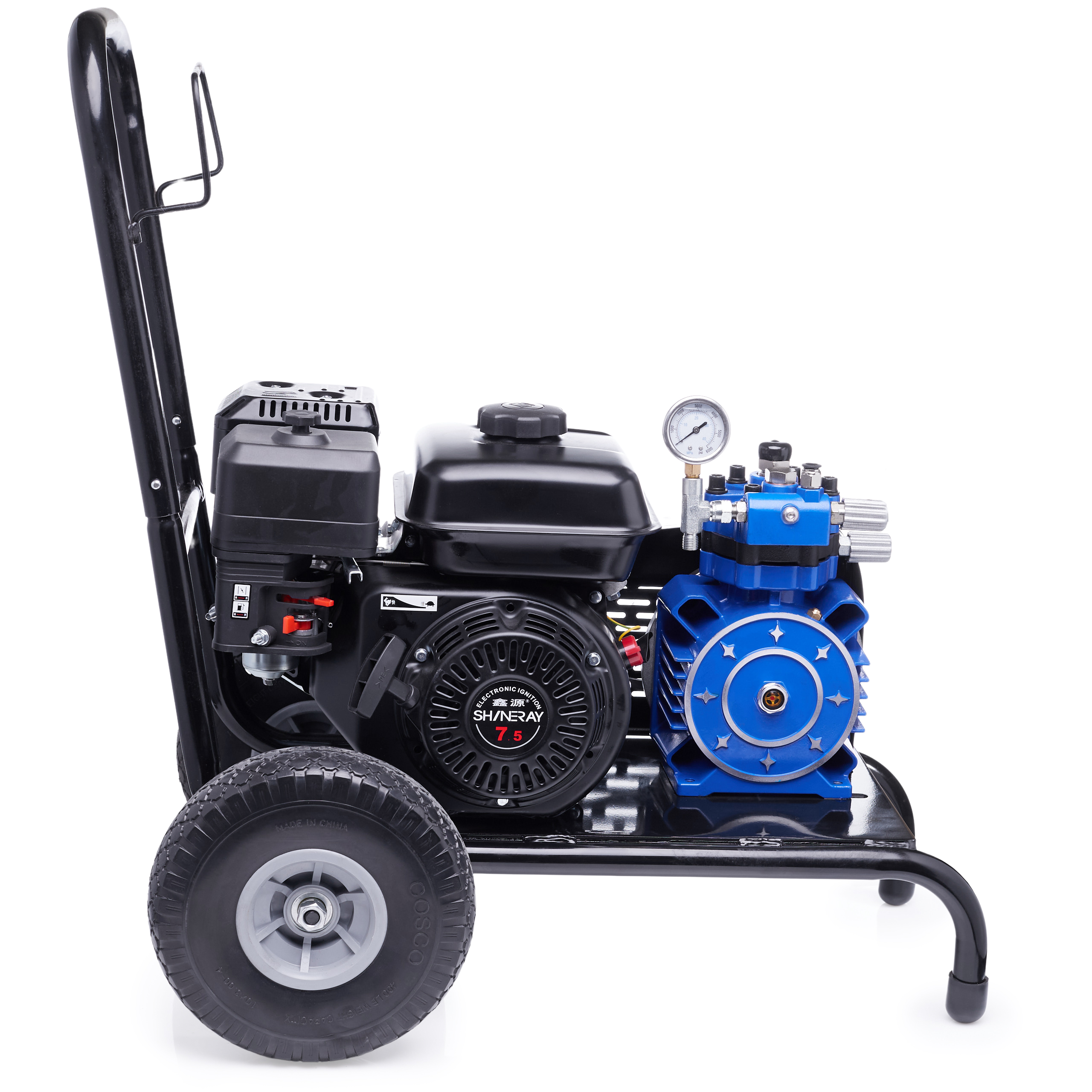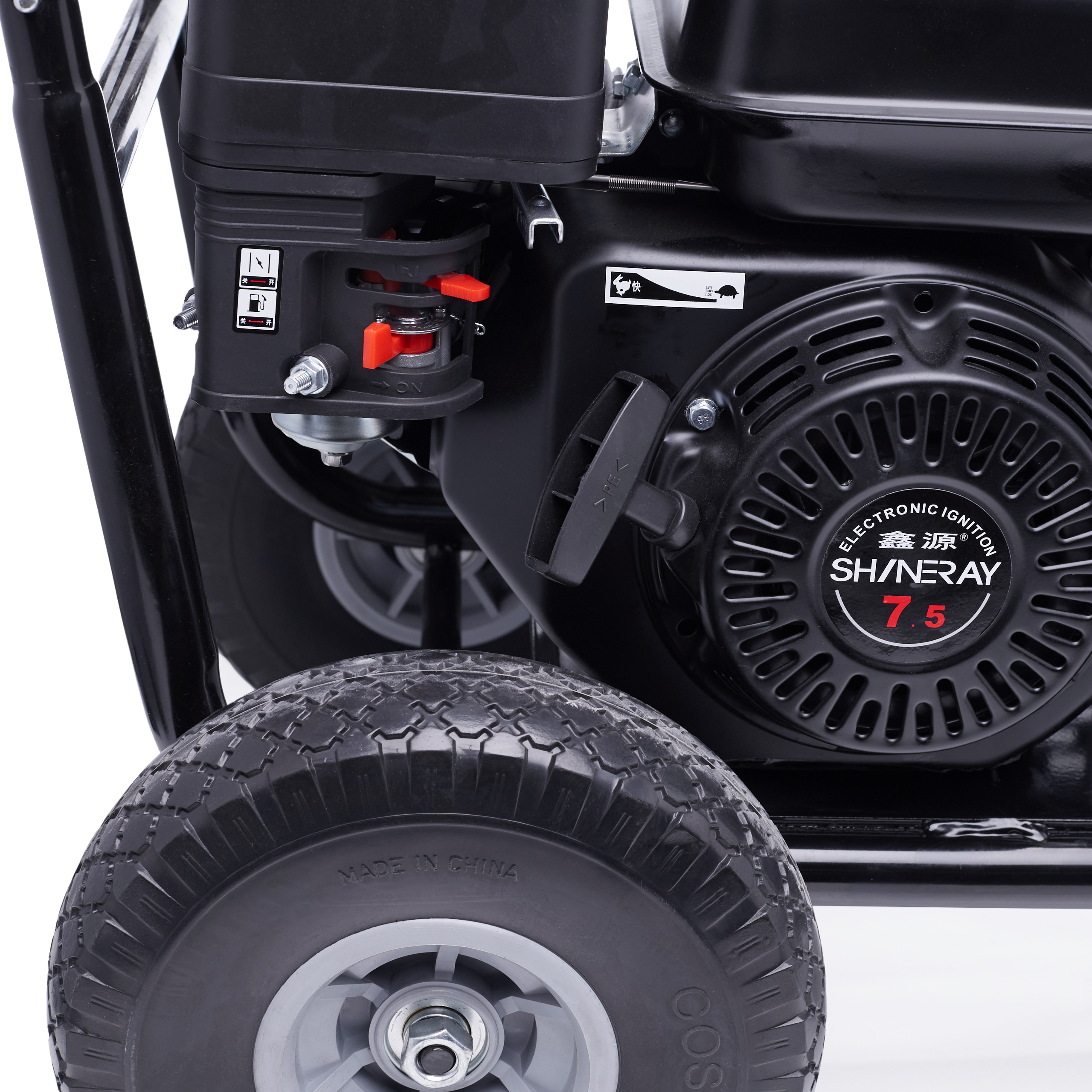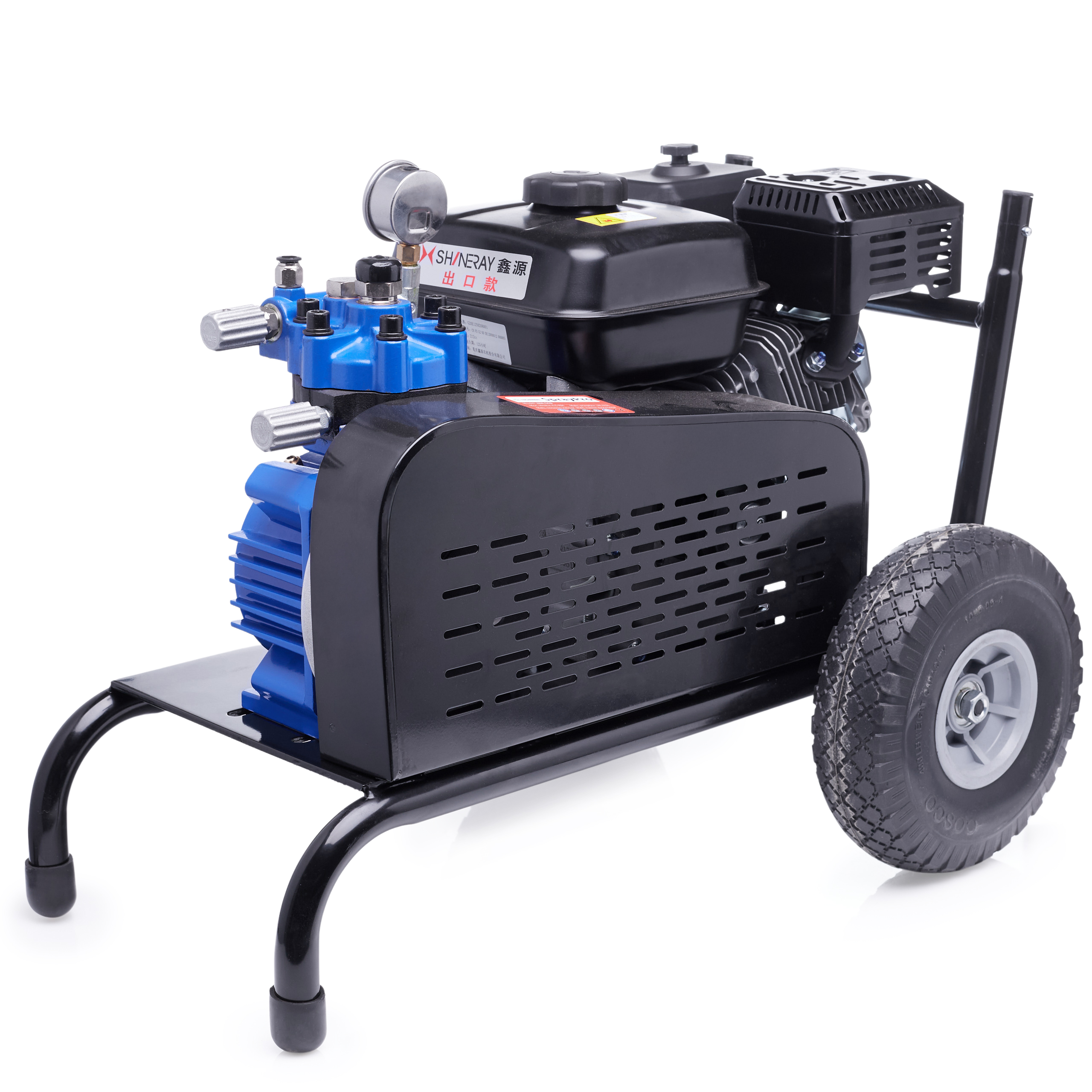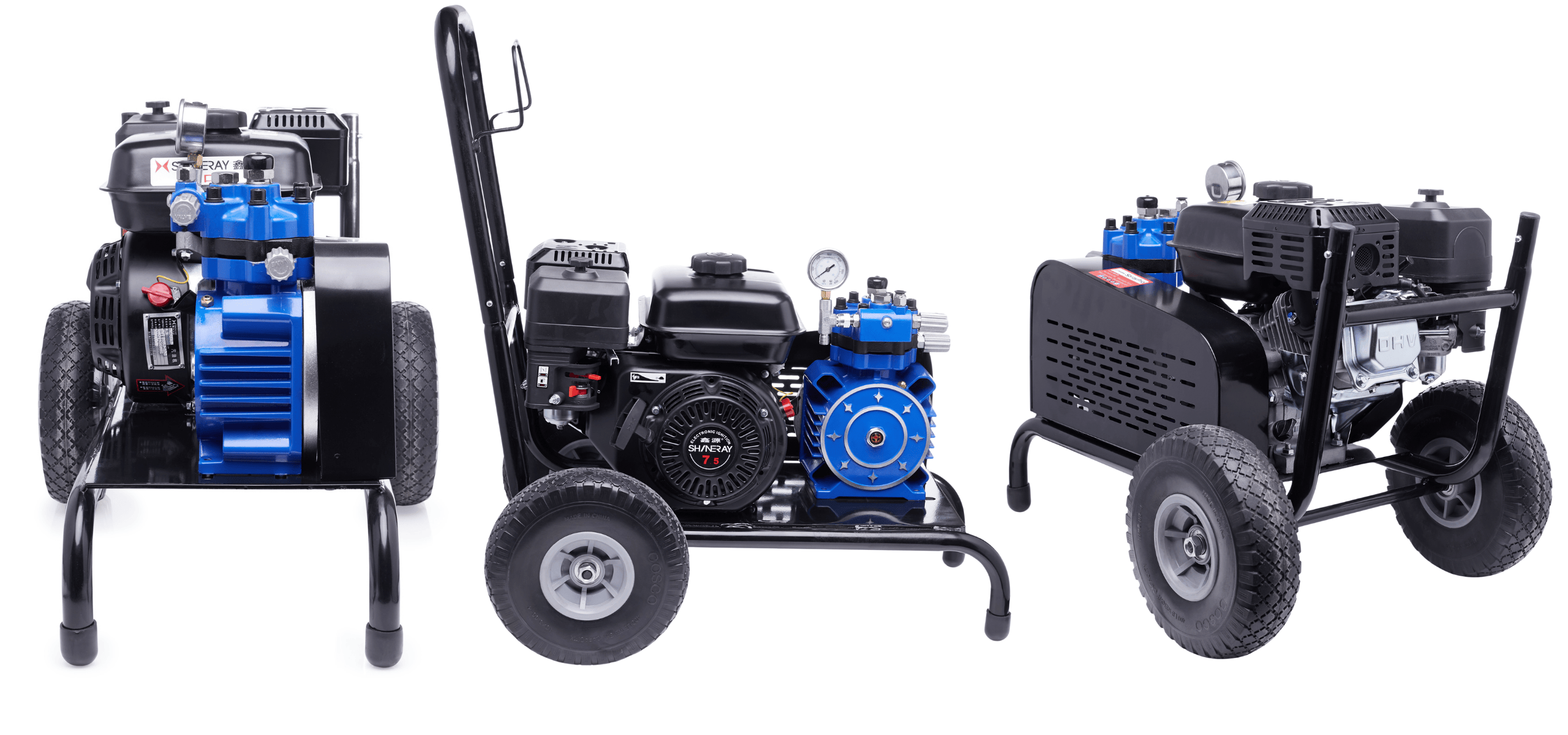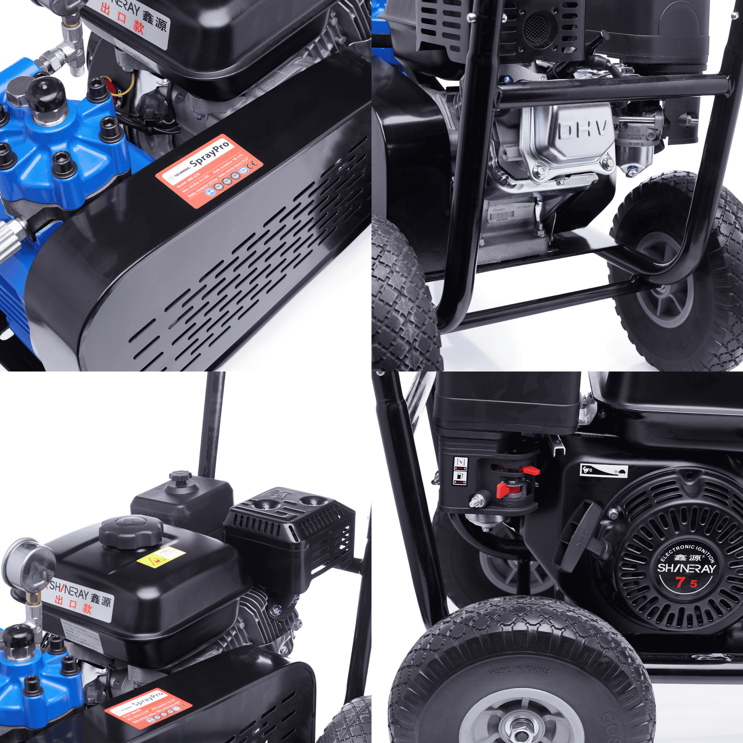 ✅ Ergonomiczne rozwiązania - Stabilny wózek transportowy z wygodnym uchwytem i dużymi kołami ułatwia przemieszczanie agregatu, nawet na nierównych nawierzchniach.
