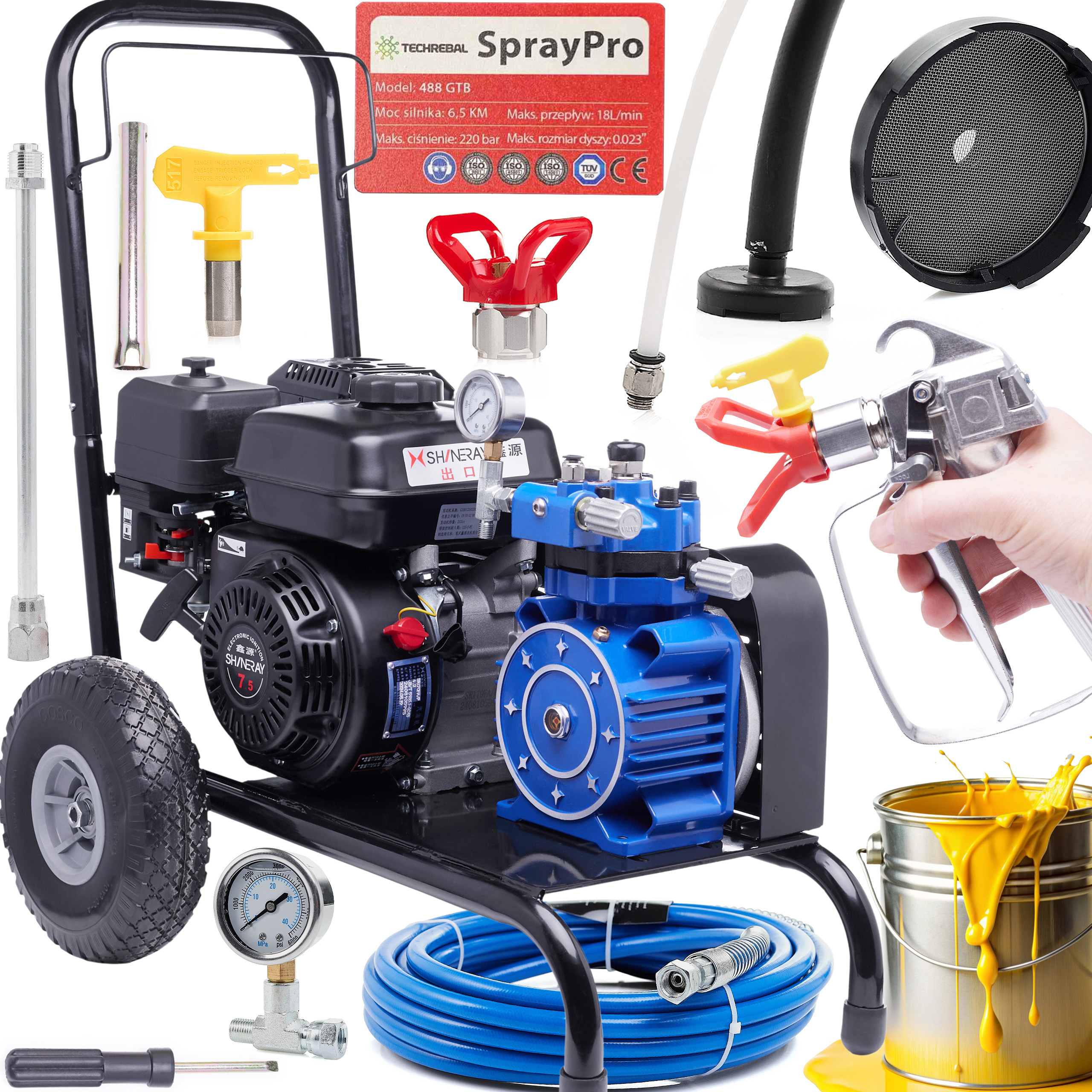 AGREGAT MALARSKI SPALINOWY HYDRODYNAMICZNY MEMBRANOWY 488 GTB do 18l/min wąż 10m lanca 50cm dysza 517