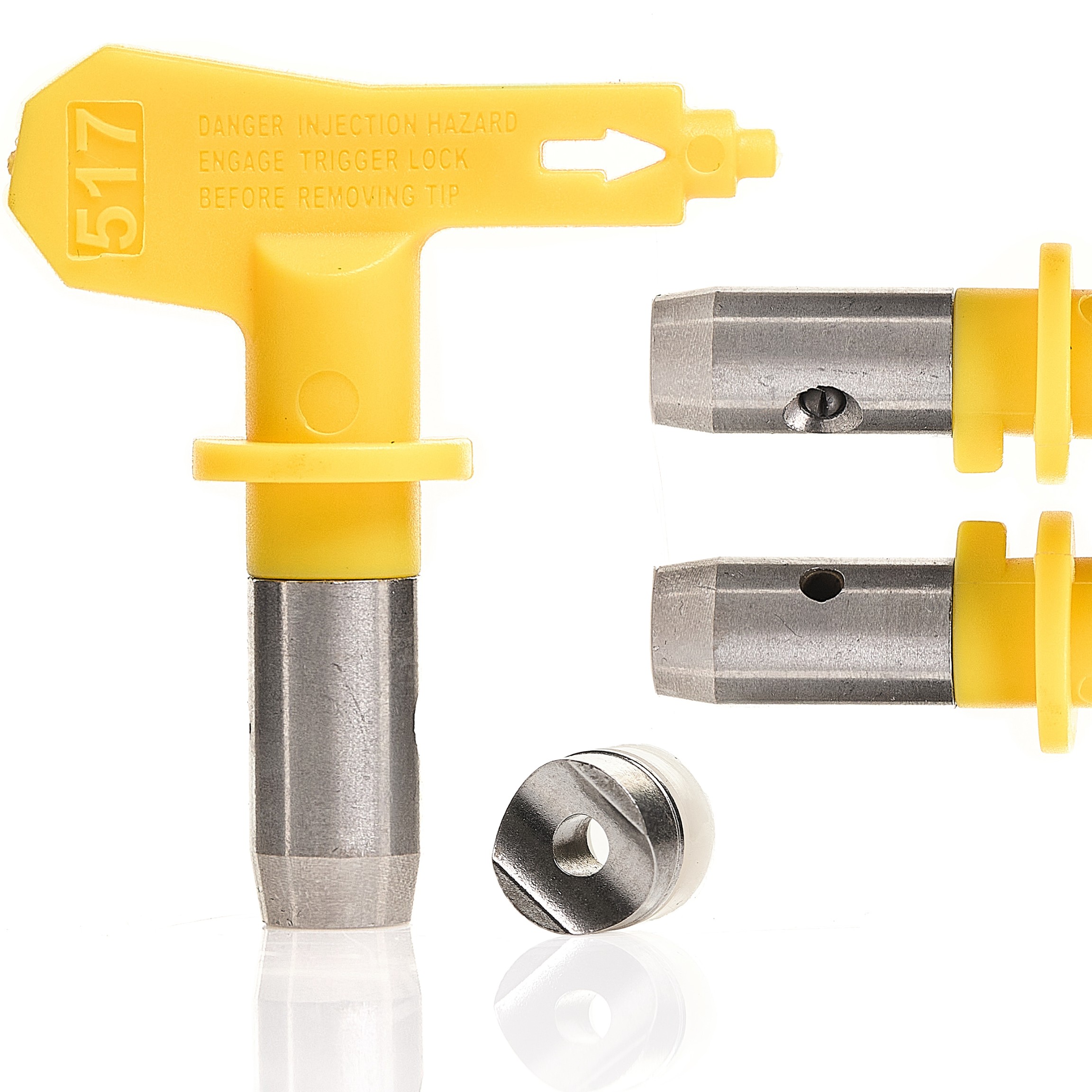 2️⃣ Dwie ostatnie cyfry (B) odnoszą się do rozmiaru otworu dyszy i rodzaju farby, którą można aplikować. Im większa liczba, tym gęstsza farba, którą dysza może obsłużyć. Na przykład dysza "517" oznacza szerokość strumienia 25 cm i średnicę otworu dyszy 0,017 cala.