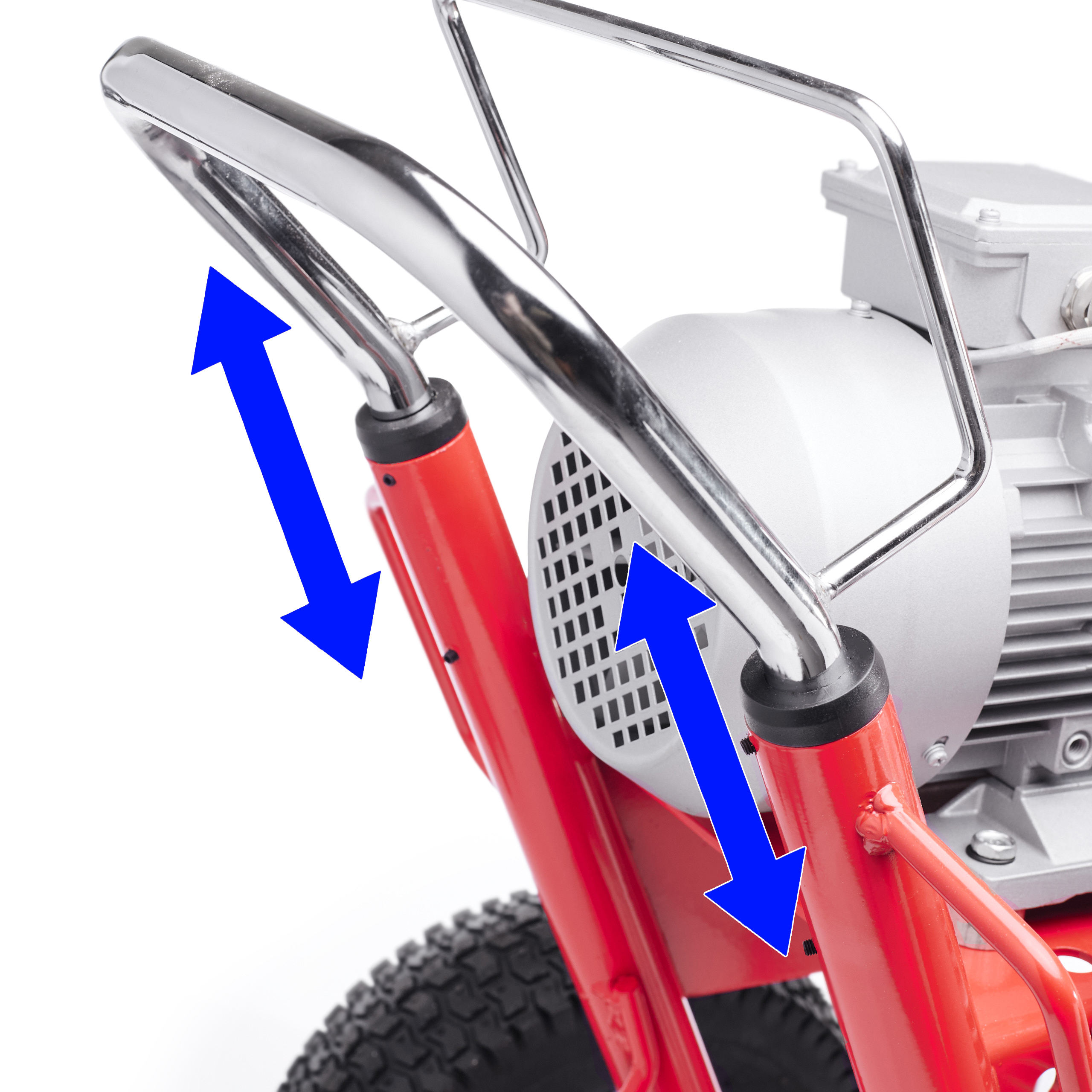 - Duże koła terenowe – mobilność bez ograniczeń! Łatwe przemieszczanie po nierównych powierzchniach, nawet na placach budowy bez windy.