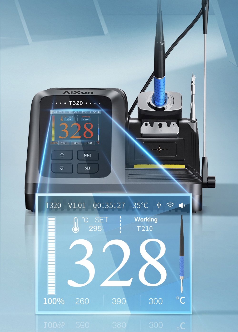 Stacja lutownicza Aixun T320 wykorzystuje innowacyjne rozwiązanie w postaci technologii sterowania dotykowego, która eliminuje potrzebę użycia tradycyjnych przycisków.