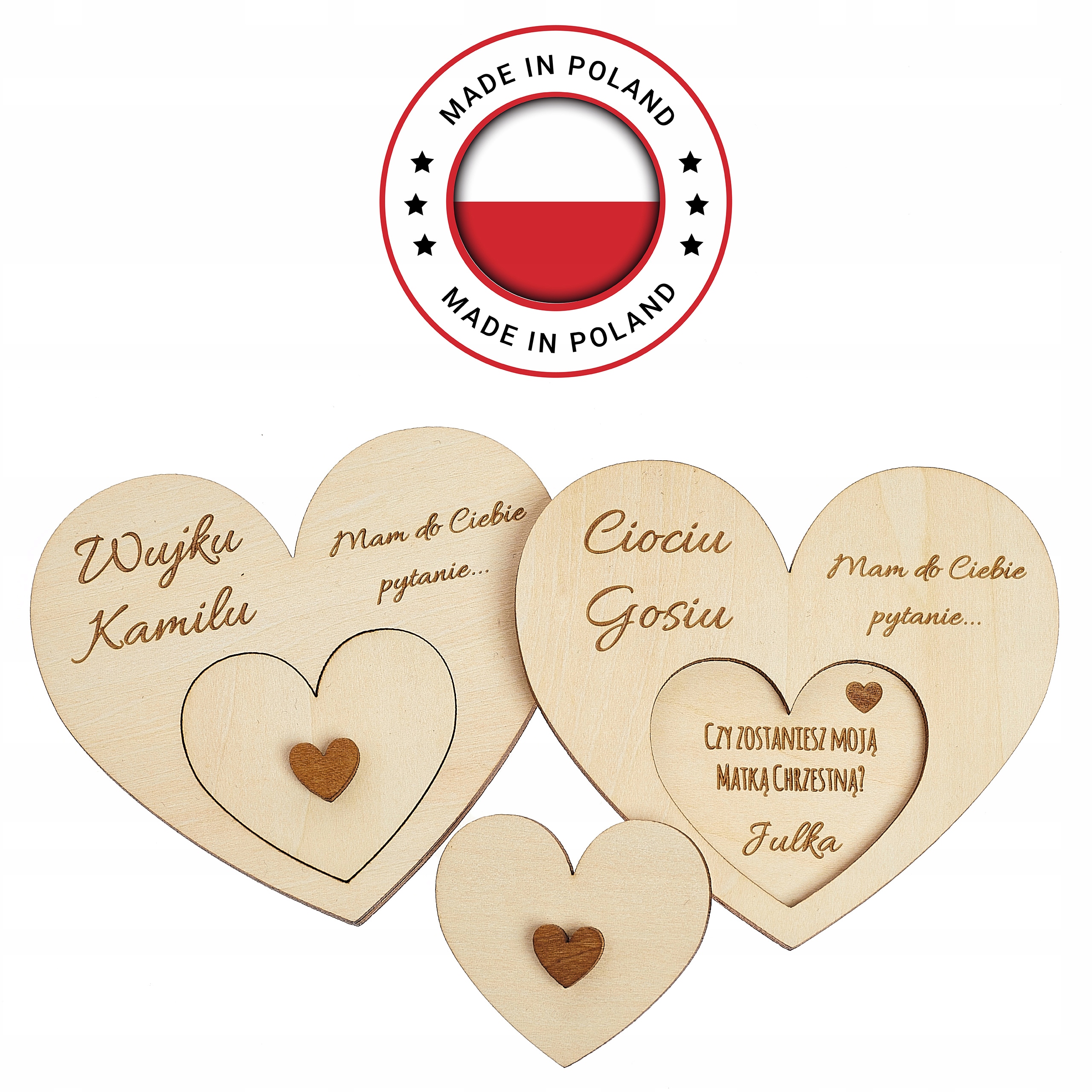 Szukasz oryginalnego sposobu, aby zadać pytanie bliskim osobom, czy chcieliby przyjąć rolę chrzestnego? Mamy dla Ciebie idealne rozwiązanie! Nasze personalizowane pytanie dla przyszłych chrzestnych wykonane jest z najwyższej jakości drewna o grubości 3mm, co gwarantuje trwałość i estetyczny wygląd tego niezwykłego upominku.