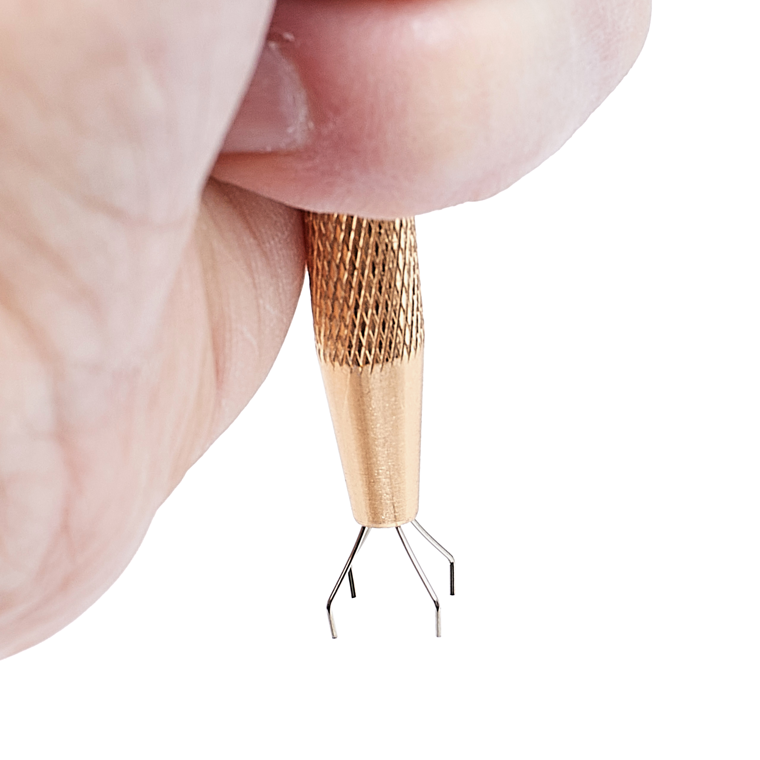 Chwytak wyposażony jest w trzy elastyczne haczyki, które umożliwiają pewne i precyzyjne trzymanie małych elementów, takich jak części elektroniczne, jubilerskie czy mechaniczne.