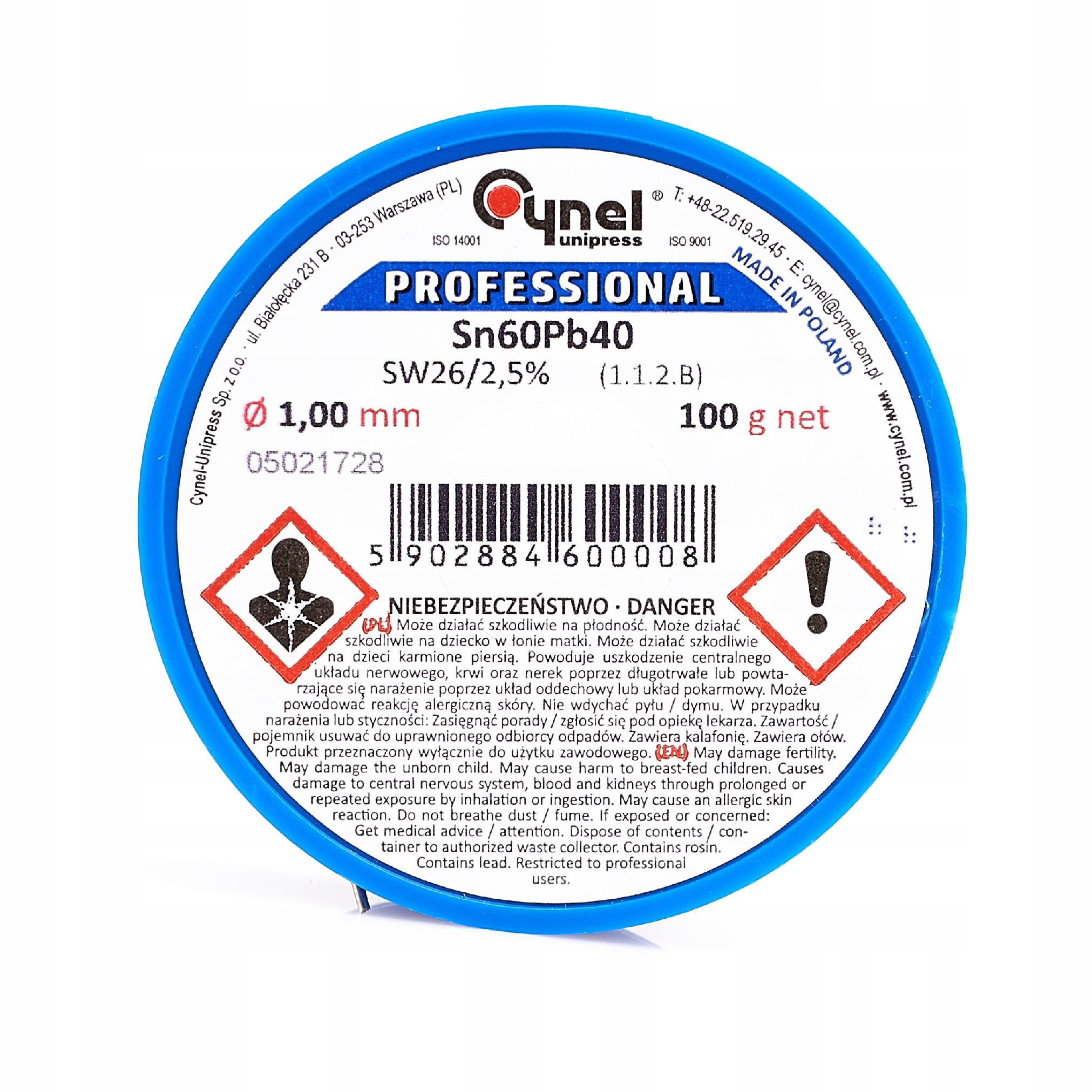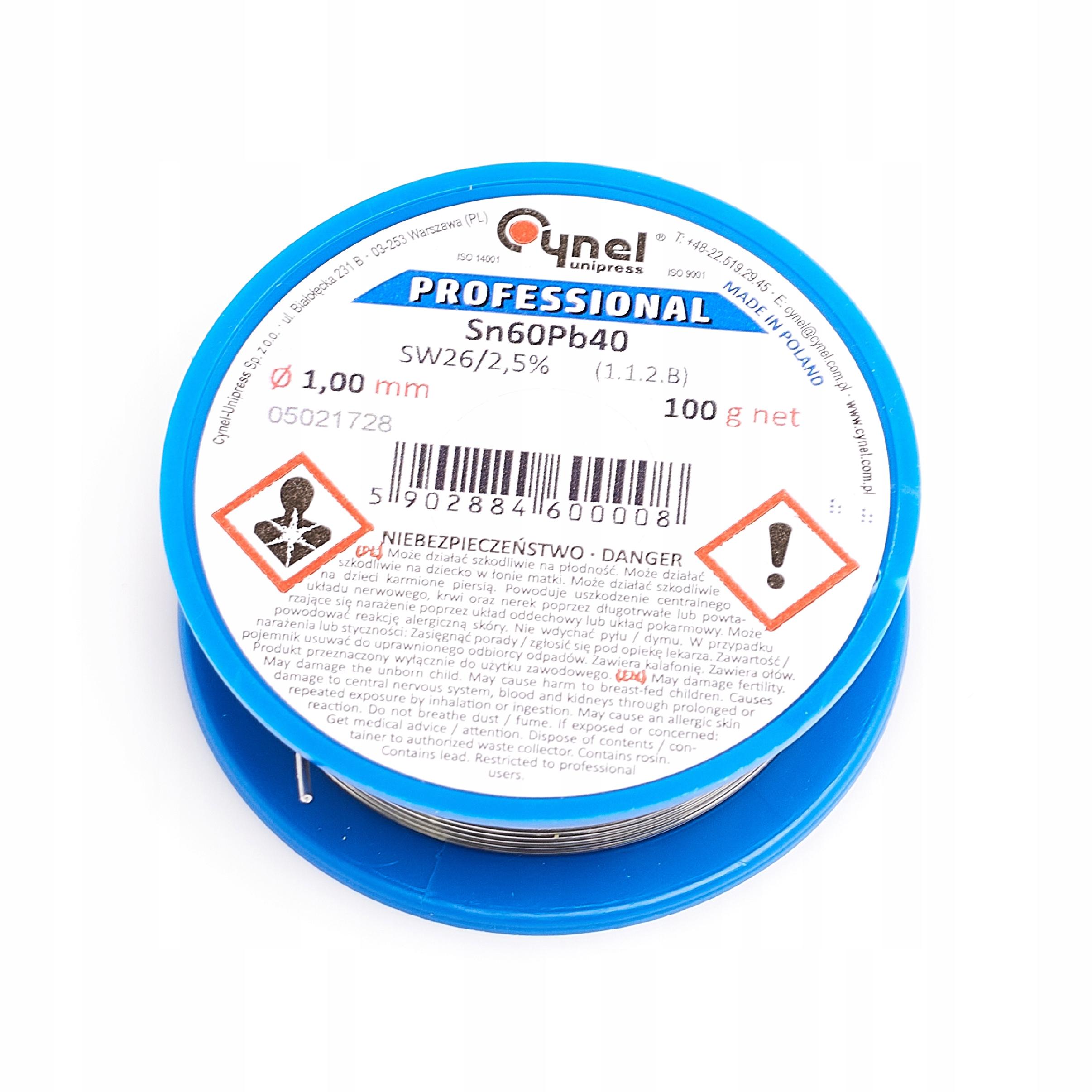 Cyna lutownicza z topnikiem Sn60Pb40 1,00mm 100g Cynel