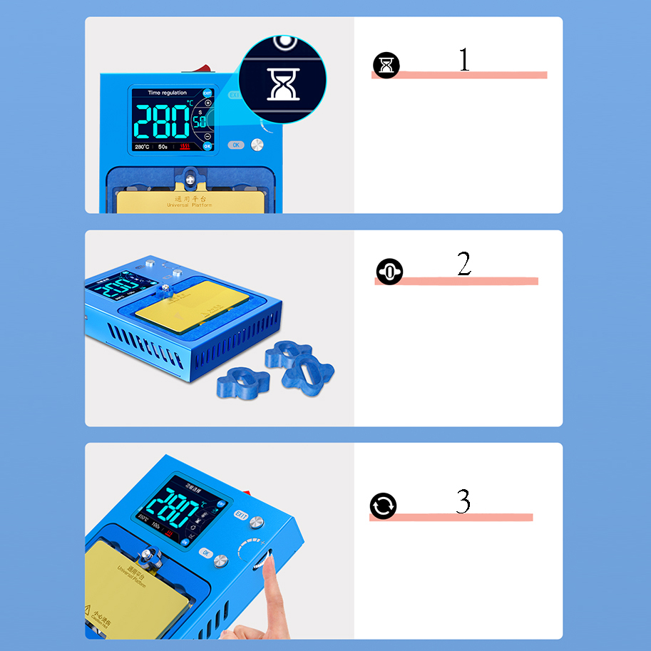 1️⃣ Ustawienie odliczania - czas odliczania można ustawić zgodnie z czasem nagrzewania płyty głównej. Gdy temperatura osiągnie ustawioną temperaturę, odliczanie rozpocznie się automatycznie.