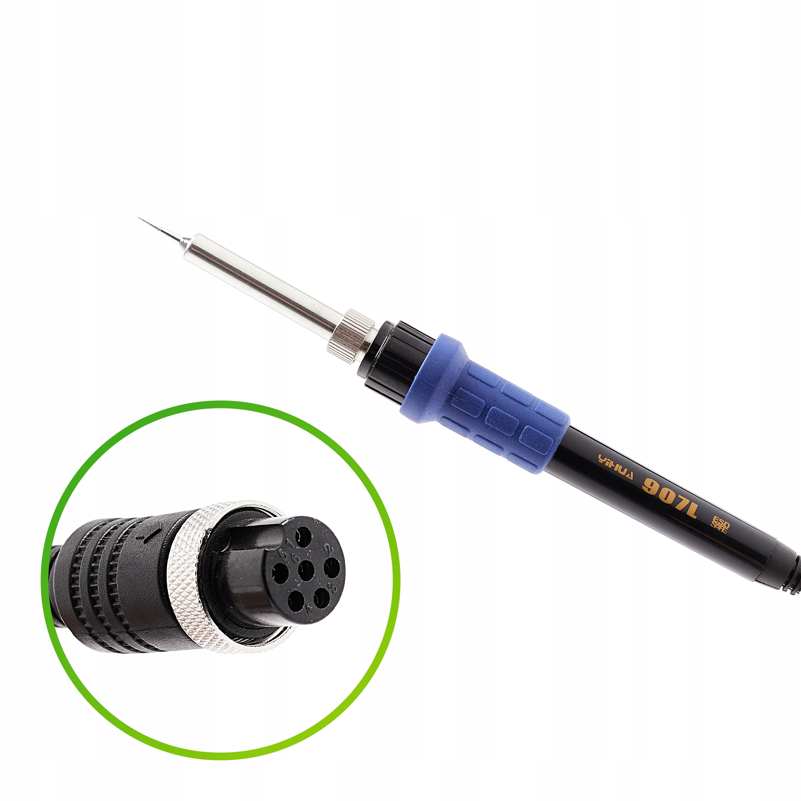 Kompletna kolba lutownicza z ceramicznym elementem grzejnym w metalowej osłonie przeznaczona do stacji lutowniczych marki Yihua, Repro, WEP.
