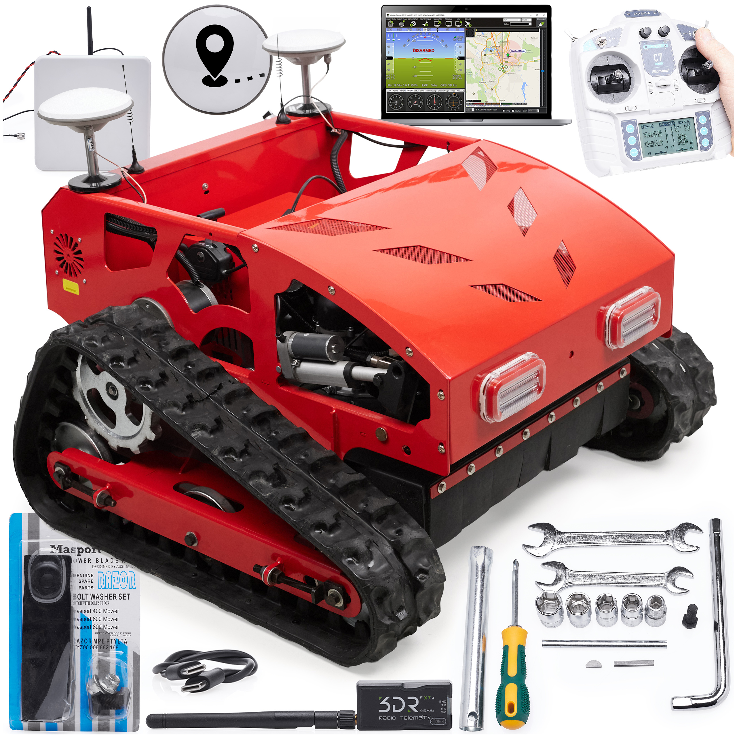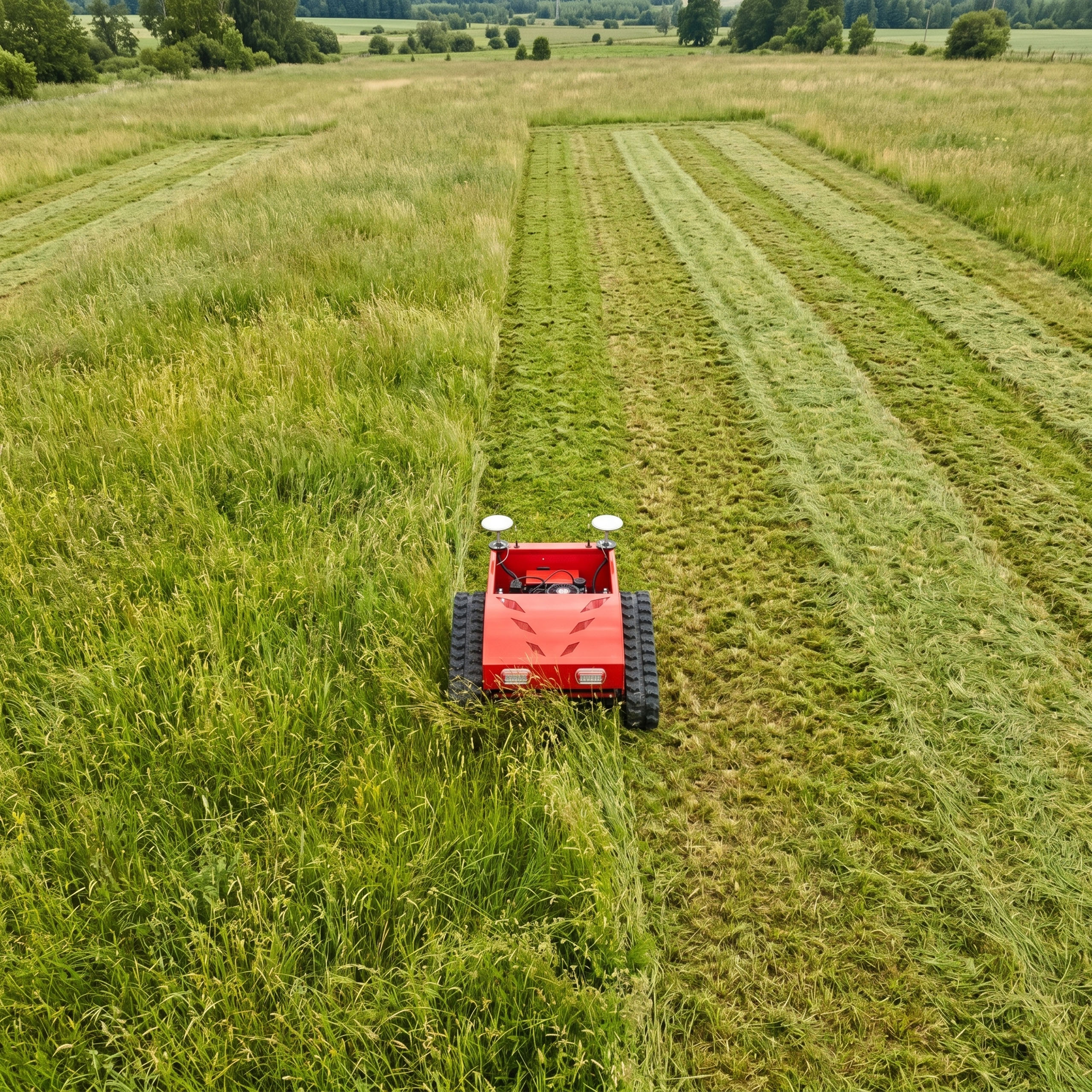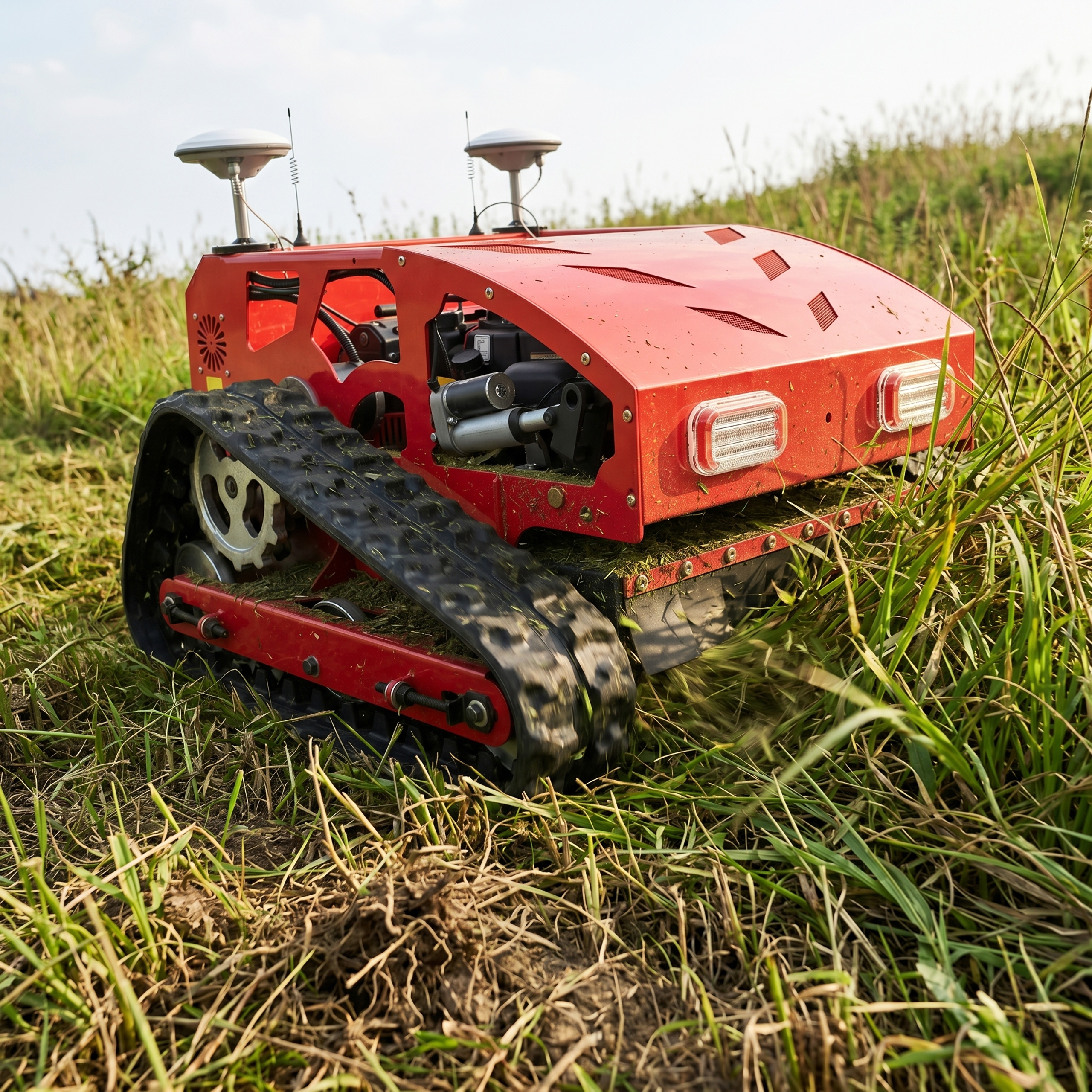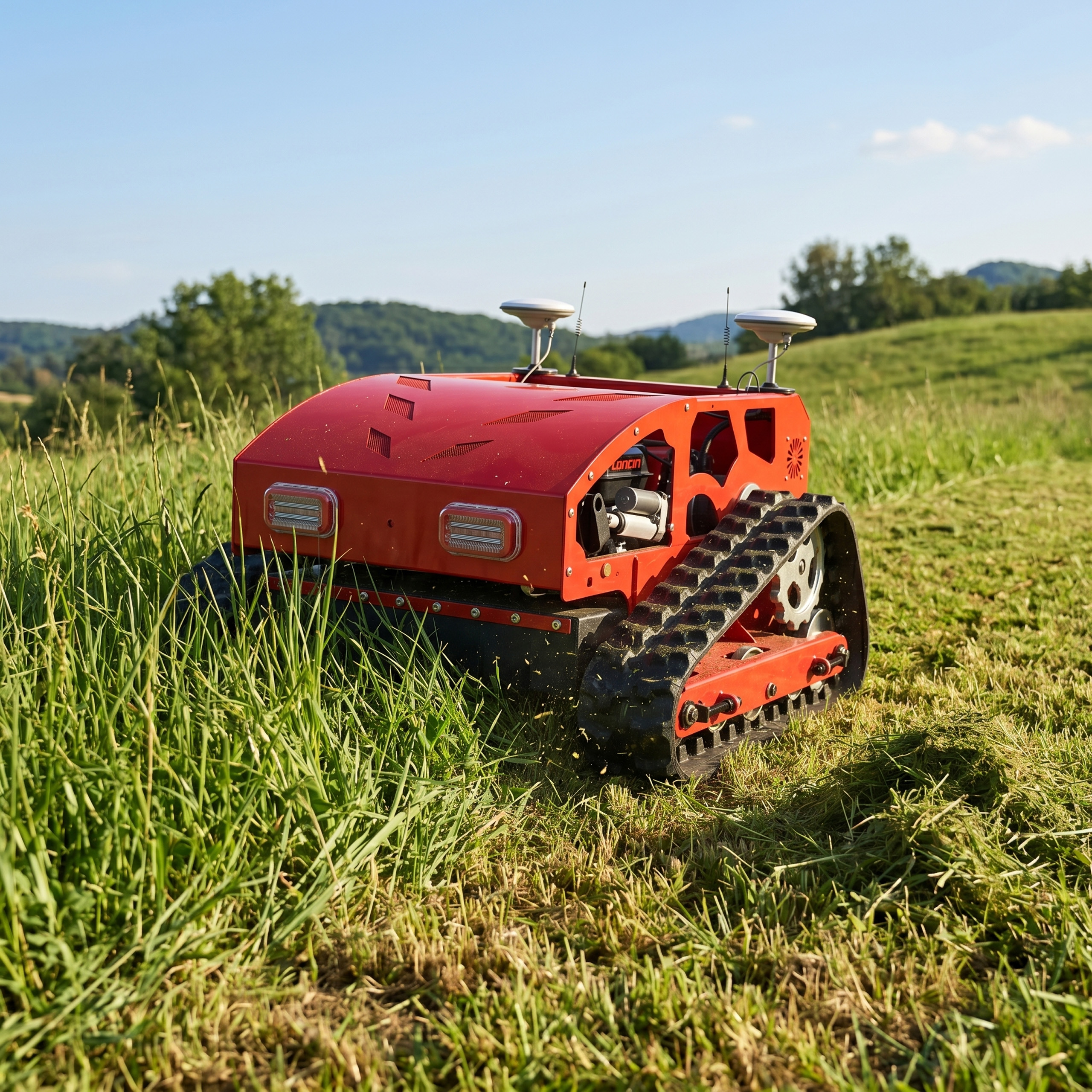 Zaawansowana kosiarka z napędem gąsienicowym to nowoczesne urządzenie do pracy na dużych i wymagających terenach. Łączy moc silnika spalinowego LONCIN 9,5 KM, zdalne sterowanie oraz funkcję automatycznej jazdy GPS, dzięki czemu może pracować zarówno w trybie ręcznym, jak i samodzielnym po wcześniejszym zaplanowaniu trasy.