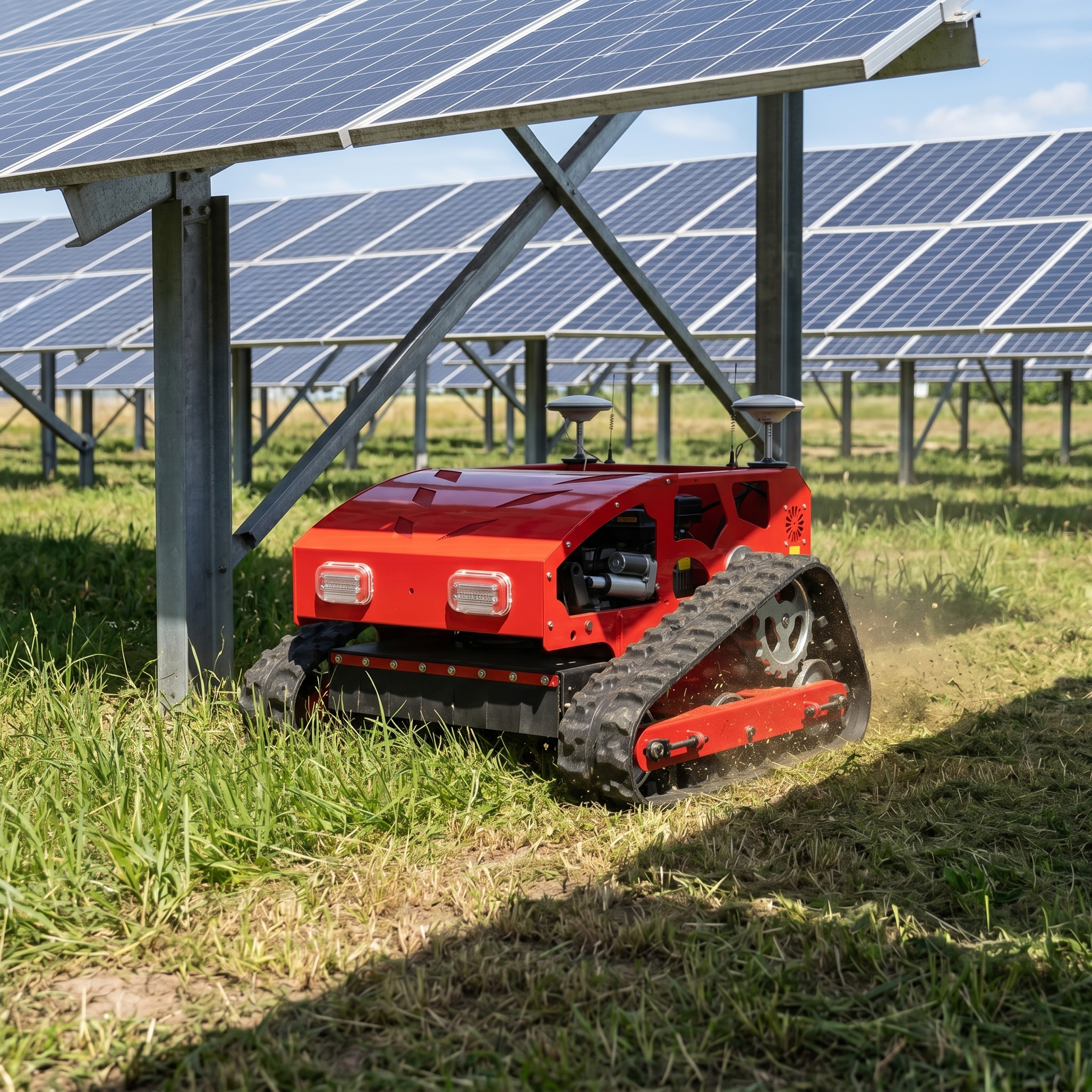 Urządzenie doskonale sprawdzi się na farmach fotowoltaicznych, skarpach, nieużytkach, sadach, dużych posesjach oraz terenach przemysłowych. Szerokość robocza 55 cm, regulacja wysokości koszenia oraz możliwość pracy na nachyleniu do 50 stopni sprawiają, że kosiarka radzi sobie tam, gdzie tradycyjny sprzęt często zawodzi.