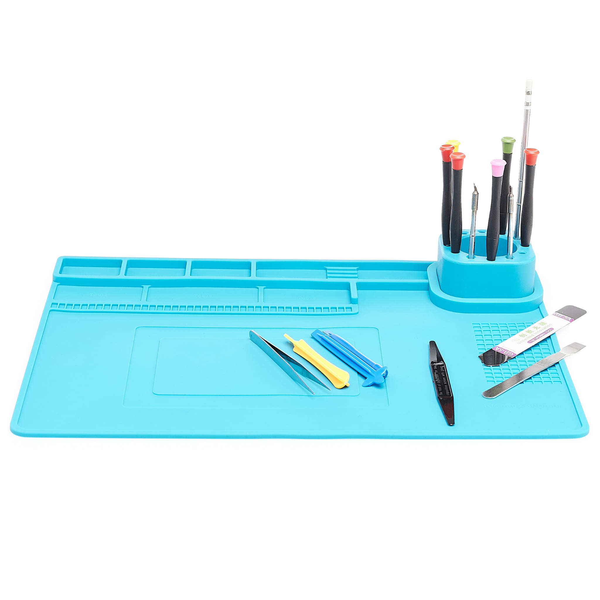 Dobra organizacja stanowiska pracy to klucz do efektywnej i precyzyjnej naprawy. Mata została wyposażona w demontowalny organizer, który pozwala na wygodne przechowywanie śrubek, narzędzi i drobnych elementów, a jego mobilność umożliwia dostosowanie przestrzeni do własnych potrzeb. Dodatkowo, wbudowana strefa magnetyczna zapobiega gubieniu metalowych części, utrzymując je zawsze na miejscu. Dzięki temu wszystko, czego potrzebujesz, masz pod ręką, a praca staje się szybsza i bardziej komfortowa.
