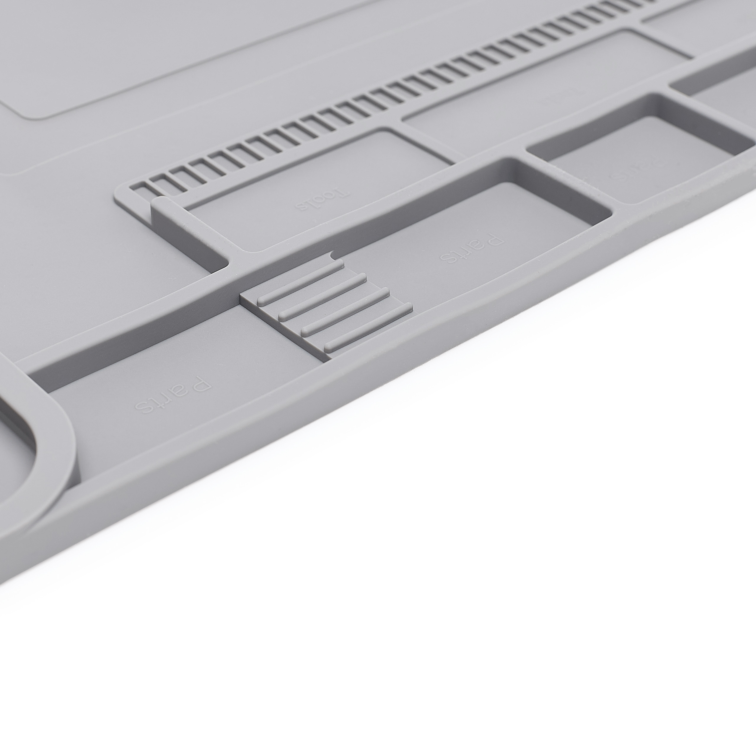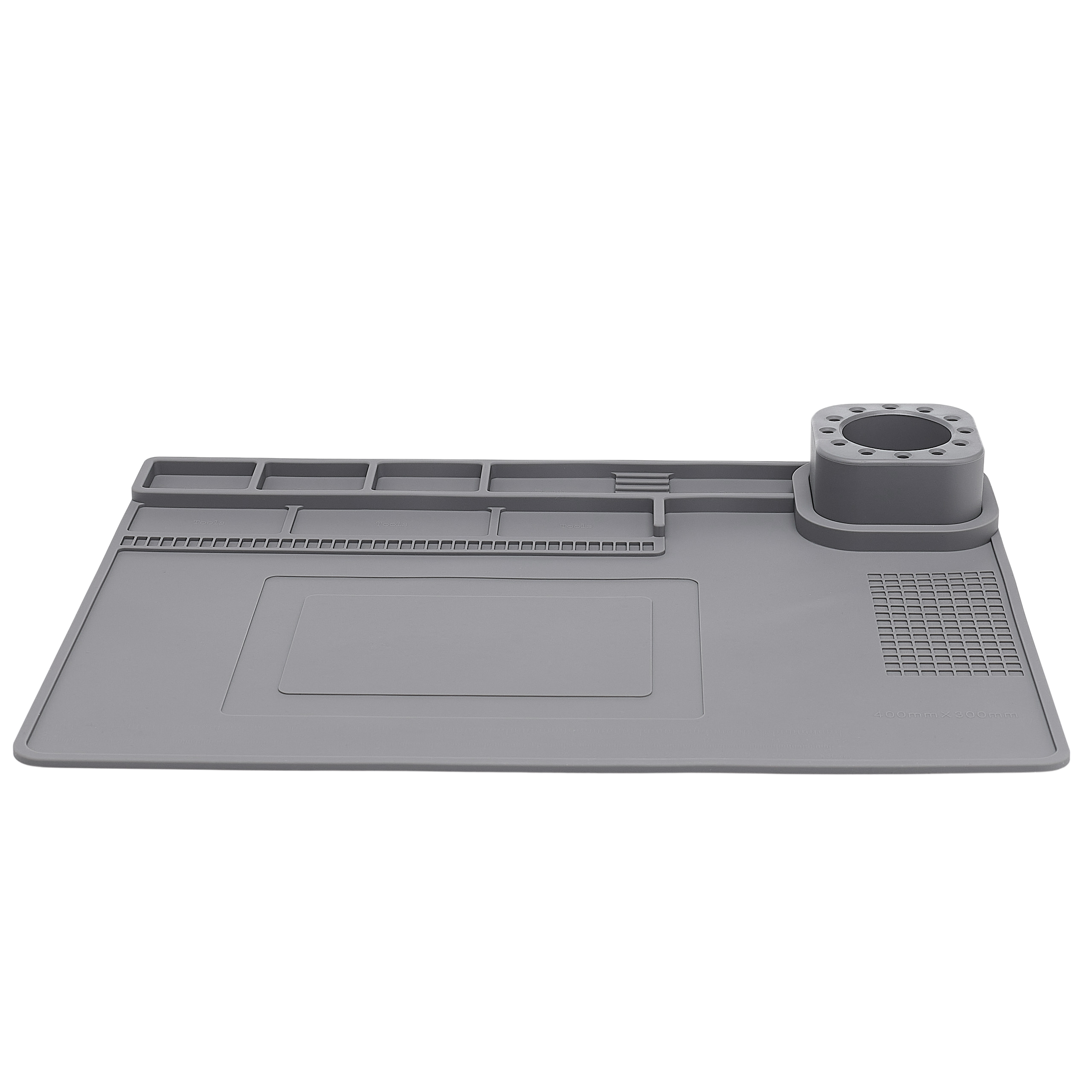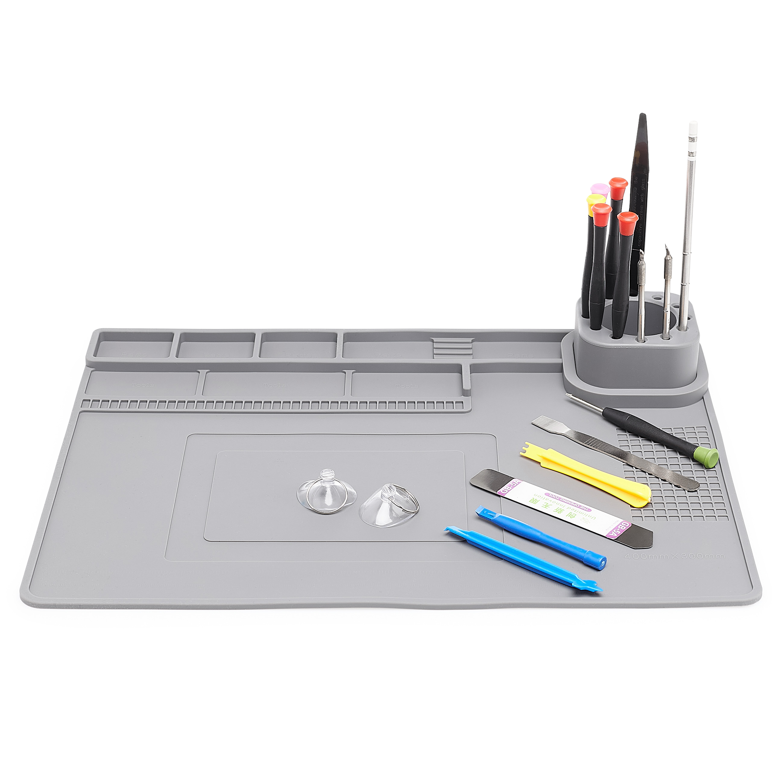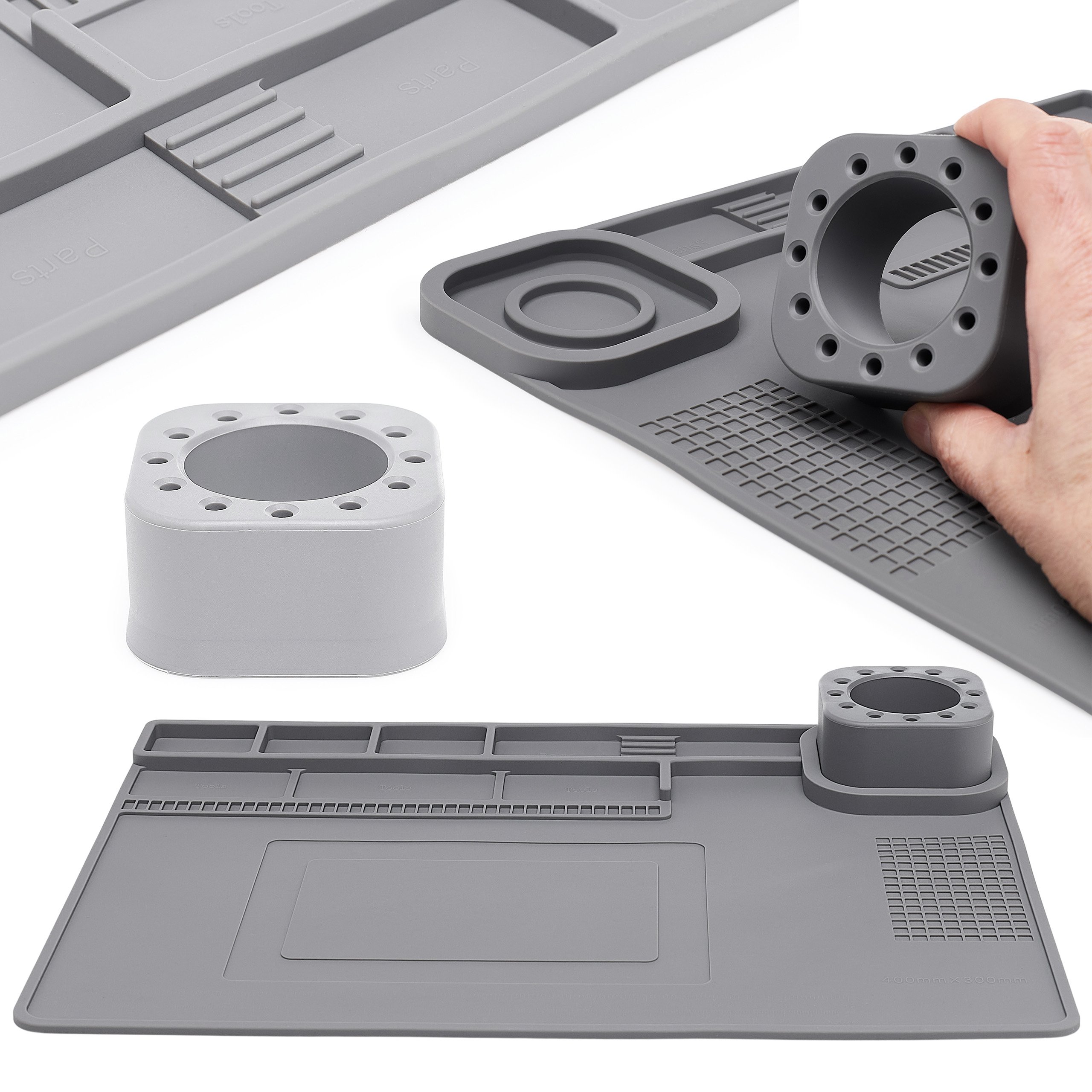 Dobra organizacja stanowiska pracy to klucz do efektywnej i precyzyjnej naprawy. Mata została wyposażona w demontowalny organizer, który pozwala na wygodne przechowywanie śrubek, narzędzi i drobnych elementów, a jego mobilność umożliwia dostosowanie przestrzeni do własnych potrzeb. Dodatkowo, wbudowana strefa magnetyczna zapobiega gubieniu metalowych części, utrzymując je zawsze na miejscu. Dzięki temu wszystko, czego potrzebujesz, masz pod ręką, a praca staje się szybsza i bardziej komfortowa.
