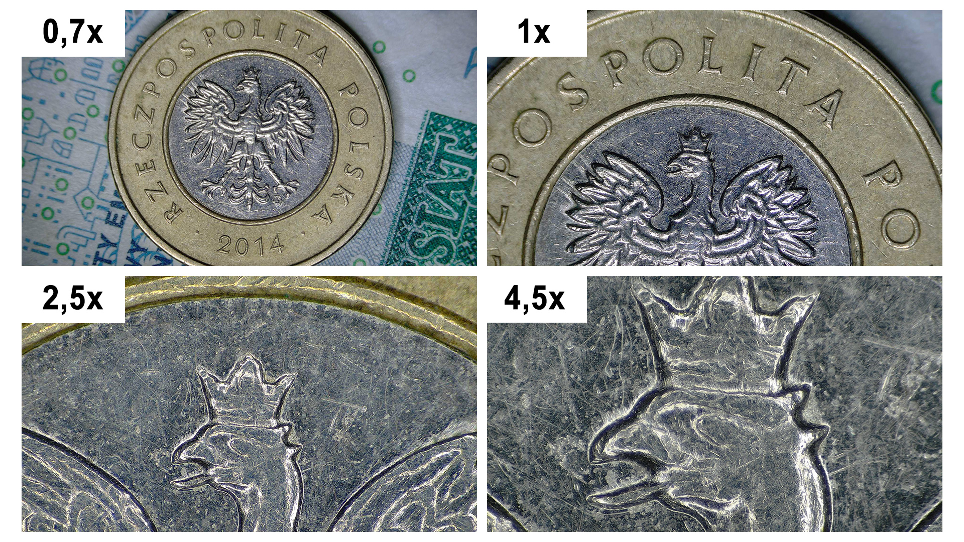 Poniżej zdjęcia wykonane za pomocą mikroskopu na komputerze, przypisano przestrzeń roboczą jaką dysponujemy przy każdym powiększeniu. Dokupując odpowiednią kamerę mikroskop ma możliwość zapisu zdjęć i filmów w 4K. Szczególnie polecamy Państwu ten model kamerki Techerbal Orange Pro 4K użytej do zrobienia poniższych zdjęć.