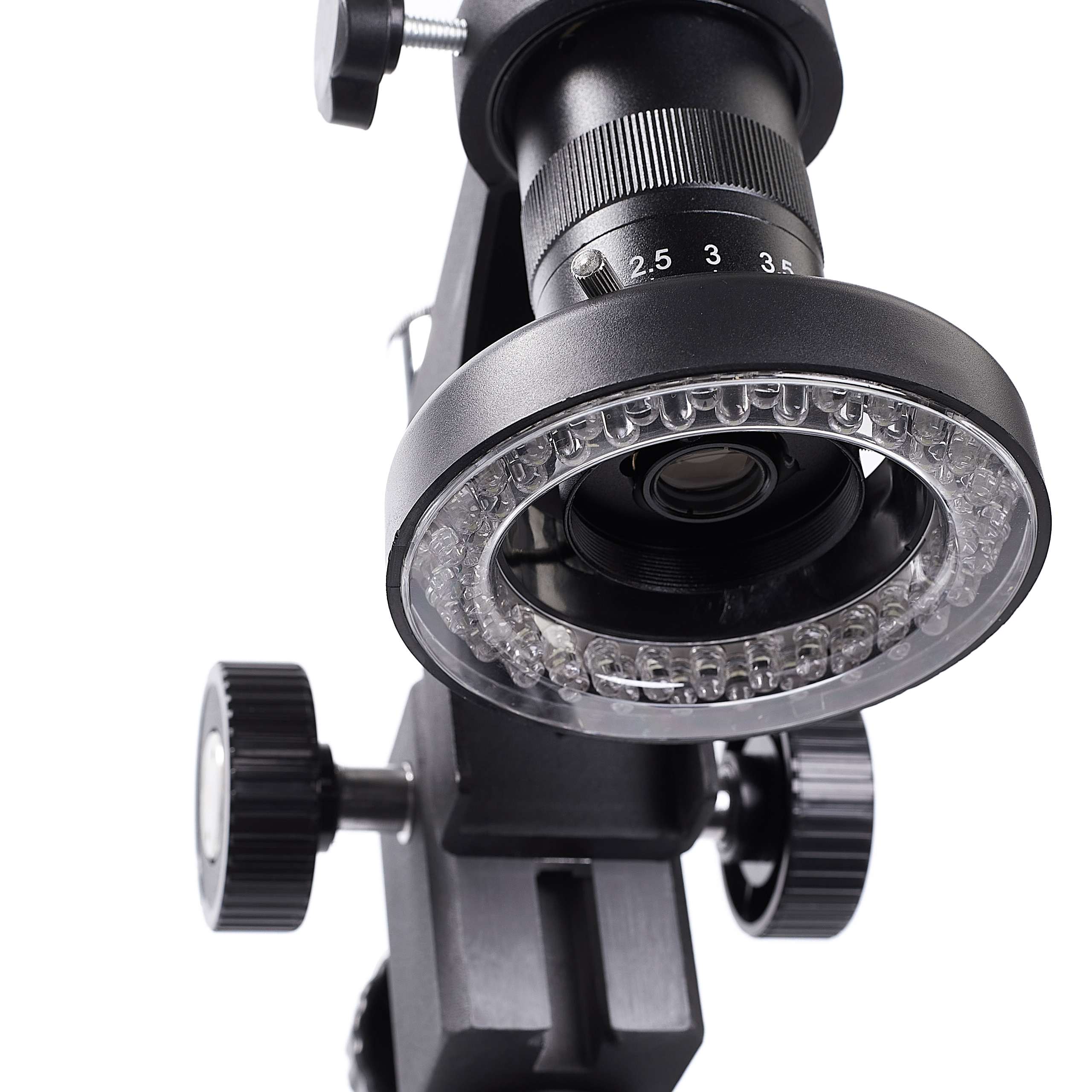 Do używania tego mikroskopu niezbędna jest kamera oraz wyświetlacz.