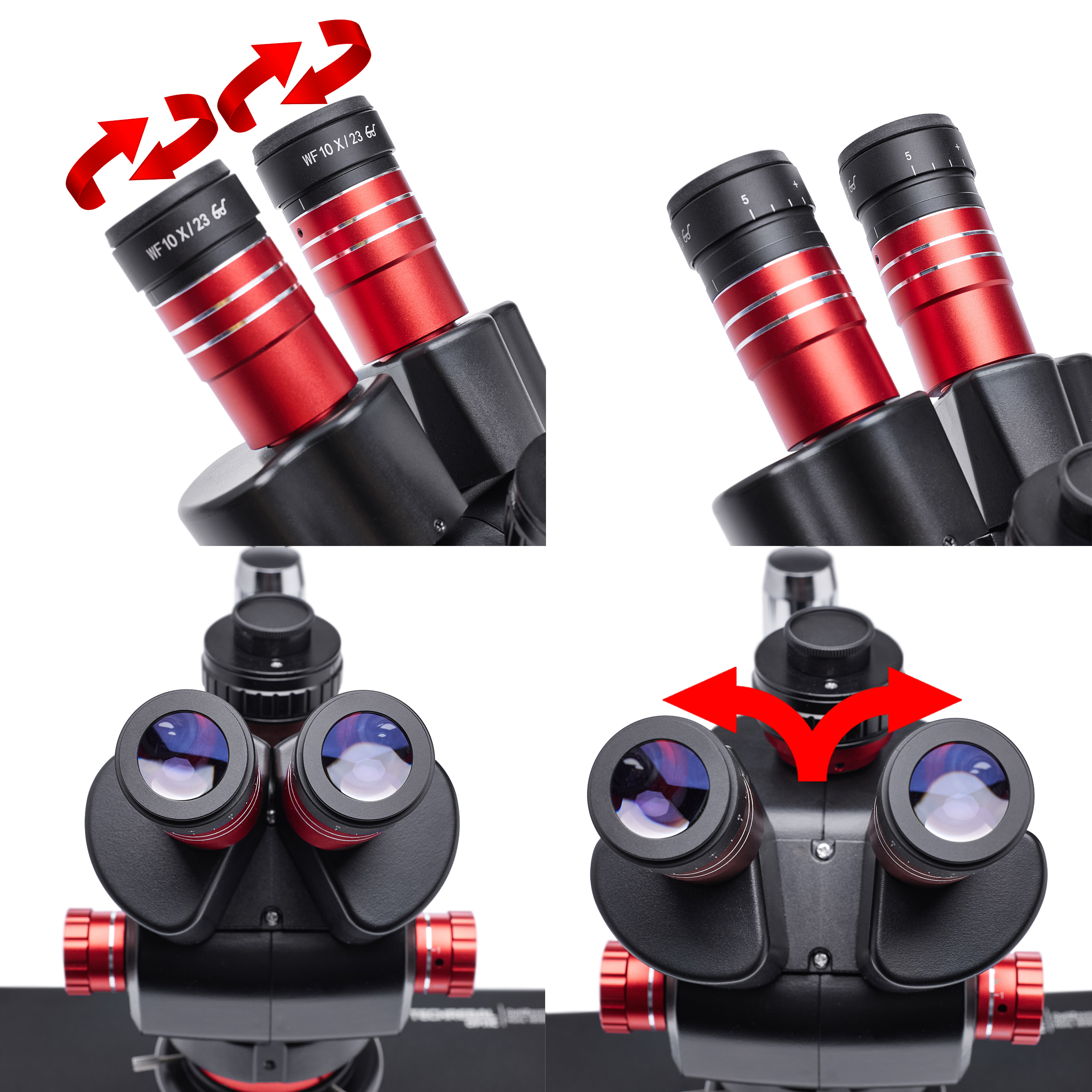 - Okulary WF 10x/23: Dwa szerokopolowe okulary dla wyraźnego widzenia.