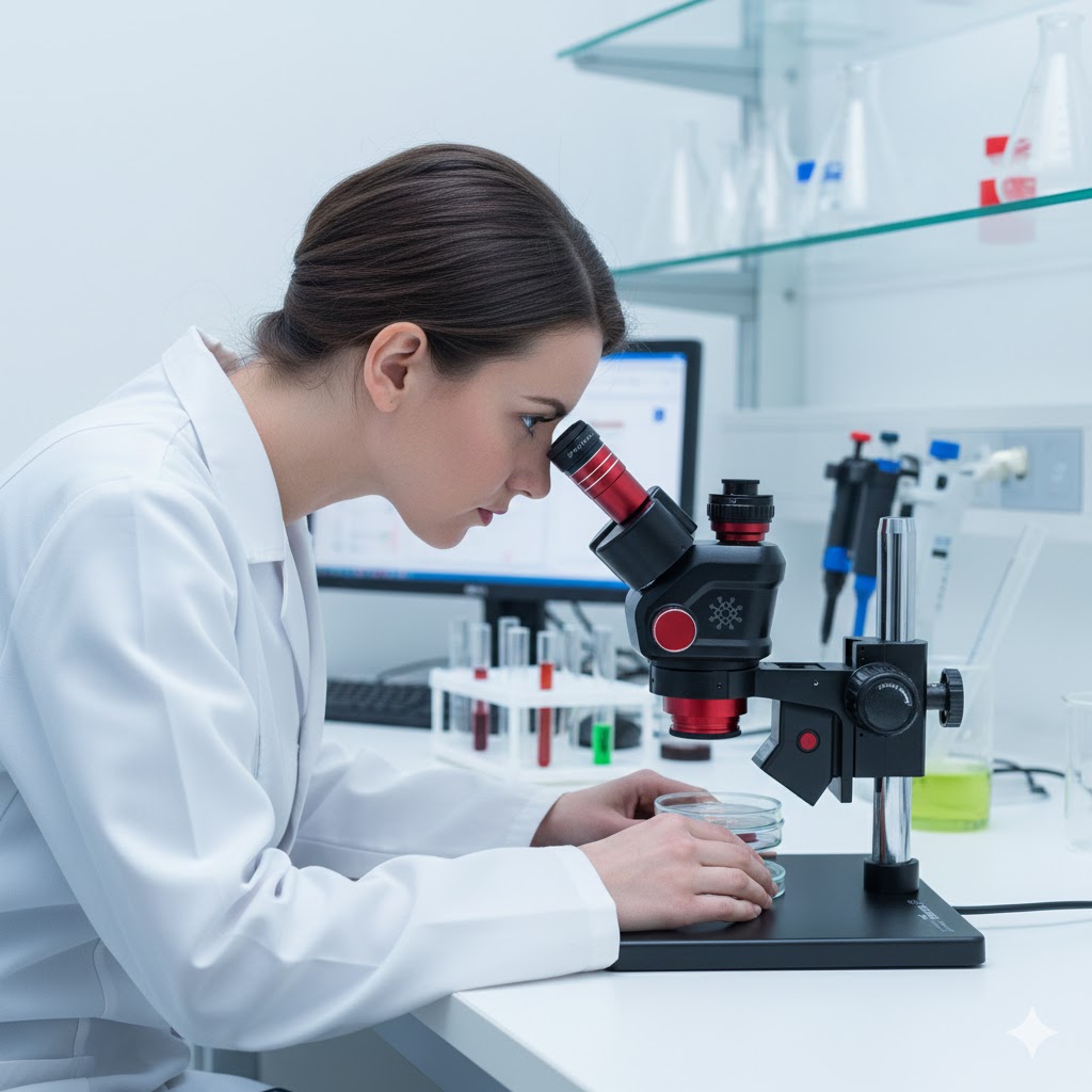 Model ten łączy w sobie zaawansowaną optykę szklaną z solidną, metalową konstrukcją. Jak widać na zdjęciu obok, mikroskop zapewnia wygodną, pochyloną pozycję pracy, co jest kluczowe dla zdrowia kręgosłupa podczas wielogodzinnych sesji w laboratorium.