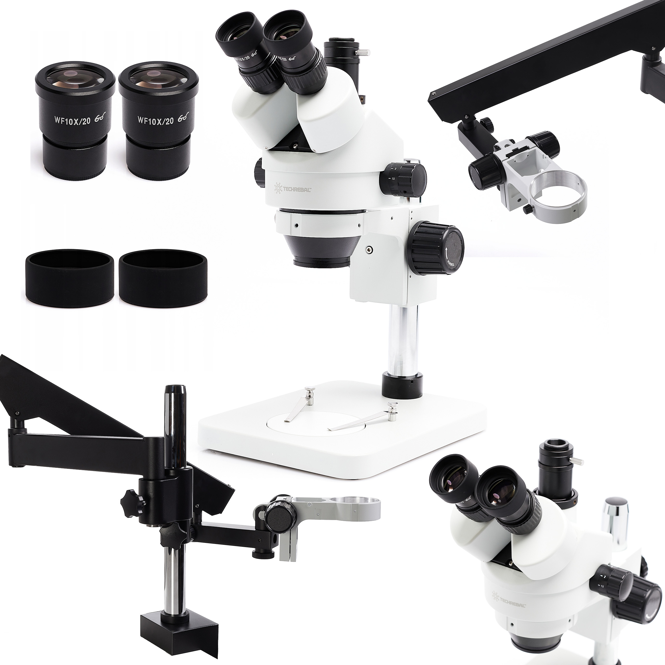 Zestaw Mikroskop trinokularowy Techrebal 10HT 7-45X + Ruchome ramię na głowicę mikroskopu Techrebal 10HT