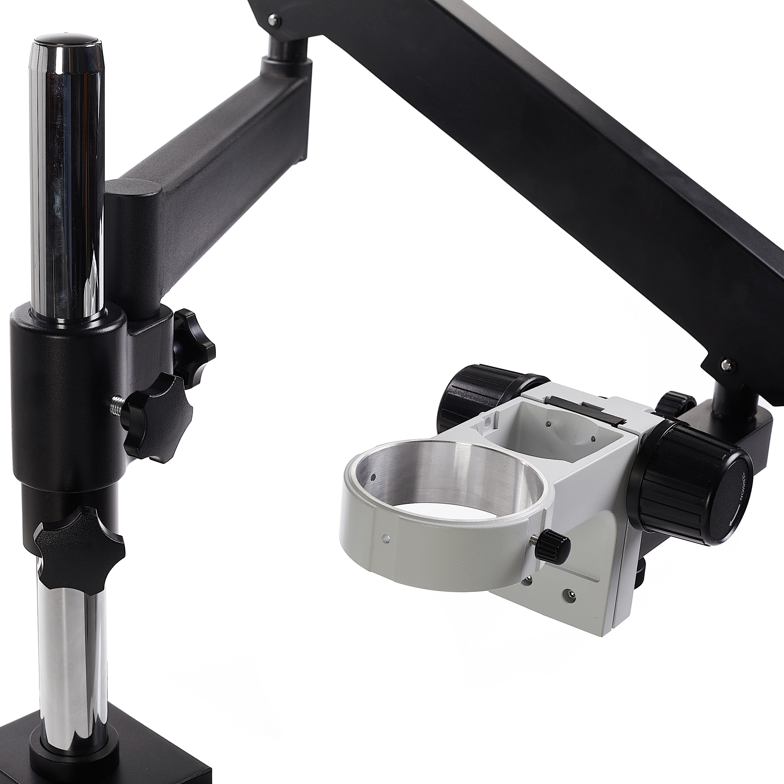Wysokiej jakości ruchome ramie do mikroskopu trinokularowego 10HT i podobnych z tej serii. Ramie jest bardzo stabilne i znacząco ułatwia manewrowanie głowicą nad obiektem, przy którym aktualnie pracujemy, dodatkowo pozwala odsunięcie mikroskopu, gdy ten jest nieużywany.