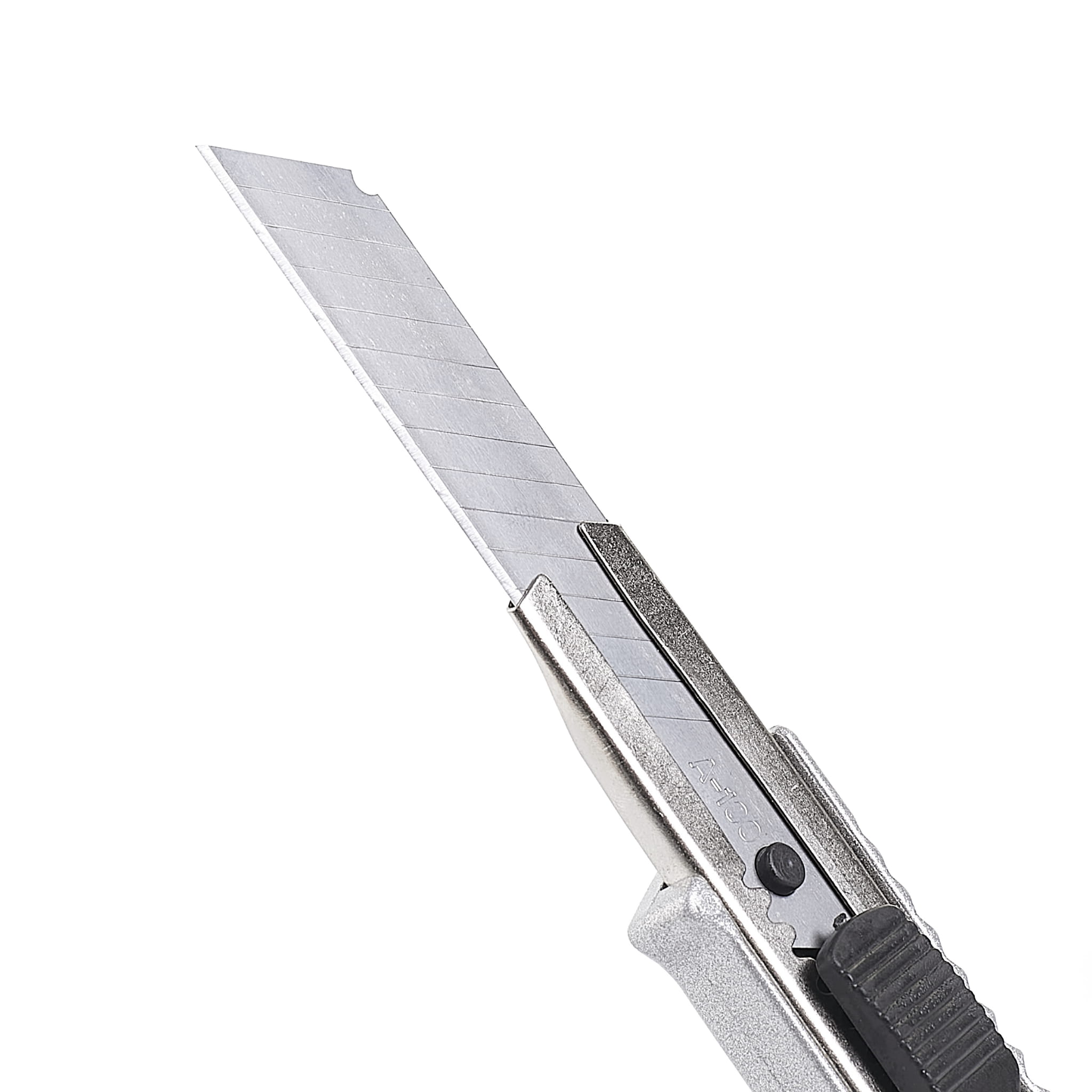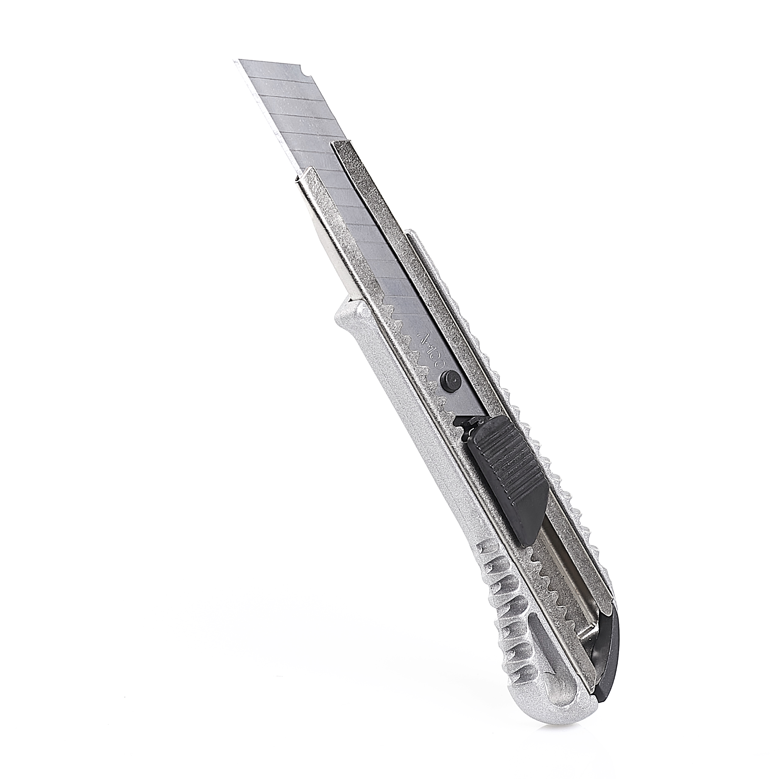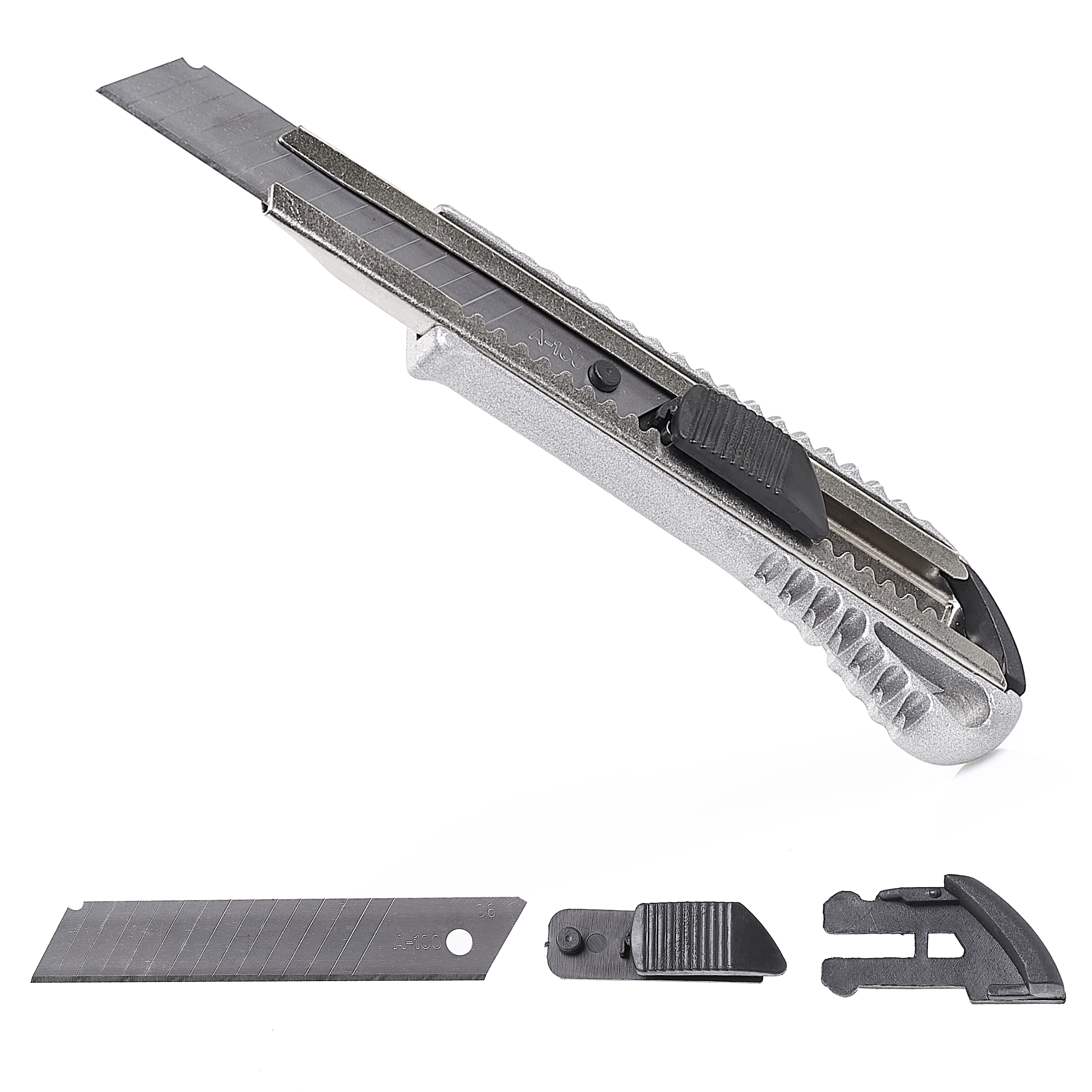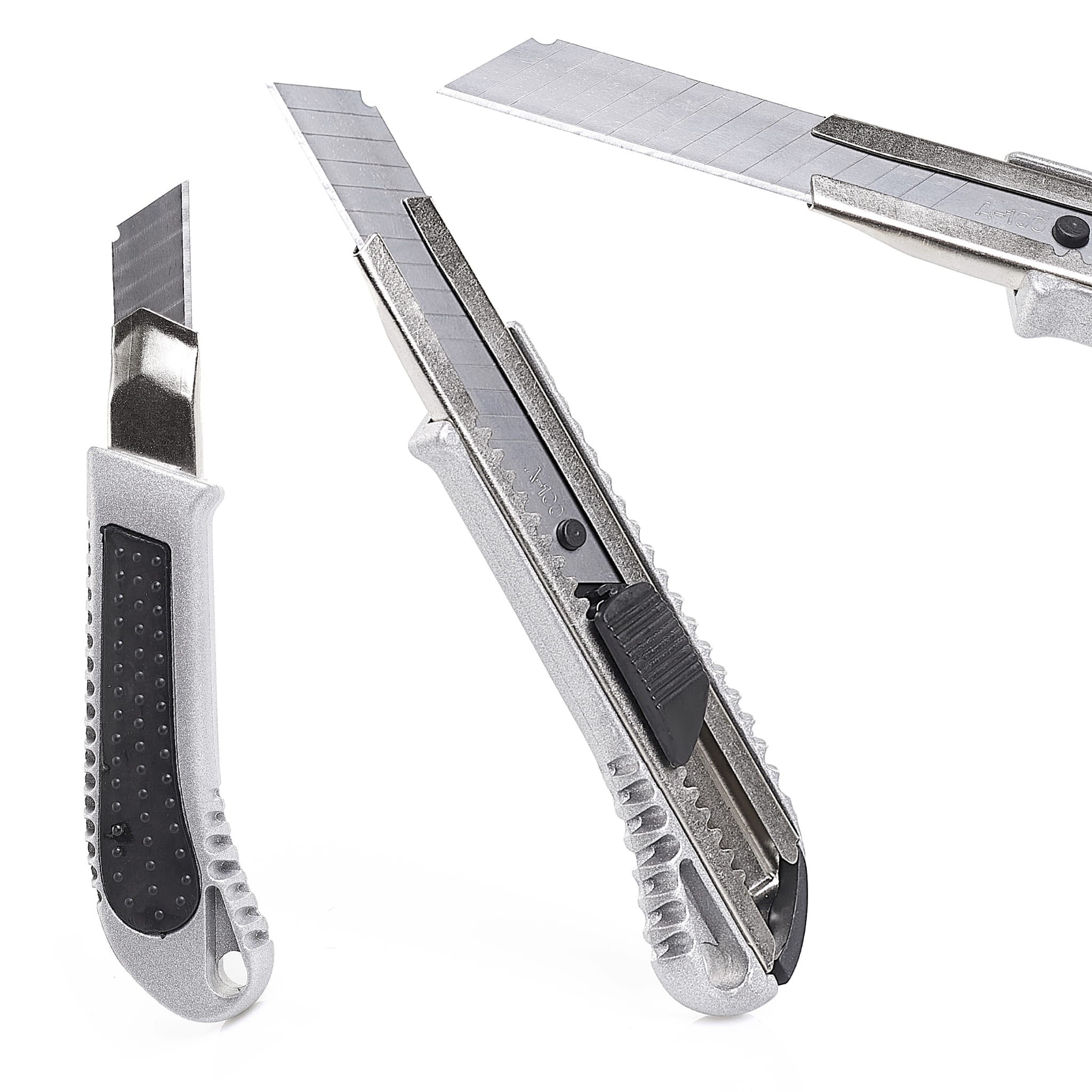Metalowy nóż do tapet to narzędzie przeznaczone do precyzyjnego cięcia tapet podczas prac remontowych i dekoracyjnych. Charakteryzuje się ostrym, wymiennym ostrzem, które umożliwia dokładne przycinanie tapet do wymaganych wymiarów. Konstrukcja noża jest zwykle wykonana z wysokiej jakości stali nierdzewnej, co zapewnia trwałość i odporność na korozję. Ergonomiczny uchwyt z metalu lub wytrzymałego tworzywa sztucznego zapewnia komfort i bezpieczeństwo użytkowania, minimalizując ryzyko poślizgnięcia się ręki. Nóż do tapet często wyposażony jest w mechanizm umożliwiający łatwą wymianę ostrzy, co jest kluczowe dla utrzymania optymalnej ostrości narzędzia