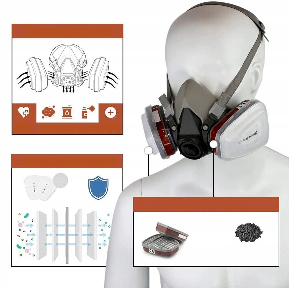 ✅ Wymienny filtr węglowy - Wbudowany filtr z aktywnym węglem zapewnia skuteczną ochronę przed pyłami, oparami farb oraz szkodliwymi związkami chemicznymi, co znacząco zwiększa bezpieczeństwo i komfort pracy w wymagającym środowisku.