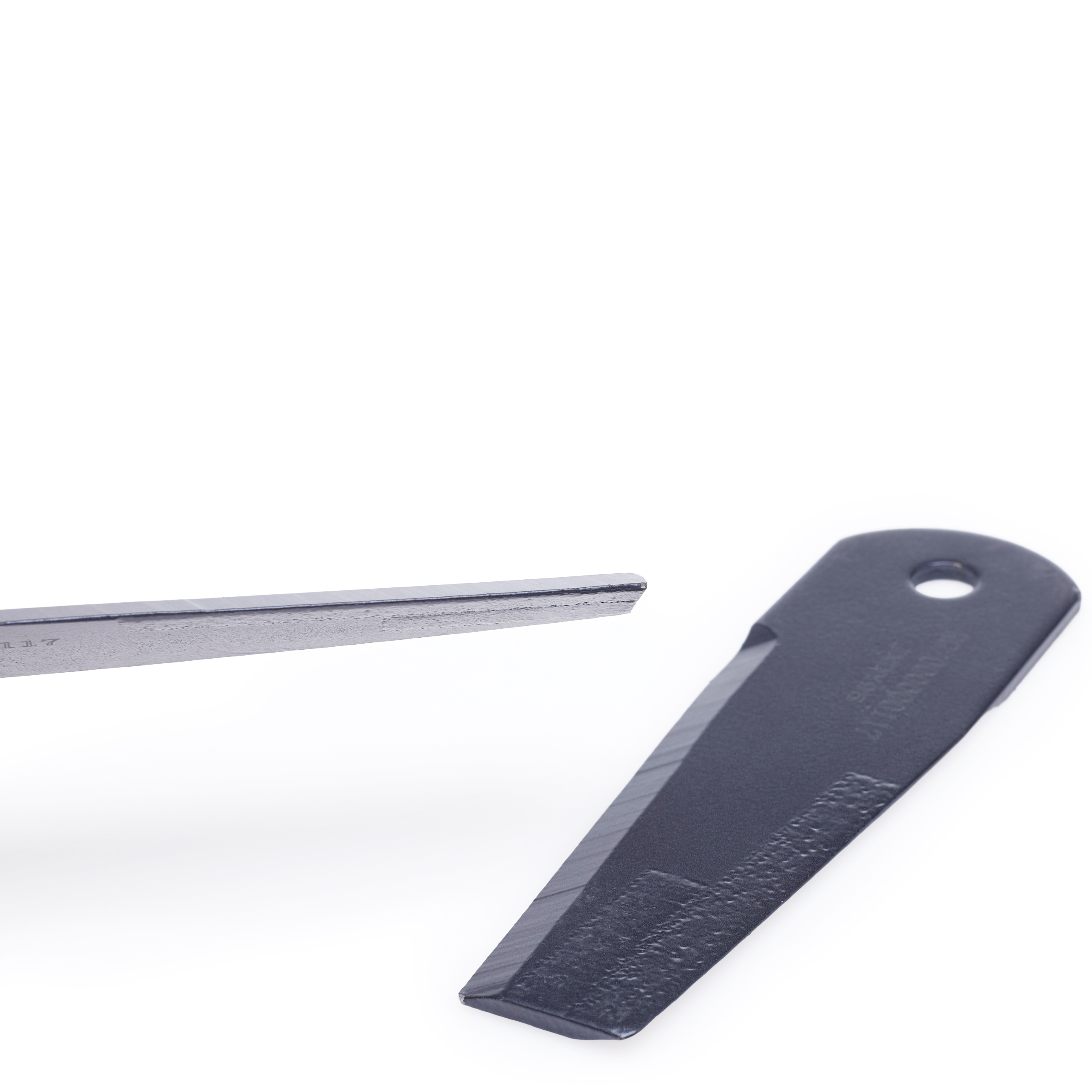 Jednostronnie stożkowy profil o szerokości zmiennej między 50 mm a 31 mm ułatwia Tobie efektywne mulczowanie poprzez lepsze zbieranie skoszonej trawy i jej równomierne rozdrabnianie. Taka konstrukcja sprawia, że ostrze skuteczniej podnosi cieńsze fragmenty roślinności bez zbędnego zapychania się, co podnosi efektywność koszenia.