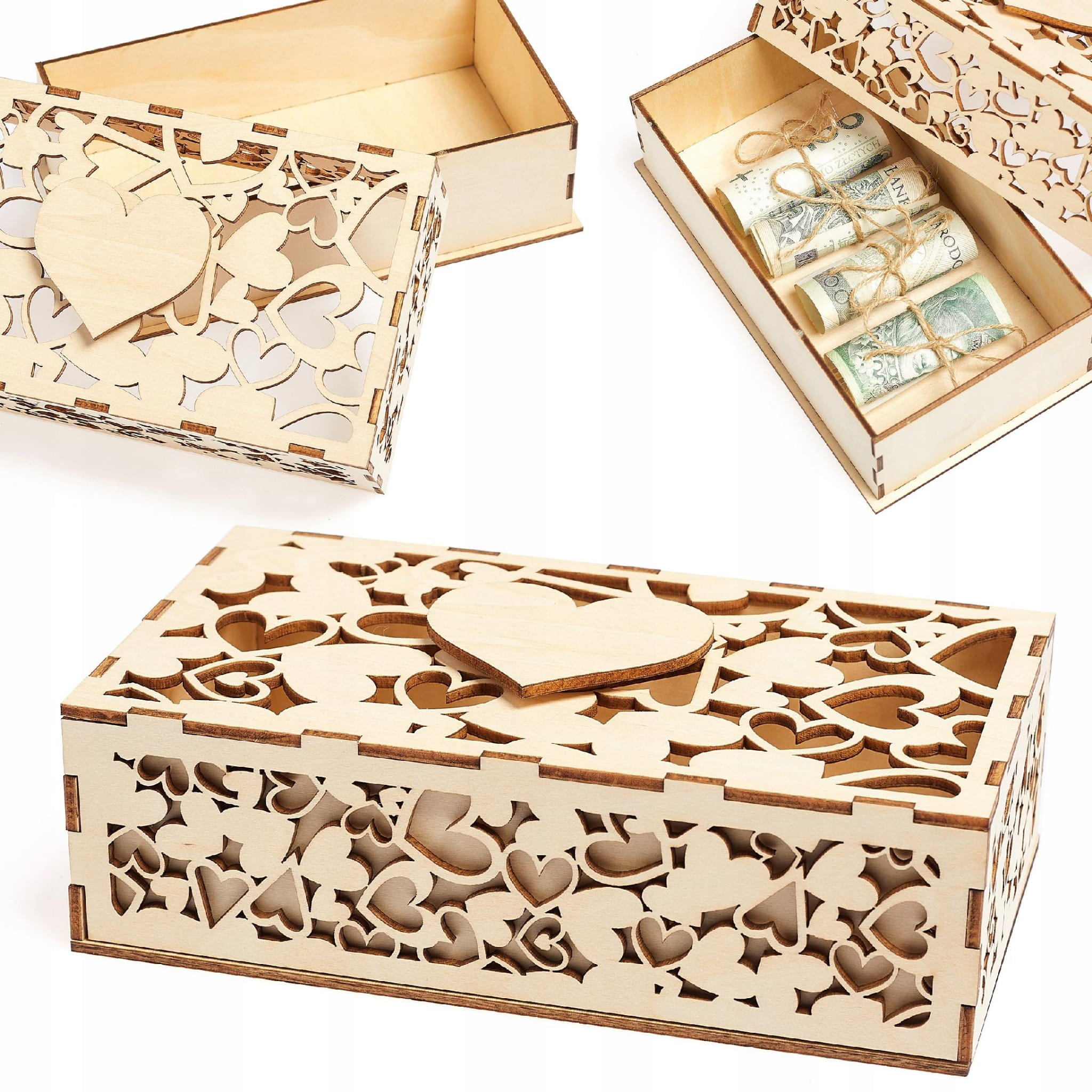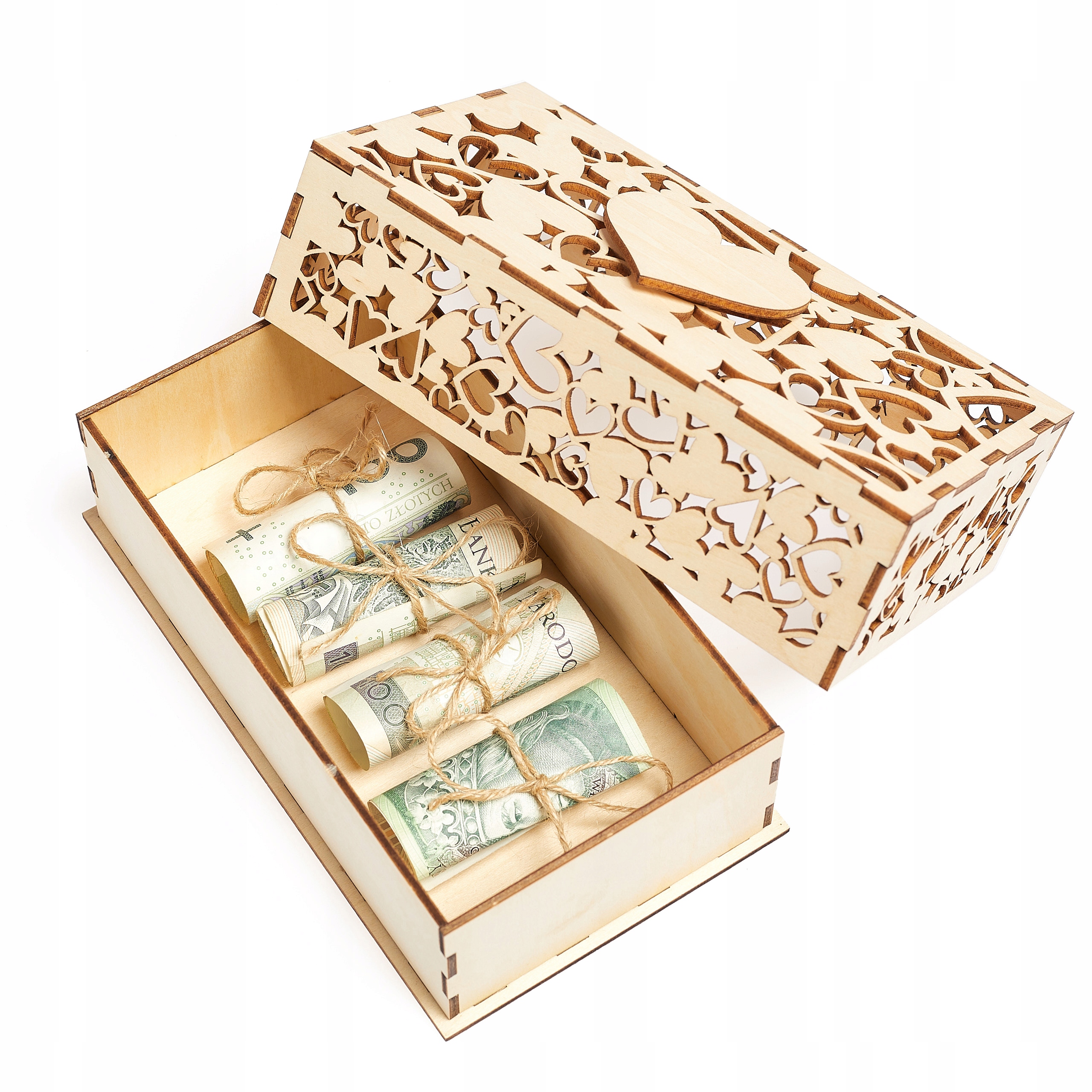 PUDEŁKO PREZENT NA PIENIĄDZE AŻUROWE DREWNIANE