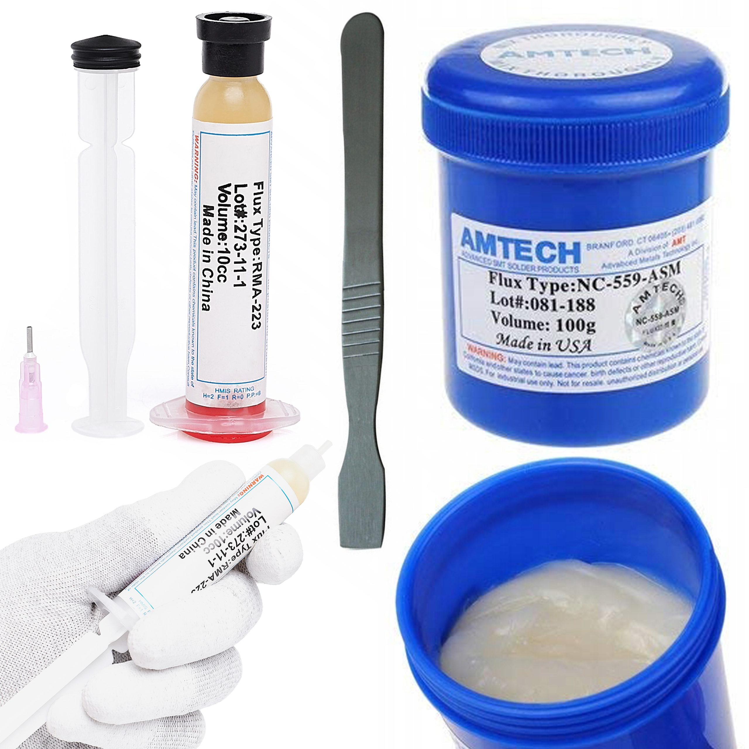 Zestaw Topnik lutowniczy Amtech NC-559-ASM 100g + Topnik RMA-223 10cc + Tłoczek + Igła dozownicza + Packa do rozprowadzania fluxu