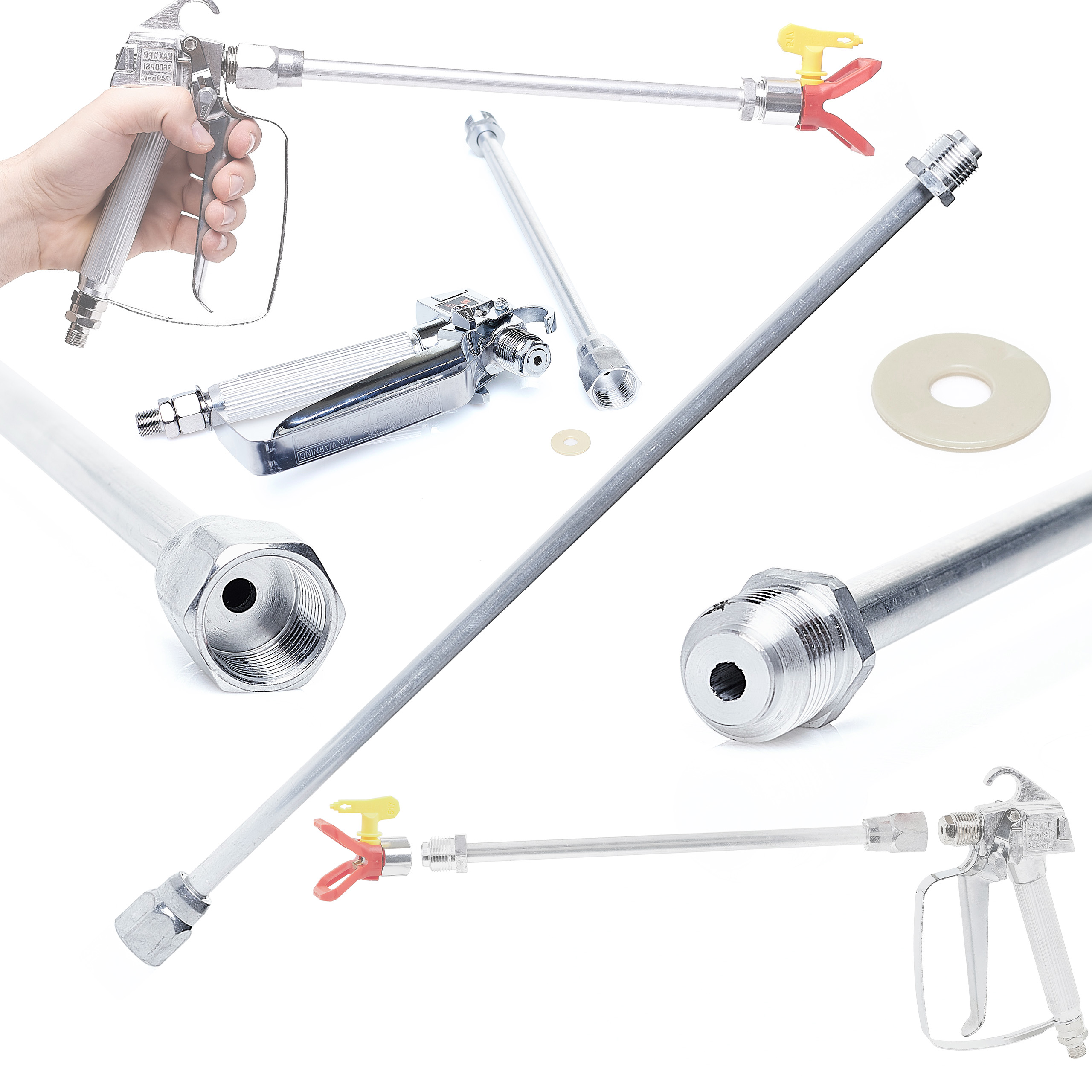 Lanca do pistoletu malarskiego o długości 50 cm to praktyczne narzędzie, które umożliwia wygodne malowanie trudno dostępnych miejsc i wysokich powierzchni bez konieczności użycia drabiny.