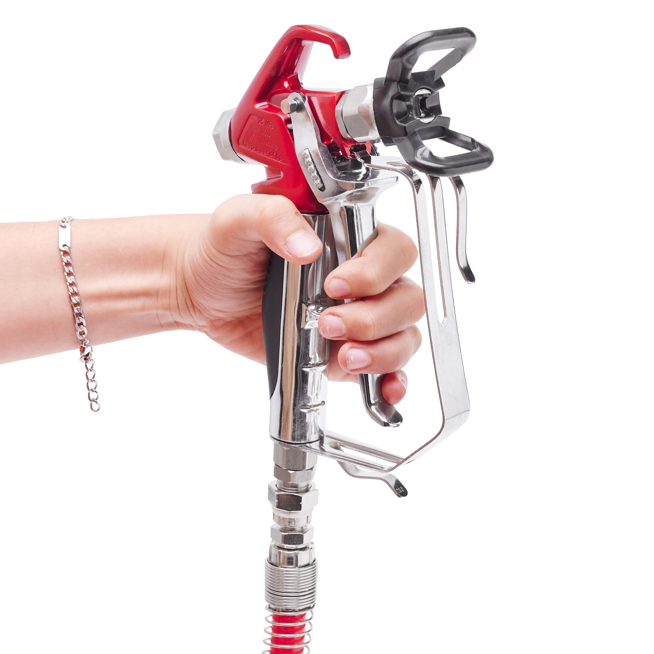 ✅ Kompatybilność z agregatami Graco i Techrebal - Wysoka uniwersalność pistoletu umożliwia bezproblemowe podłączenie do agregatów szpachlarsko-malarskich Graco oraz Techrebal, co znacząco upraszcza konfigurację sprzętu i eliminuje konieczność stosowania dodatkowych przejściówek.