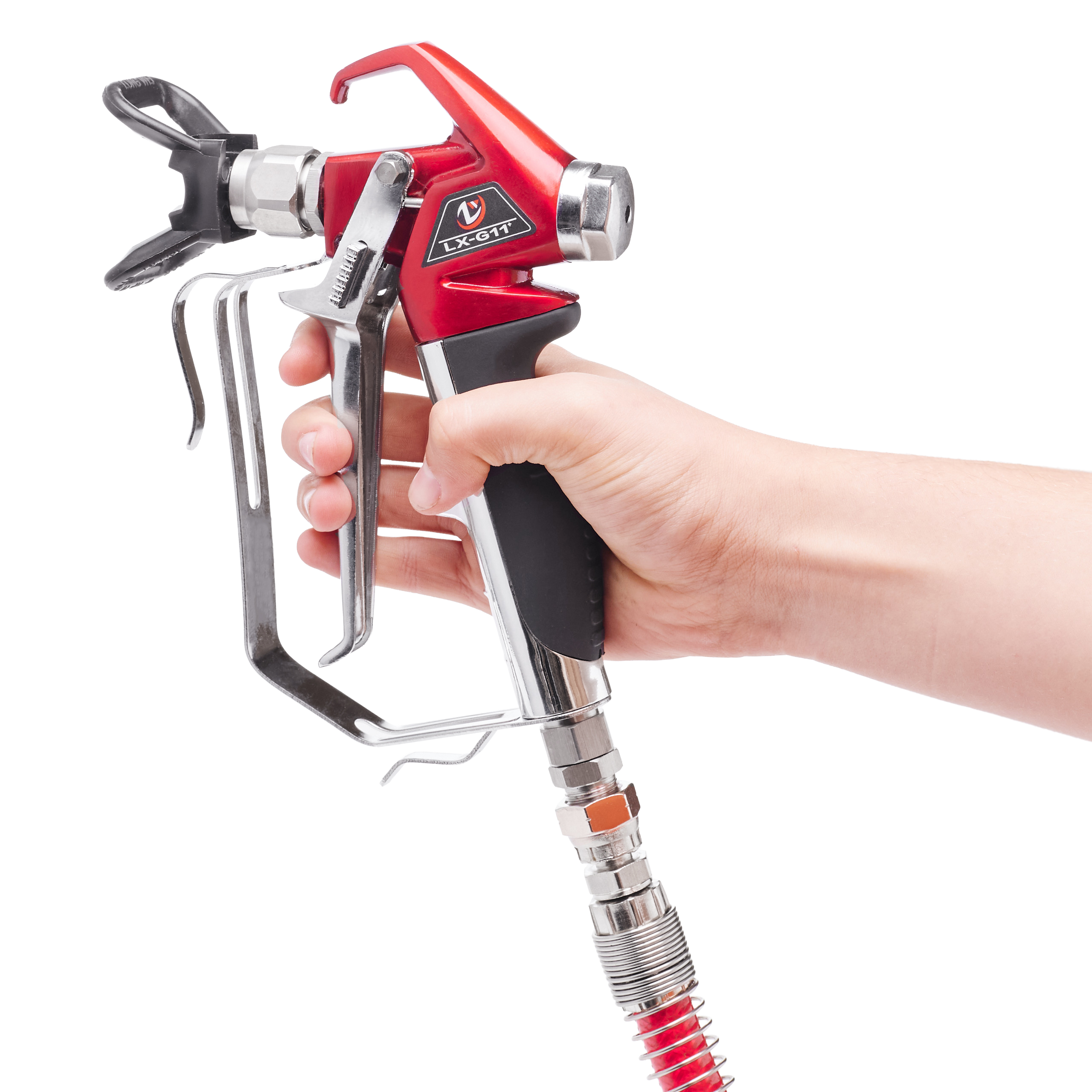 ✅ Ergonomiczny uchwyt z blokadą - Rękojeść zaprojektowana z myślą o komforcie użytkownika wraz z praktyczną blokadą spustu pozwala na wygodną i płynną pracę nawet przez dłuższy czas, co minimalizuje zmęczenie dłoni i zwiększa precyzję nanoszenia materiału.