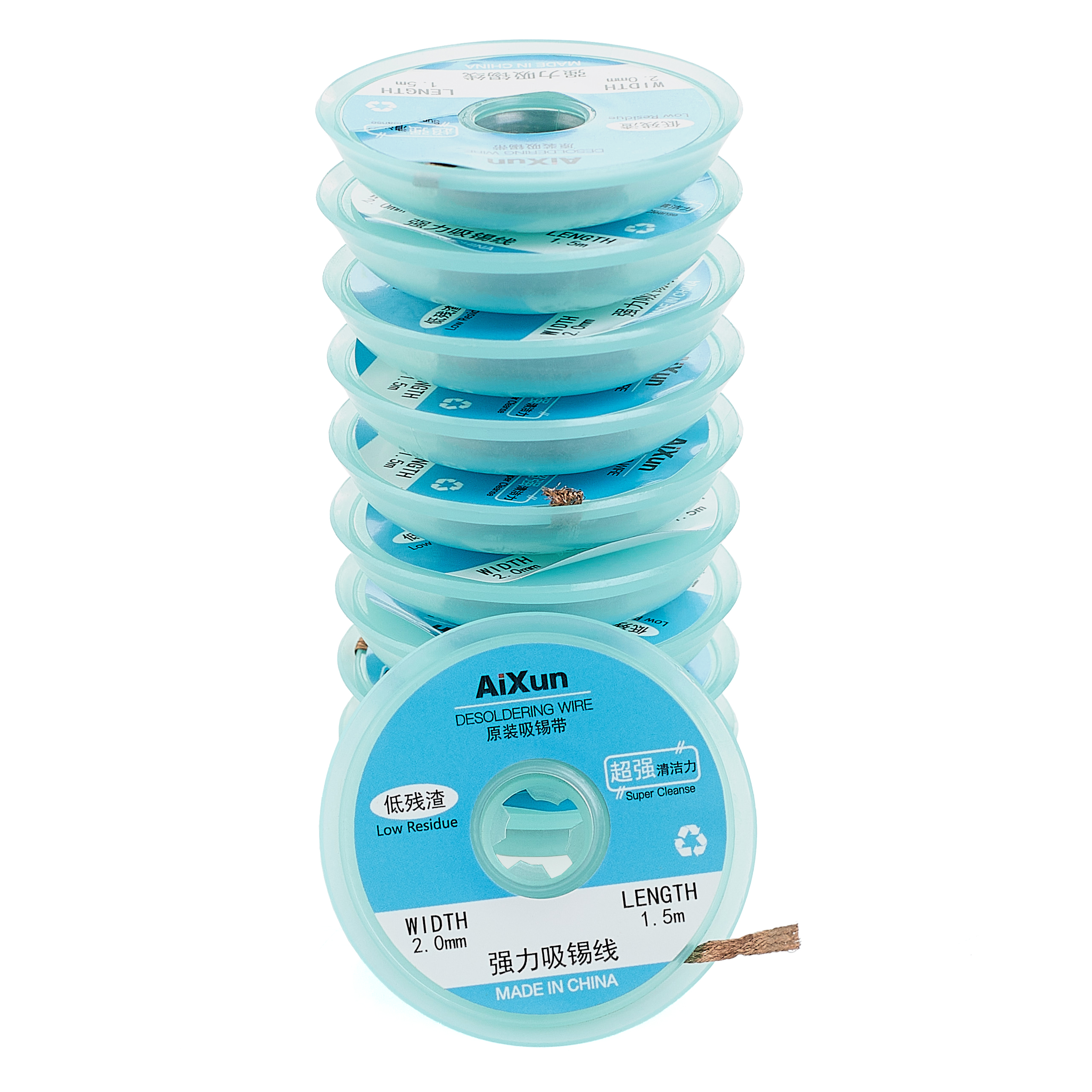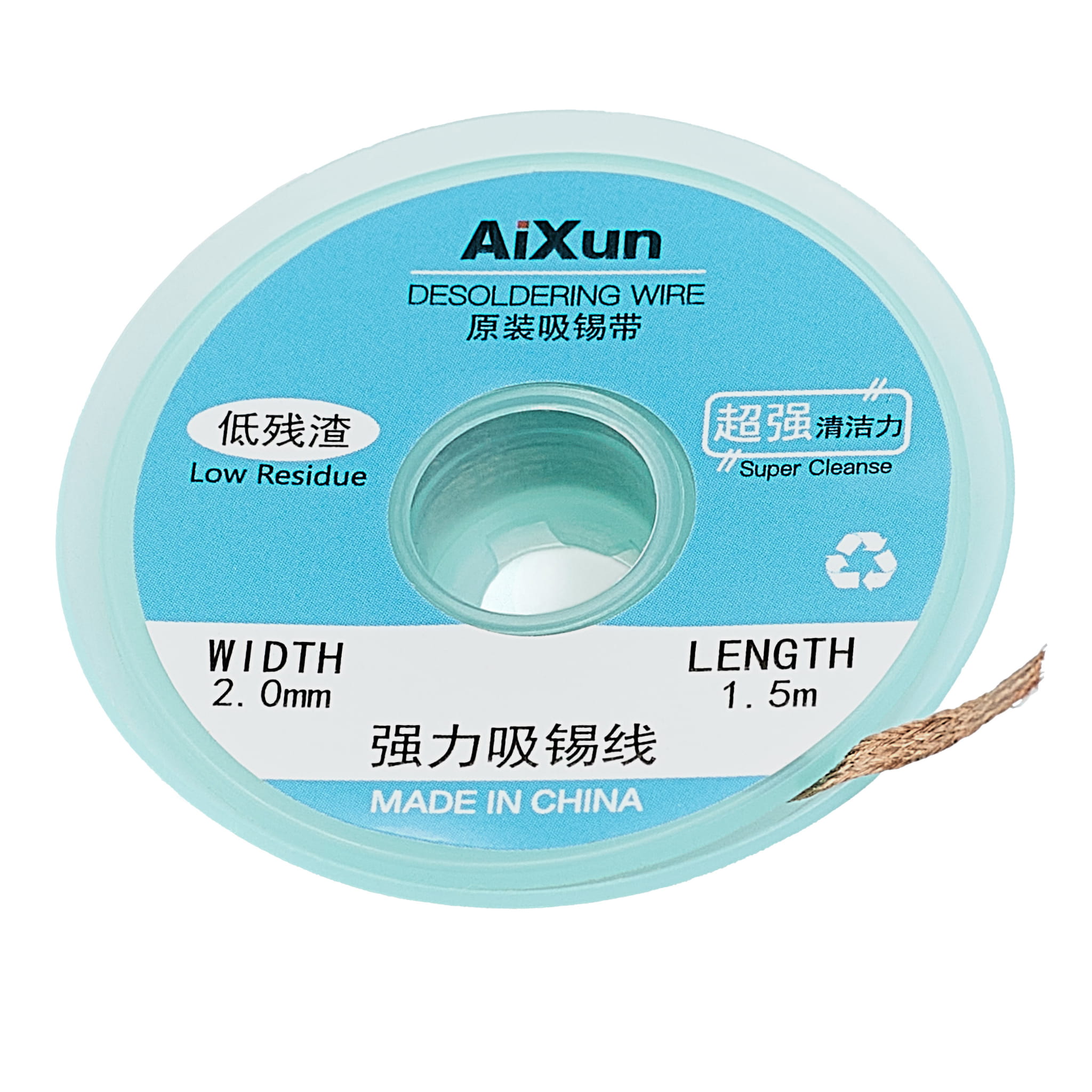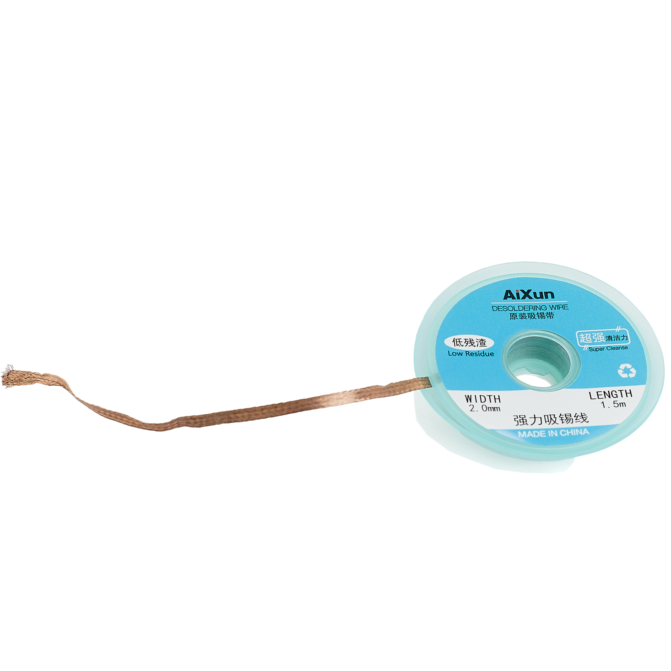 Plecionka miedziana Aixun o szerokości 2 mm i długości 1,5 metra, nawinięta na plastikową szpulkę, jest idealna do odsysania cyny z pól lutowniczych na płytkach PCB. Taśma ta, znana również jako lico lub taśma ssąca, składa się z cienkich przewodów miedzianych i jest wykorzystywana do czyszczenia padów, szczególnie podczas reballingu układów BGA.