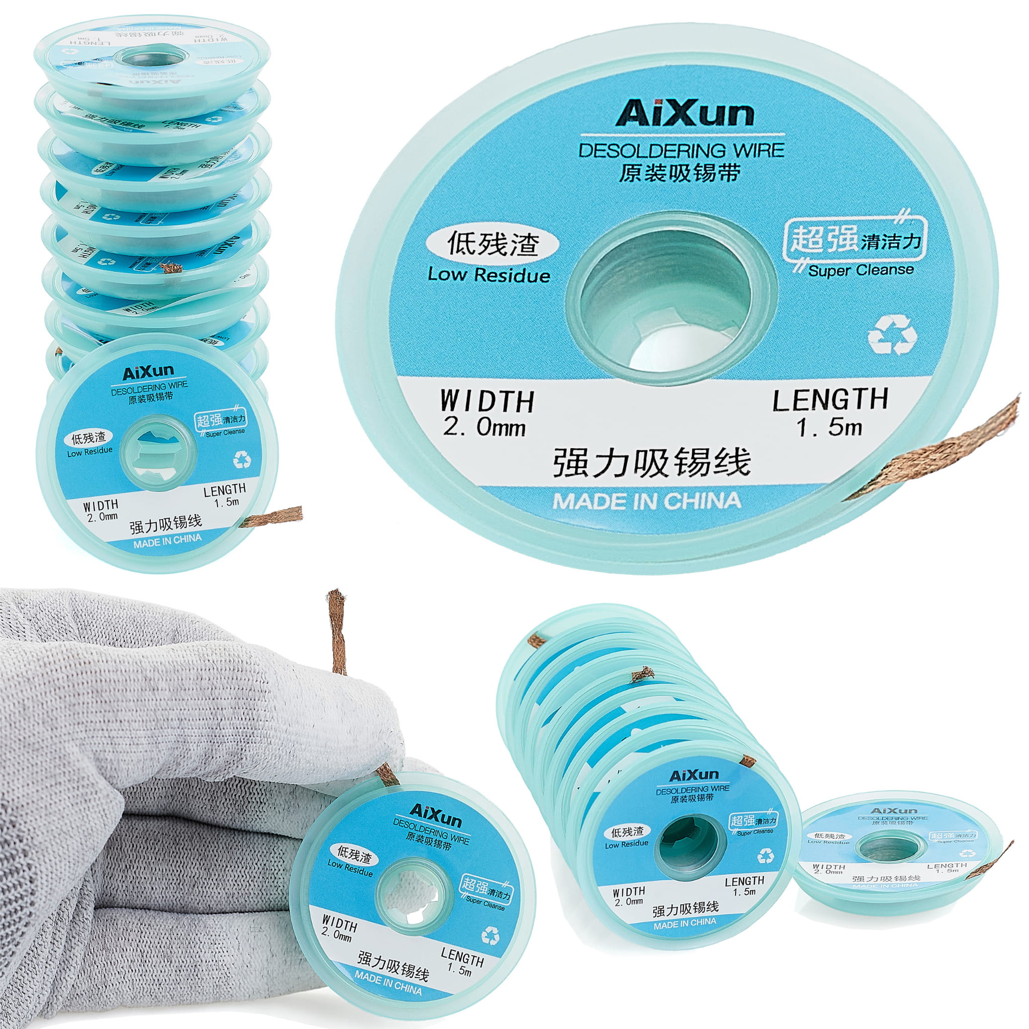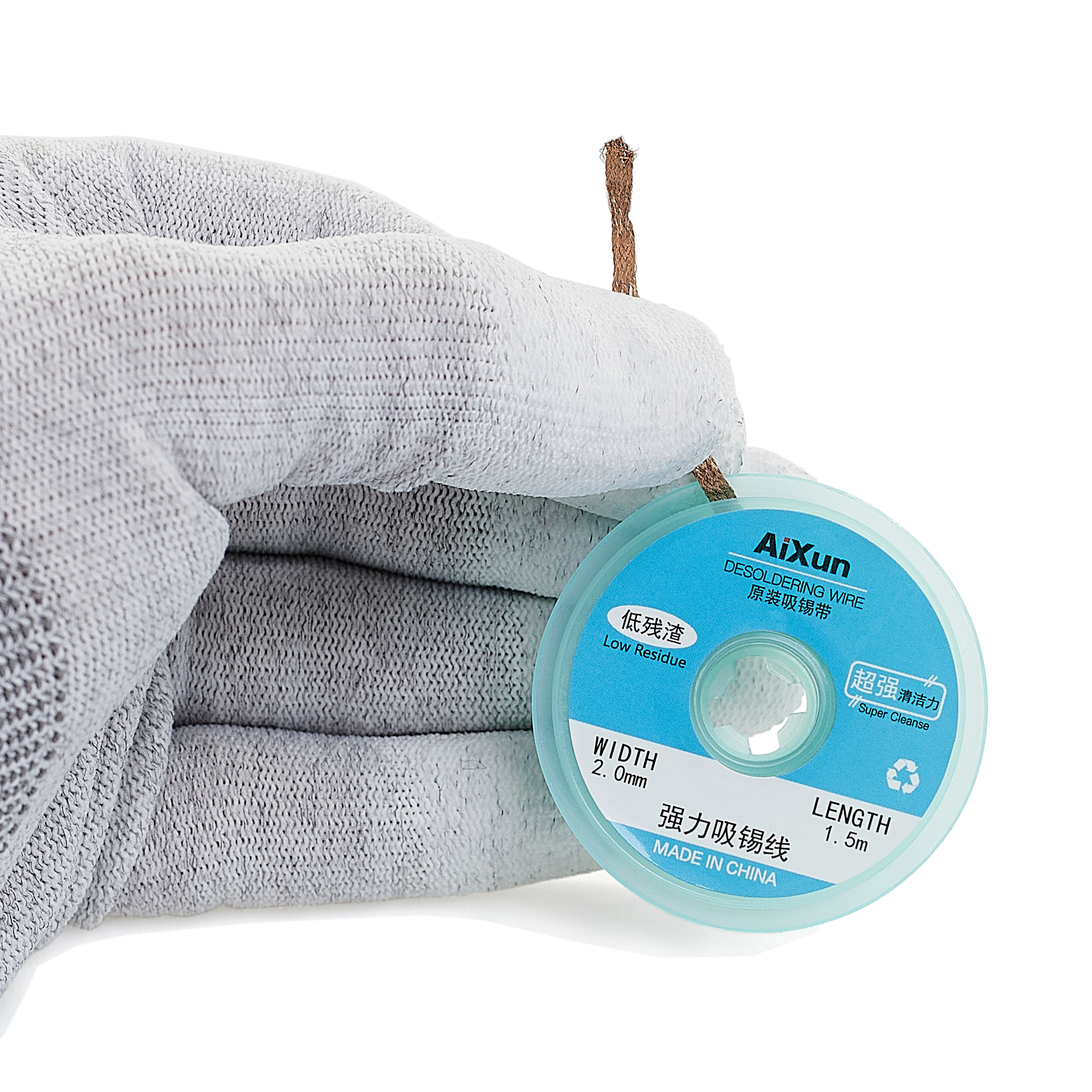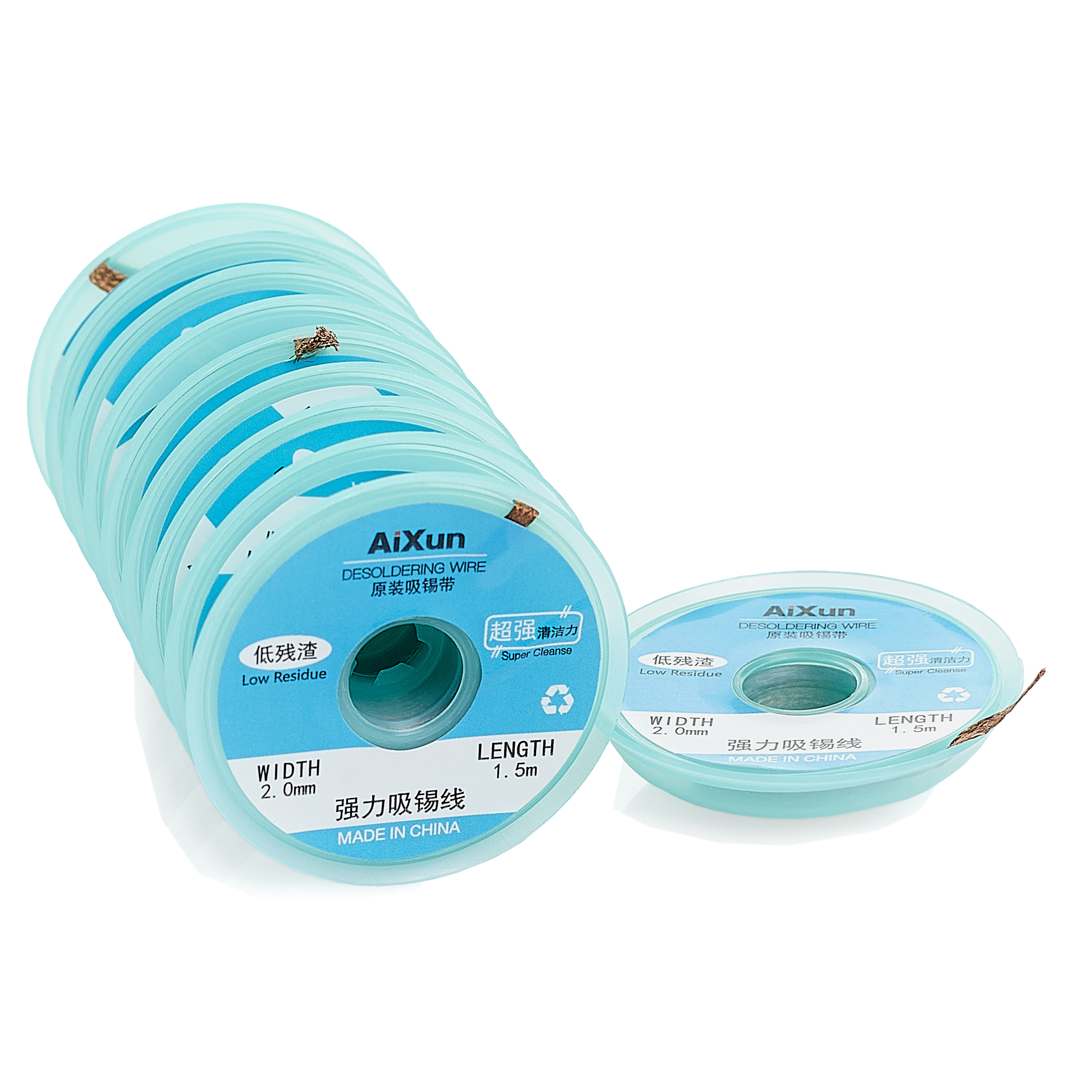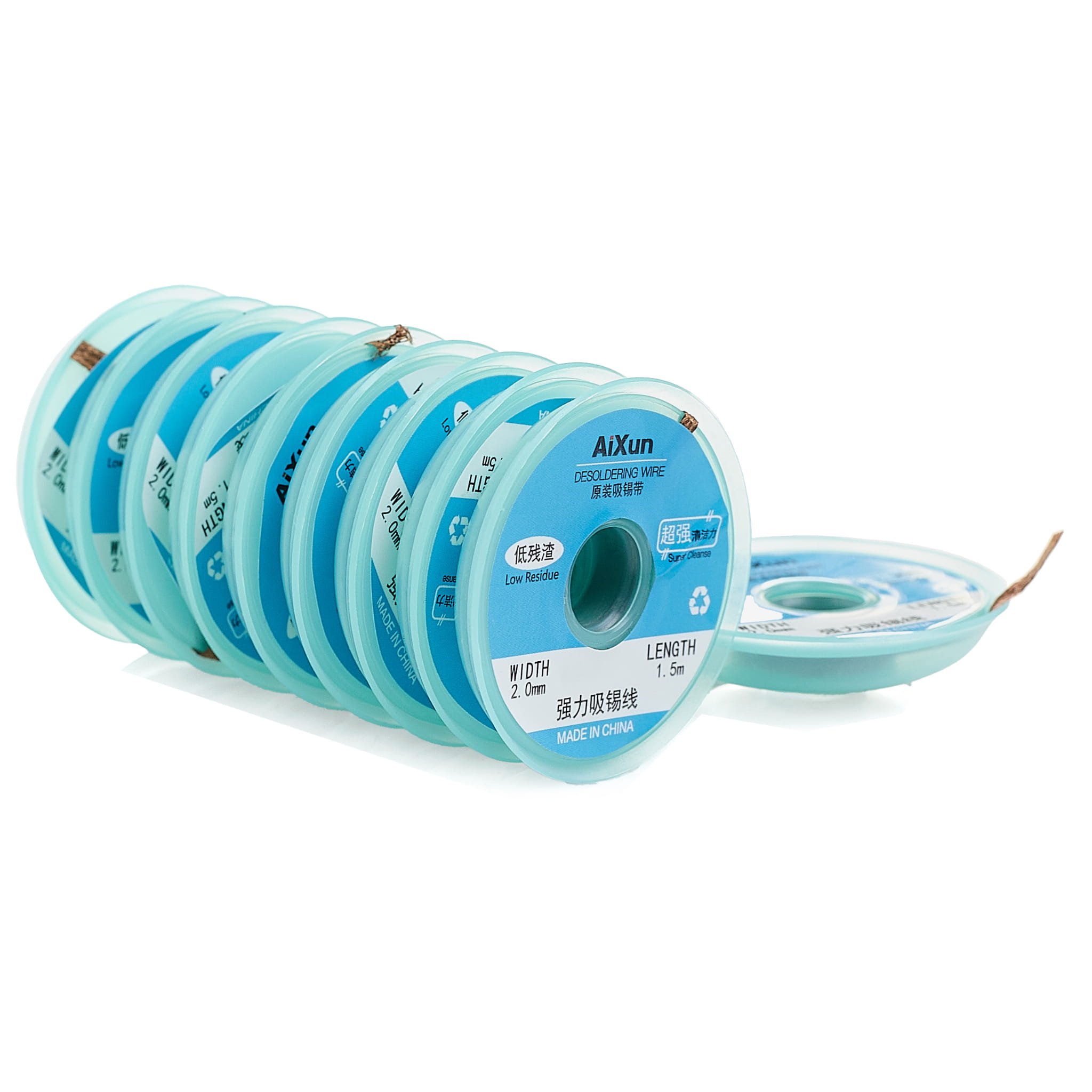 Plecionka miedziana Aixun o szerokości 2 mm i długości 1,5 metra, nawinięta na plastikową szpulkę, jest idealna do odsysania cyny z pól lutowniczych na płytkach PCB. Taśma ta, znana również jako lico lub taśma ssąca, składa się z cienkich przewodów miedzianych i jest wykorzystywana do czyszczenia padów, szczególnie podczas reballingu układów BGA.