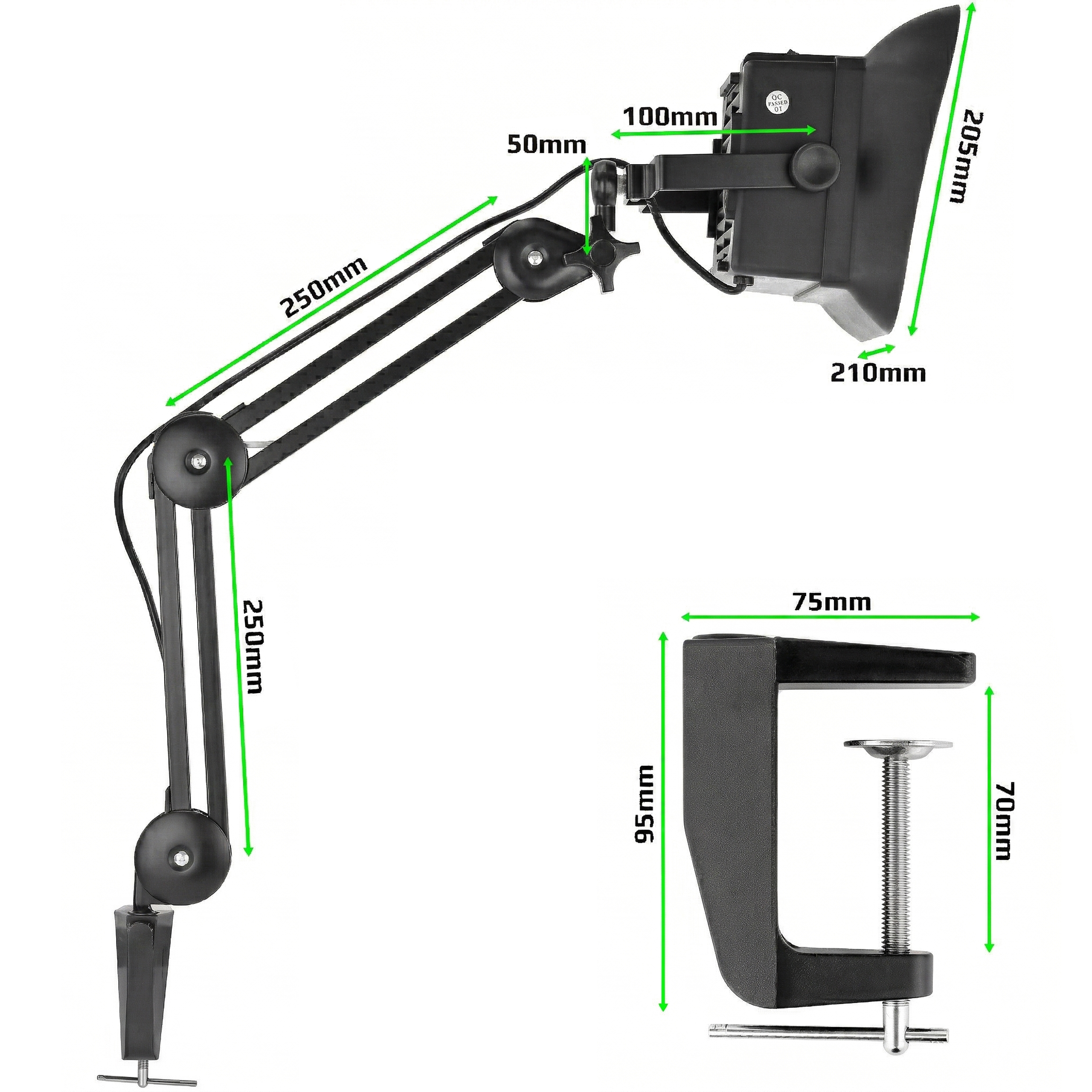 ✅ Ergonomiczny Design: Kompaktowa, przenośna konstrukcja z elastycznym ramieniem ułatwiającym umiejscowienie.