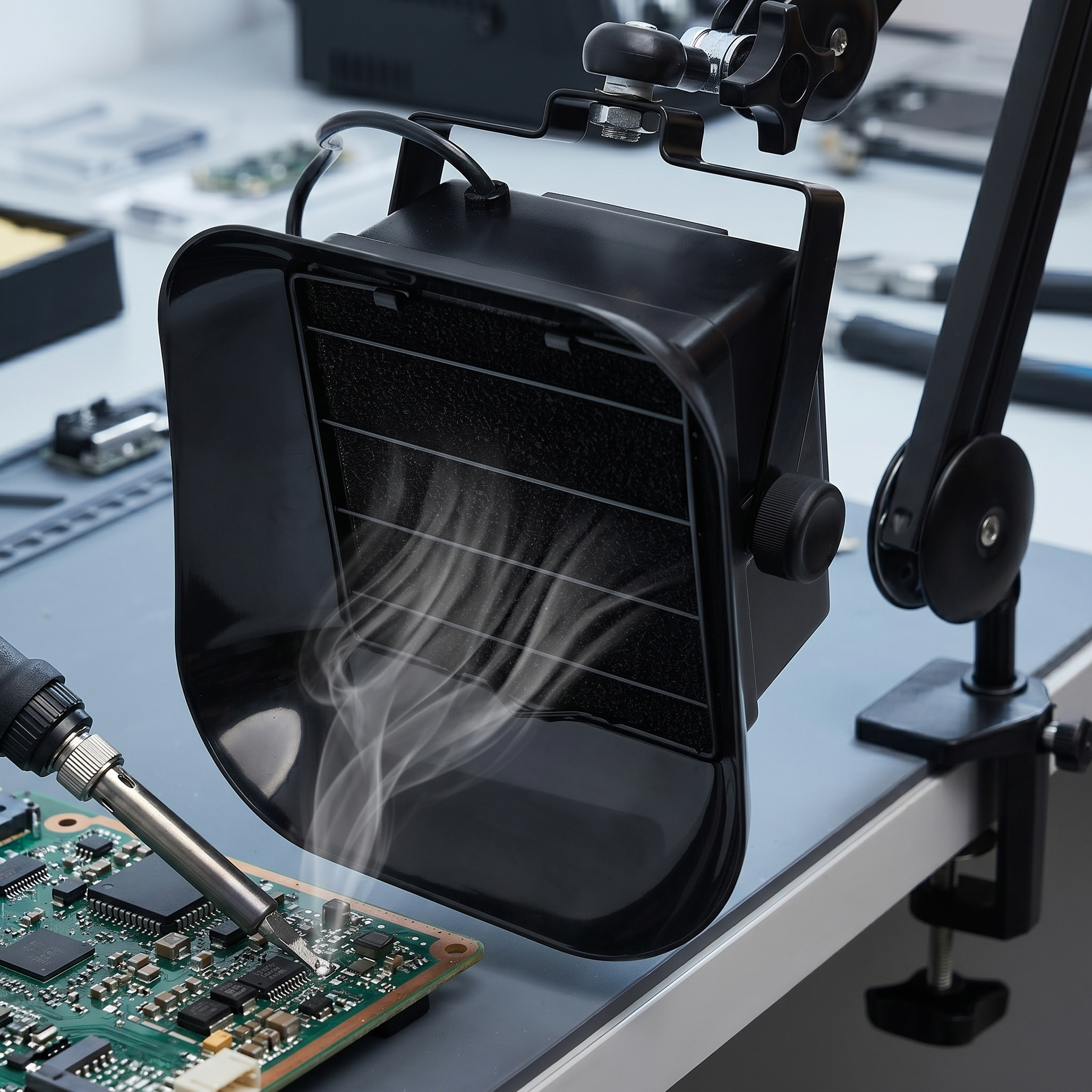 Urządzenie jest intuicyjne w obsłudze, z łatwym dostępem do wymiennych elementów jak filtry, co ułatwia konserwację. Jest idealne dla warsztatów elektronicznych i laboratoriów, z uwzględnieniem szczegółowych danych technicznych jak moc, napięcie i wydajność filtracji. Spełnia normy bezpieczeństwa, minimalizując ryzyko dla zdrowia użytkowników