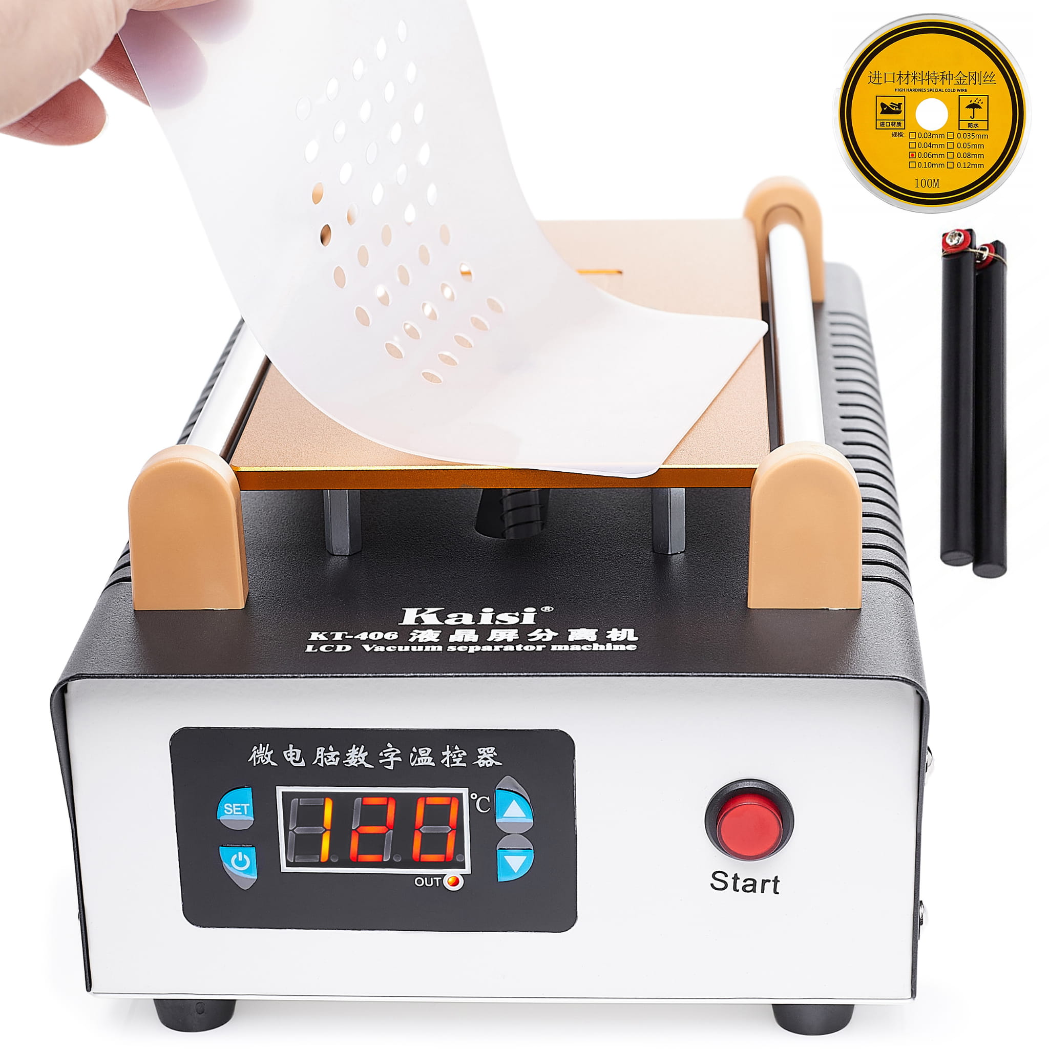 SEPARATOR PODGRZEWACZ Z ZASYSACZEM PRÓŻNIOWYM DO NAPRAW EKARNÓW LCD KAISI KT-406 + Drut Molibdenowy + Uchwyt do drutu