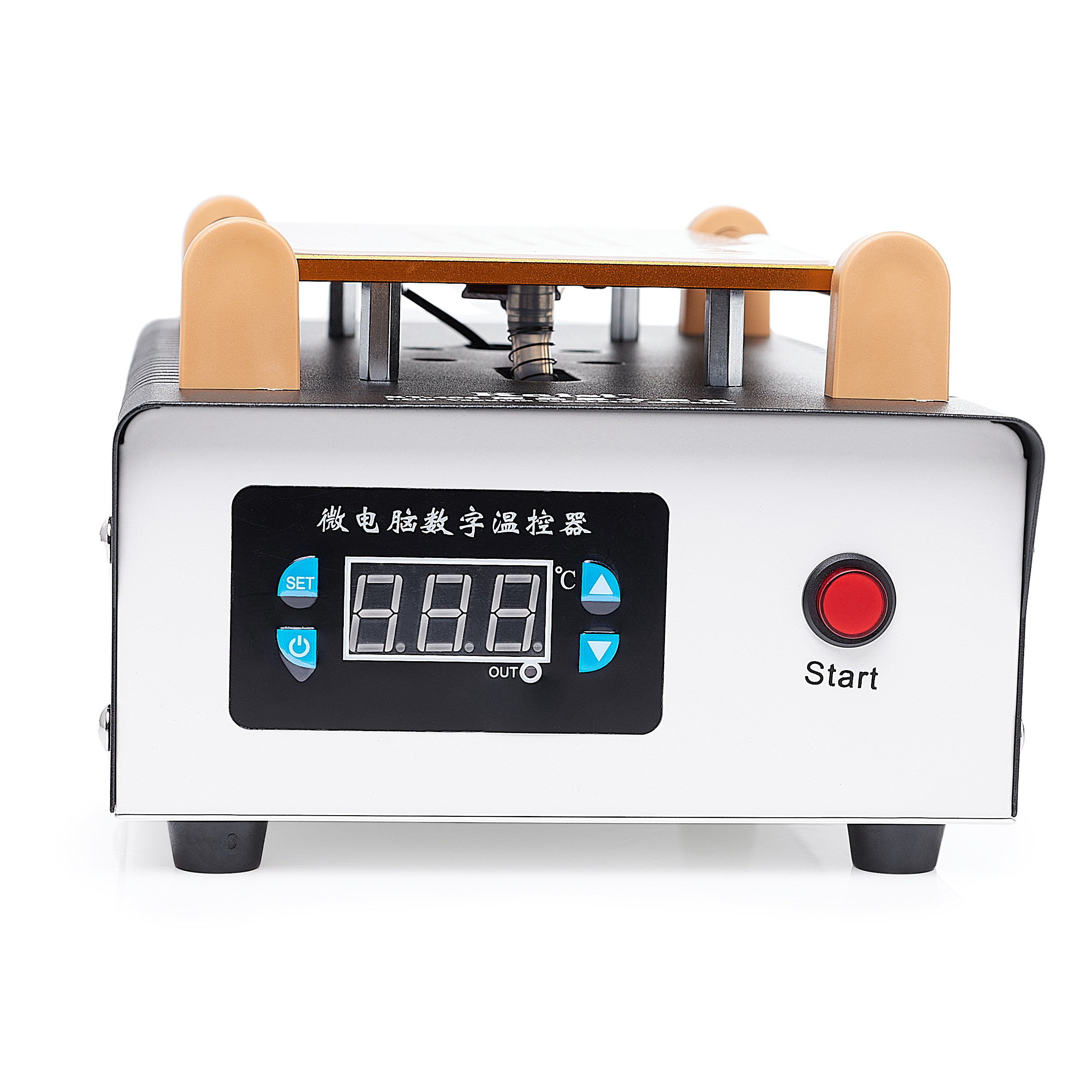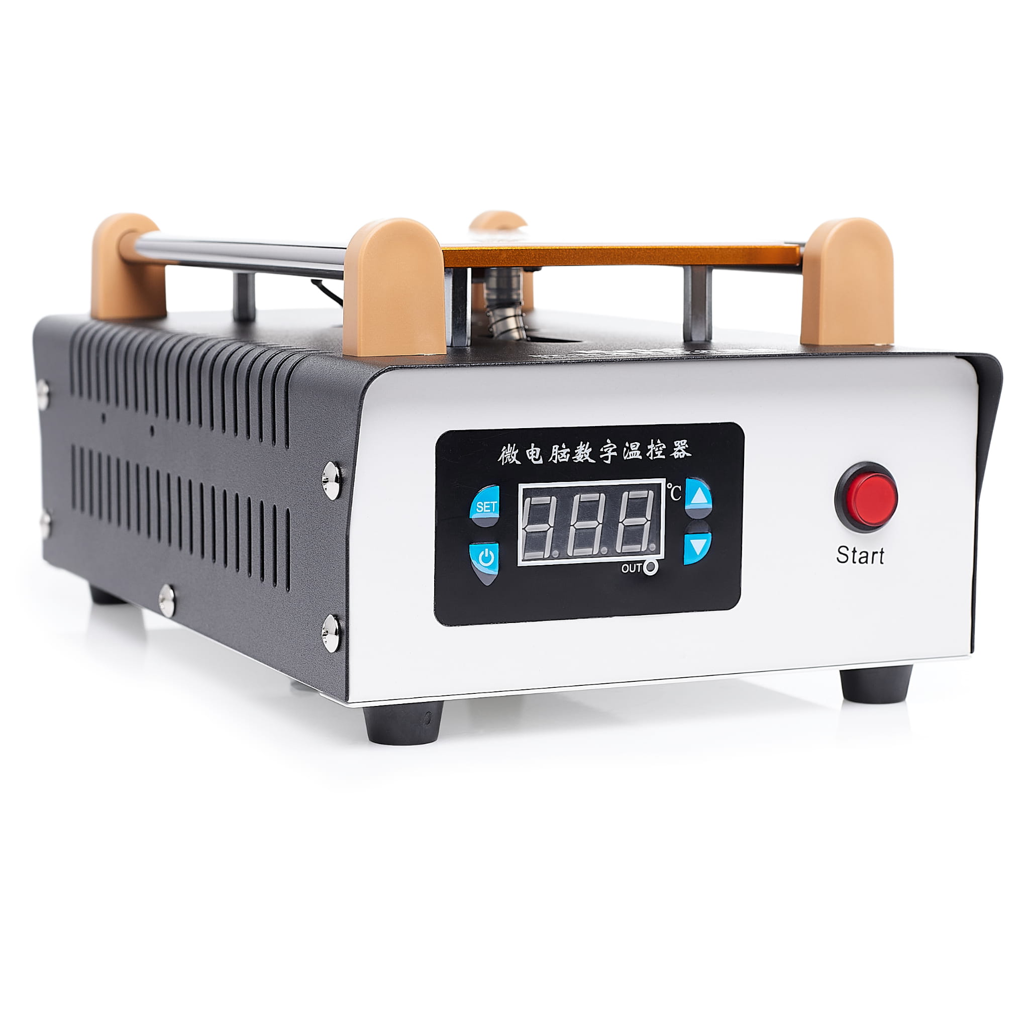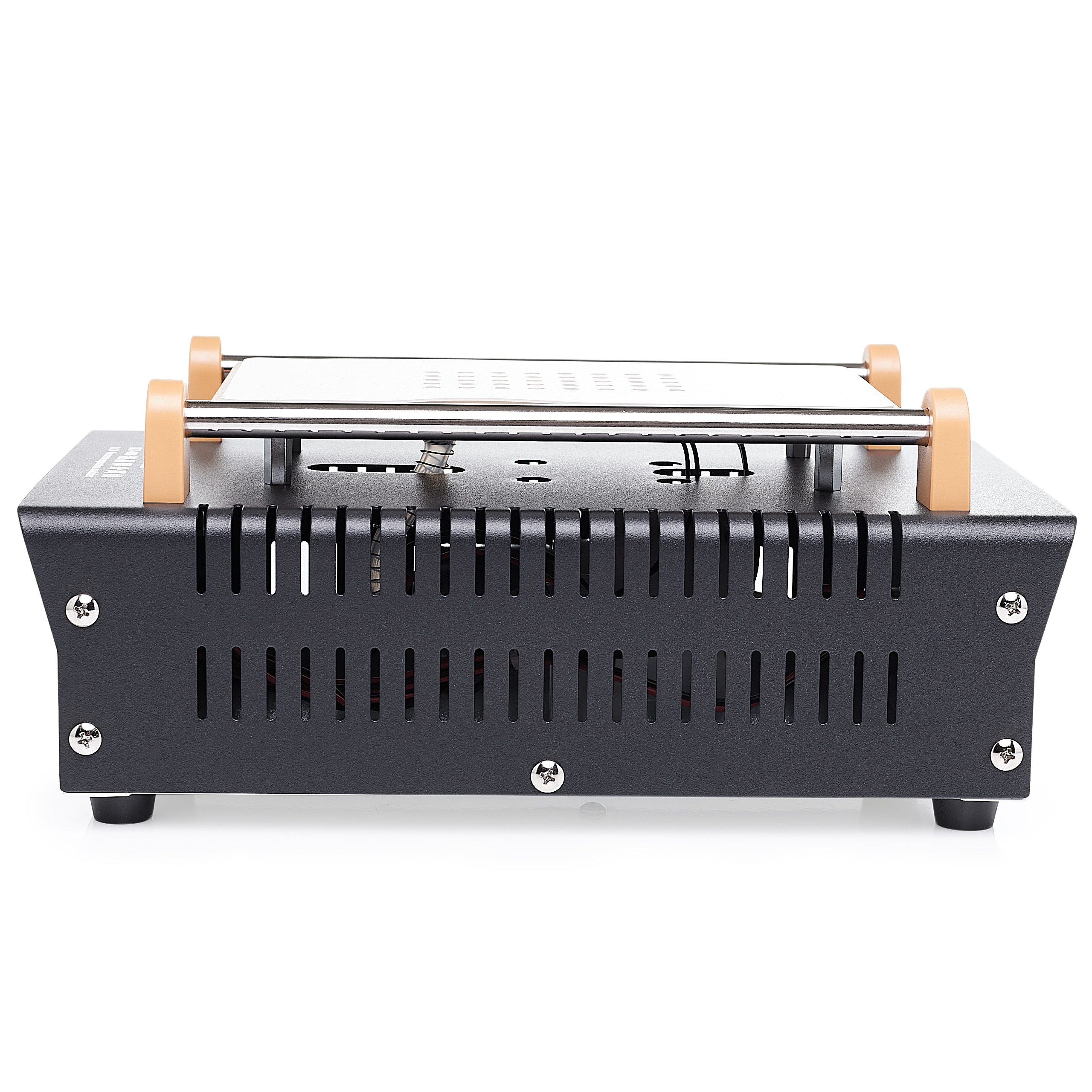 Został wyposażony w płytę grzewczą z precyzyjnie wyprofilowanymi kanalikami, które współpracują z wbudowanym zasysaczem elektrycznym. Dzięki temu ekran jest stabilnie utrzymywany na powierzchni roboczej, co zapobiega jego przesuwaniu podczas podgrzewania i demontażu. Aluminiowa płyta grzewcza nagrzewa się szybko i równomiernie, co pozwala na sprawne przeprowadzenie naprawy bez zbędnego oczekiwania. To rozwiązanie ułatwia pracę, zwiększa precyzję oraz minimalizuje ryzyko uszkodzenia delikatnych komponentów.