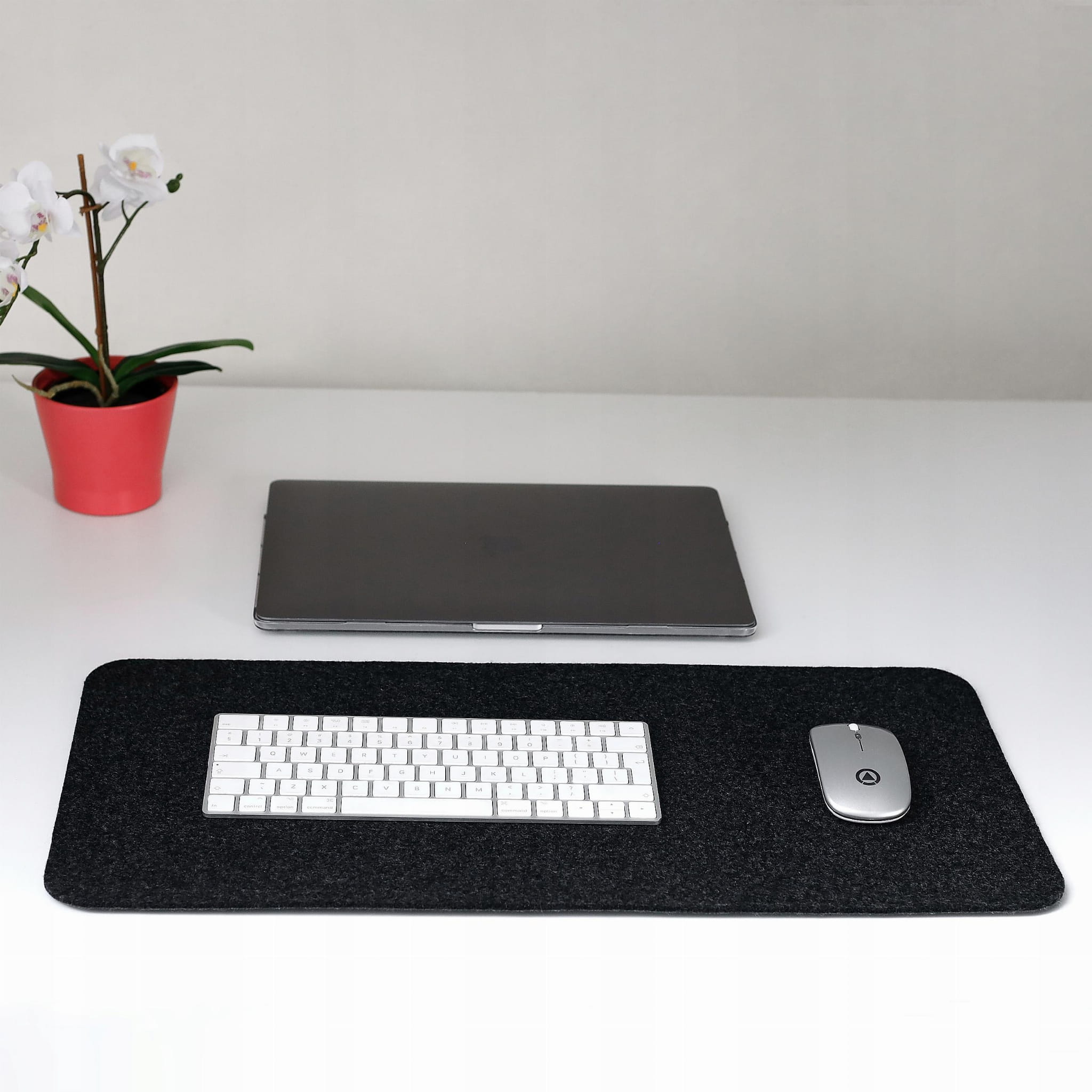 Podkładka wykonana z wysokiej jakości grafitowego filcu, który estetycznie prezentuje się w miejscu pracy, dzięki swojej barwie będzie pasowała do każdego rodzaju powierzchni, czy dodatków umieszczonych w jego obrębie. Używanie myszki, oraz klawiatury na tego typu powierzchni jest bardzo komfortowe i przyjemne dla dłoni.