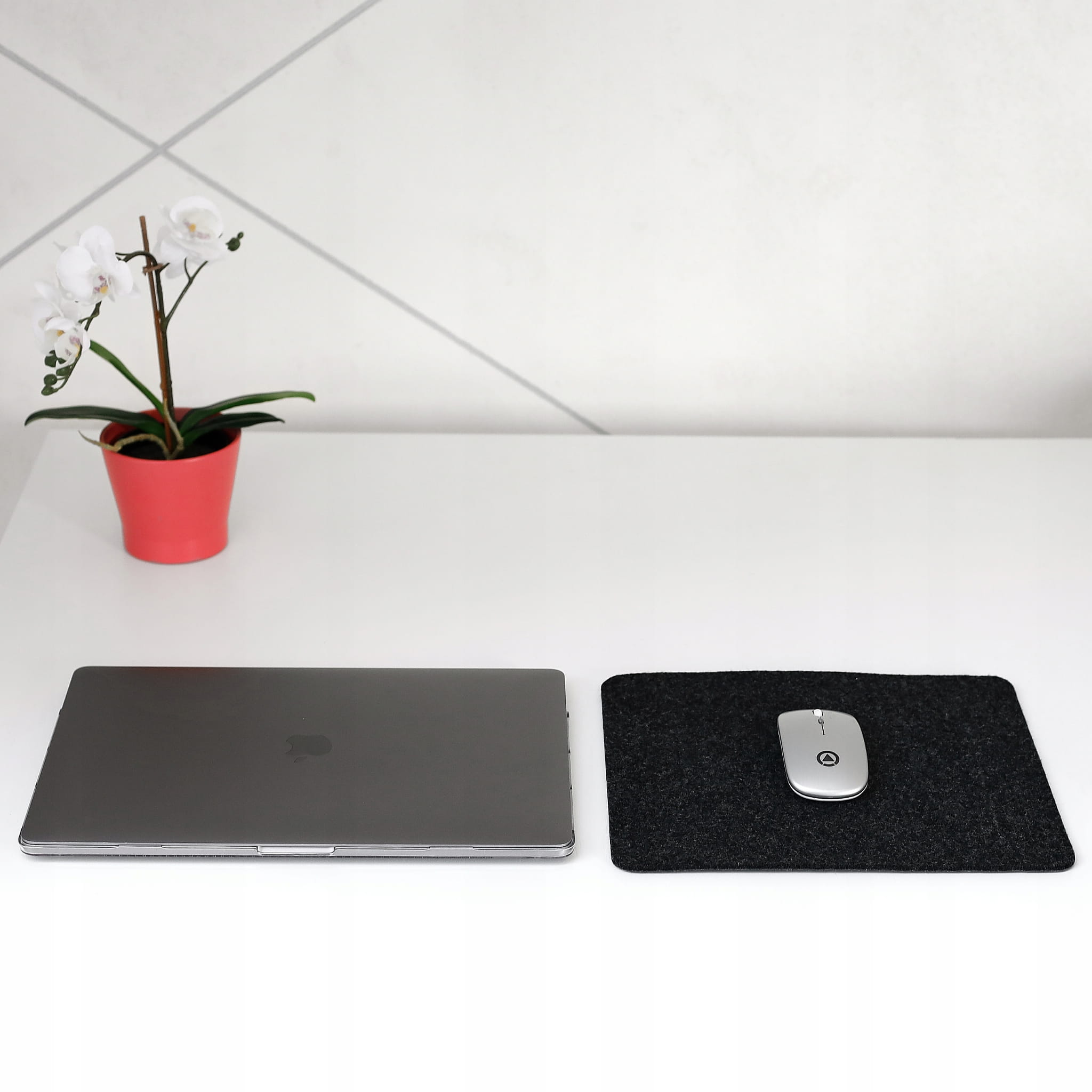 Podkładka wykonana z wysokiej jakości grafitowego filcu, który estetycznie prezentuje się w miejscu pracy, dzięki swojej barwie będzie pasowała do każdego rodzaju powierzchni, czy dodatków umieszczonych w jego obrębie. Używanie myszki na tego typu powierzchni jest bardzo komfortowe i przyjemne dla dłoni.