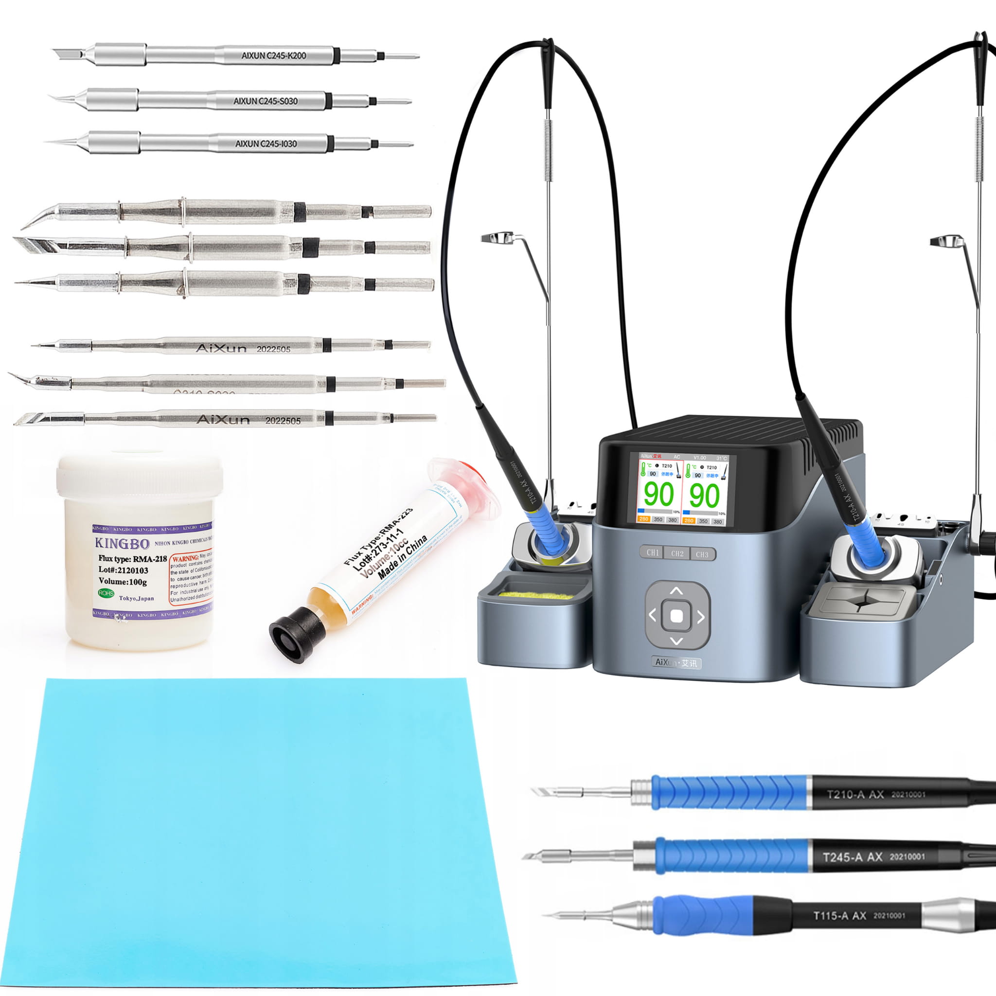 Podwójna precyzyjna stacja lutownicza Aixun (T245+T210+T115) T420D w zestawie z 9 grotami (K,S,I) + Akcesoria do lutowania