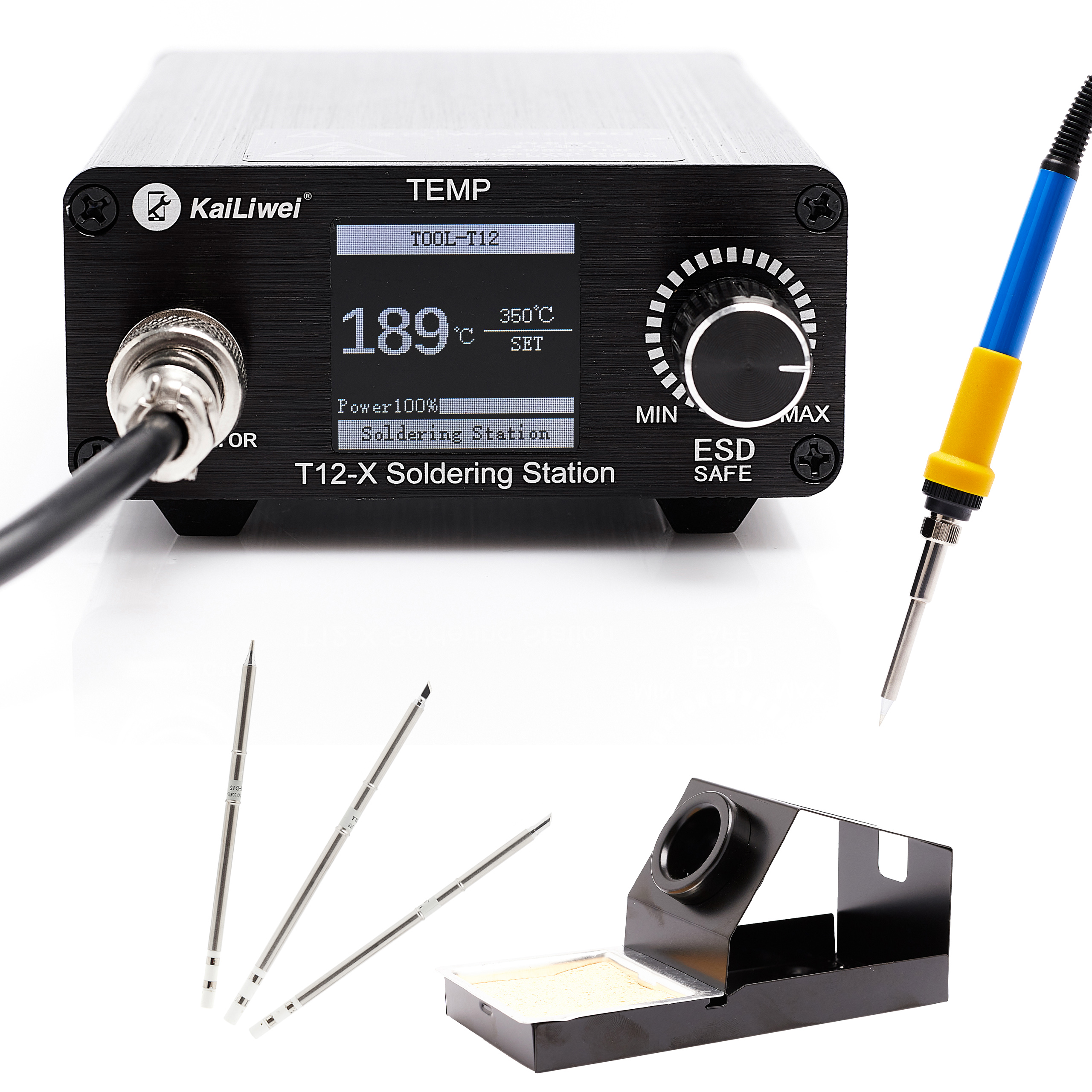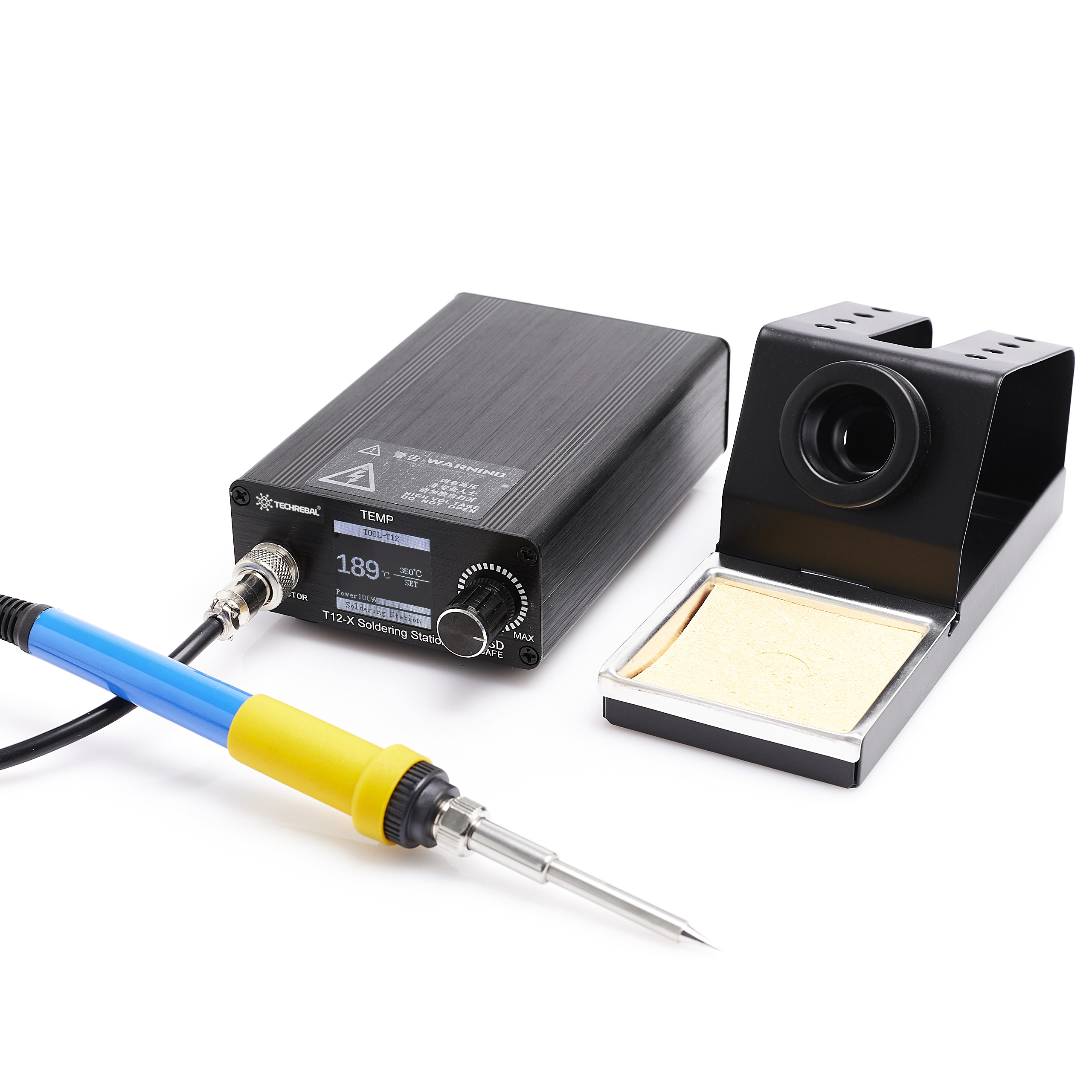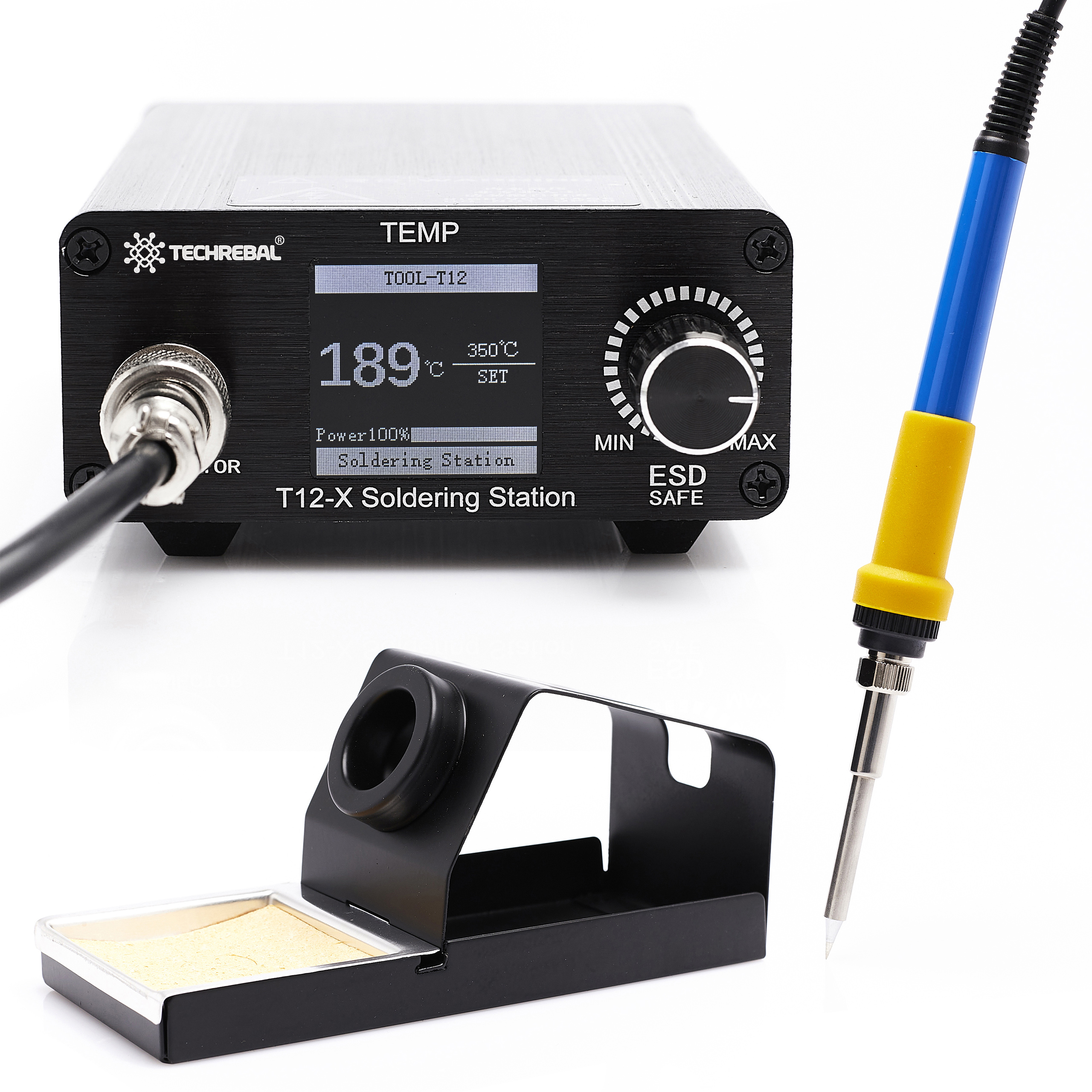 Precyzyjna stacja lutownicza Techrebal T12-X na groty z wbudowaną grzałką T12 + zestaw grotów (T12KU + T12CF4 + T12D12)