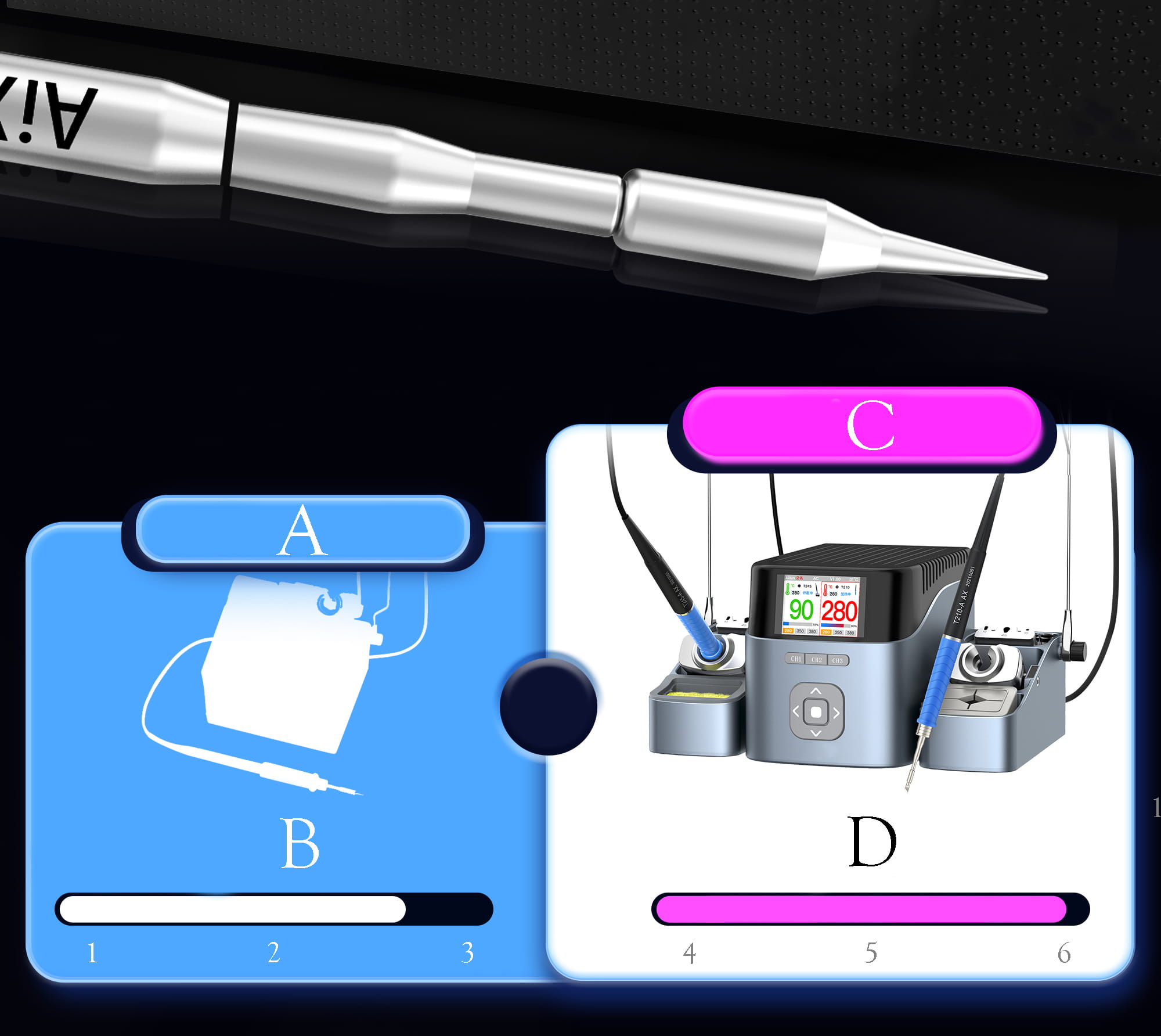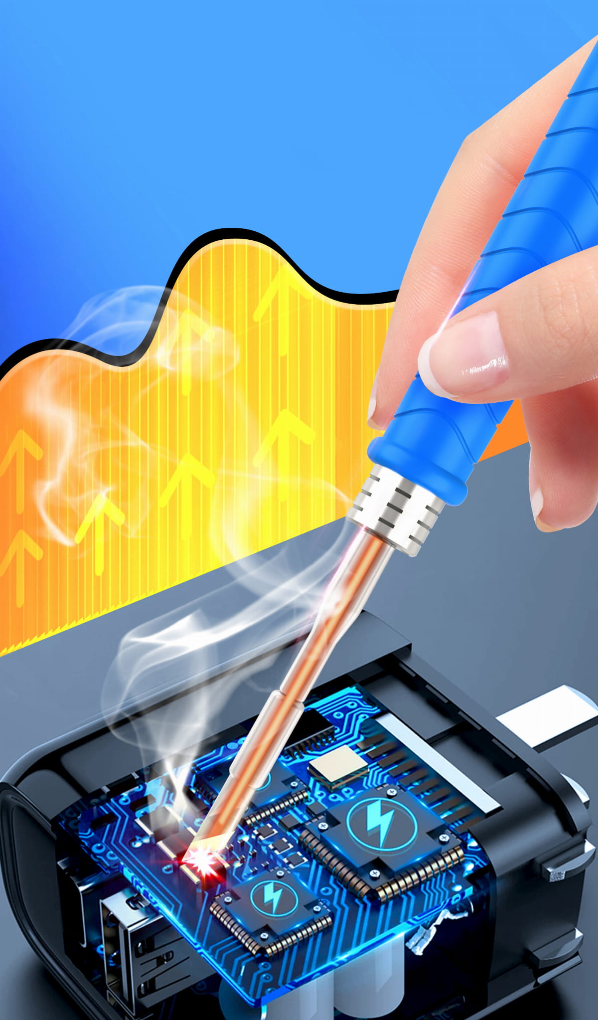 ⚡ Nagrzewanie równomiernie emitujące ciepło, konstrukcja typu „wszystko w jednym” pomaga zmniejszyć utratę ciepła, nagrzewa się szybko, płynnie topi cynę, zwiększa wydajność lutowania.