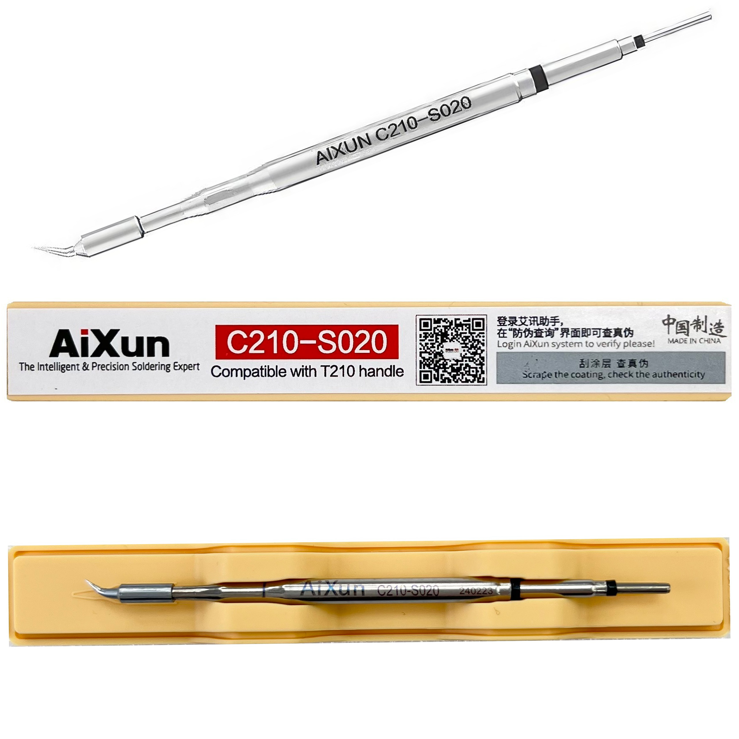 Precyzyjny grot lutowniczy Aixun C210-S020 zagięty typ S 0,2mm, 78,28mm długości
