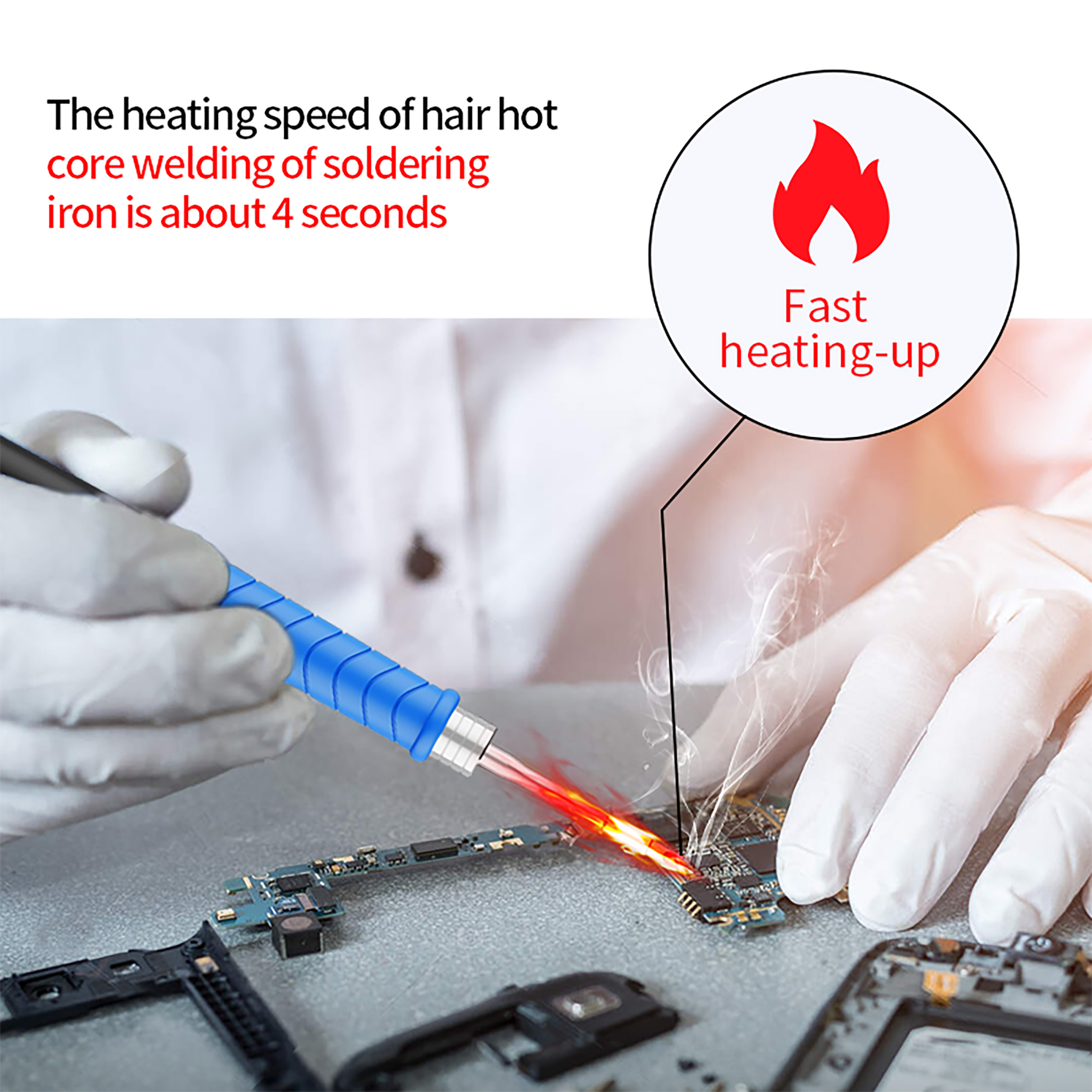 ✅ Czas nagrzewania trwa około 4 sekund, temperatura jest dokładna, grot idealny do precyzyjnego lutowania wysokiej klasy elektroniki.