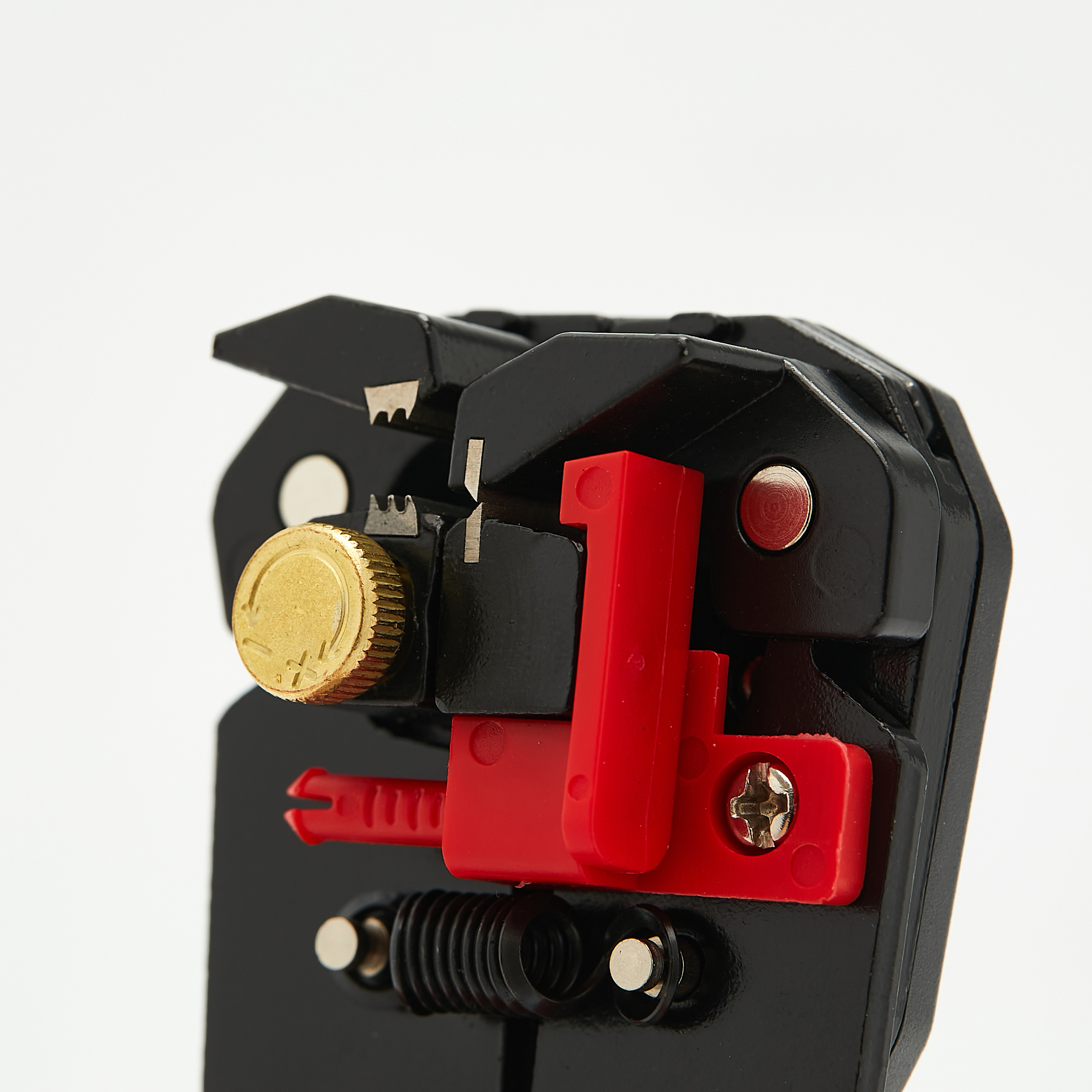 Ściągacz został wyposażony w automatyczny mechanizm, dzięki któremu podczas pracy nie musimy wkładać dużo siły w ściąganie izolacji. Dodatkowo zainstalowano w nim pokrętło regulacji umożliwiające dostosować ściągacz w zależności od grubości przewodu.