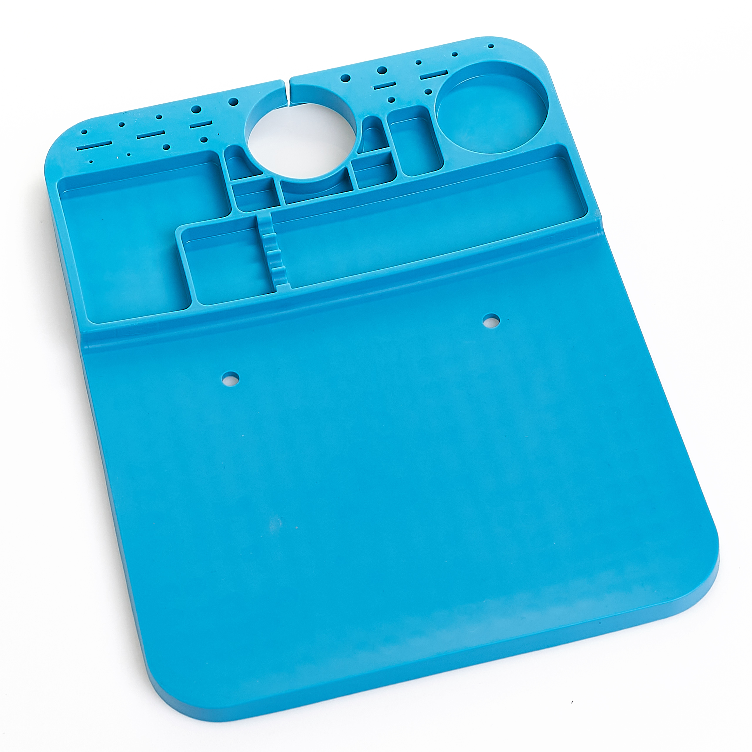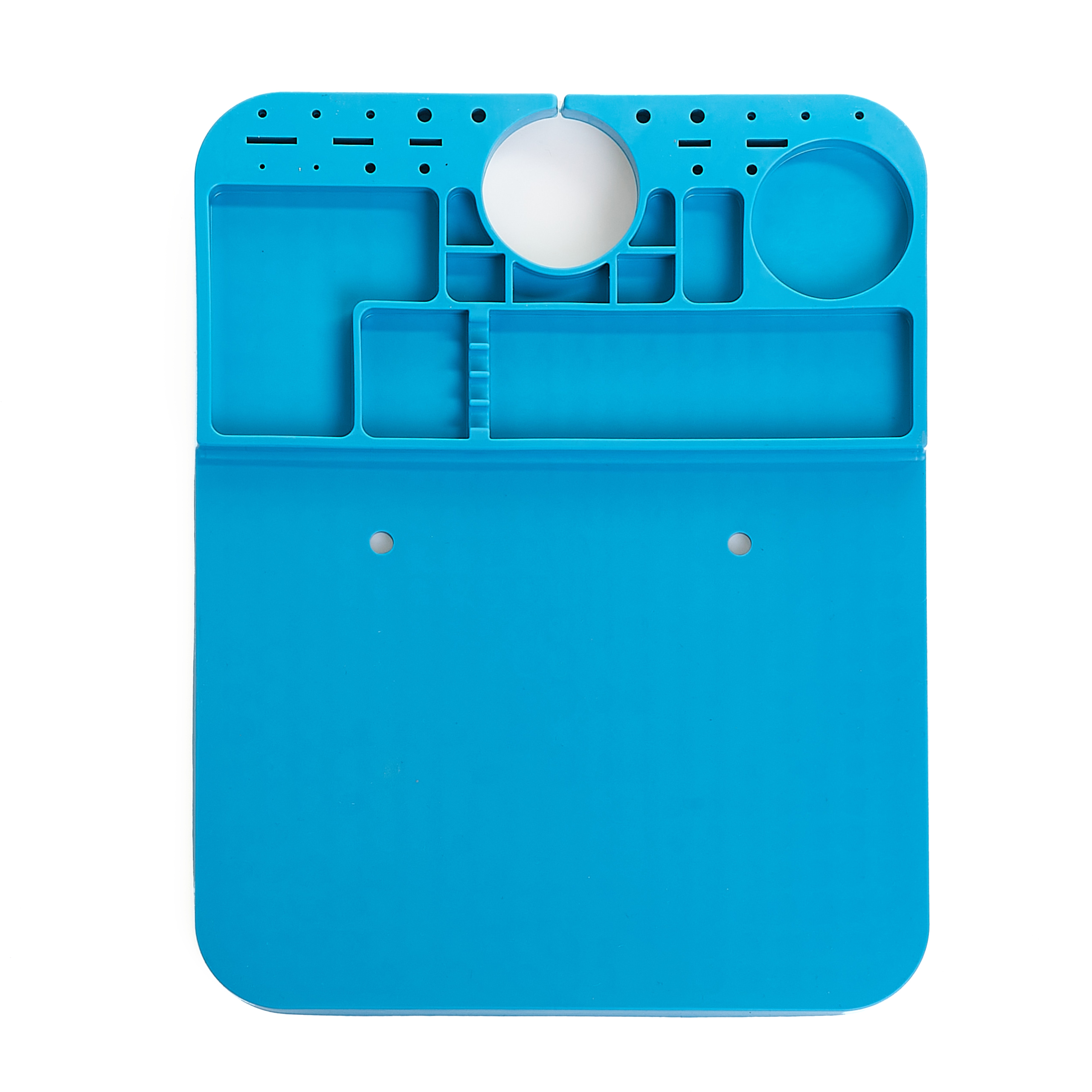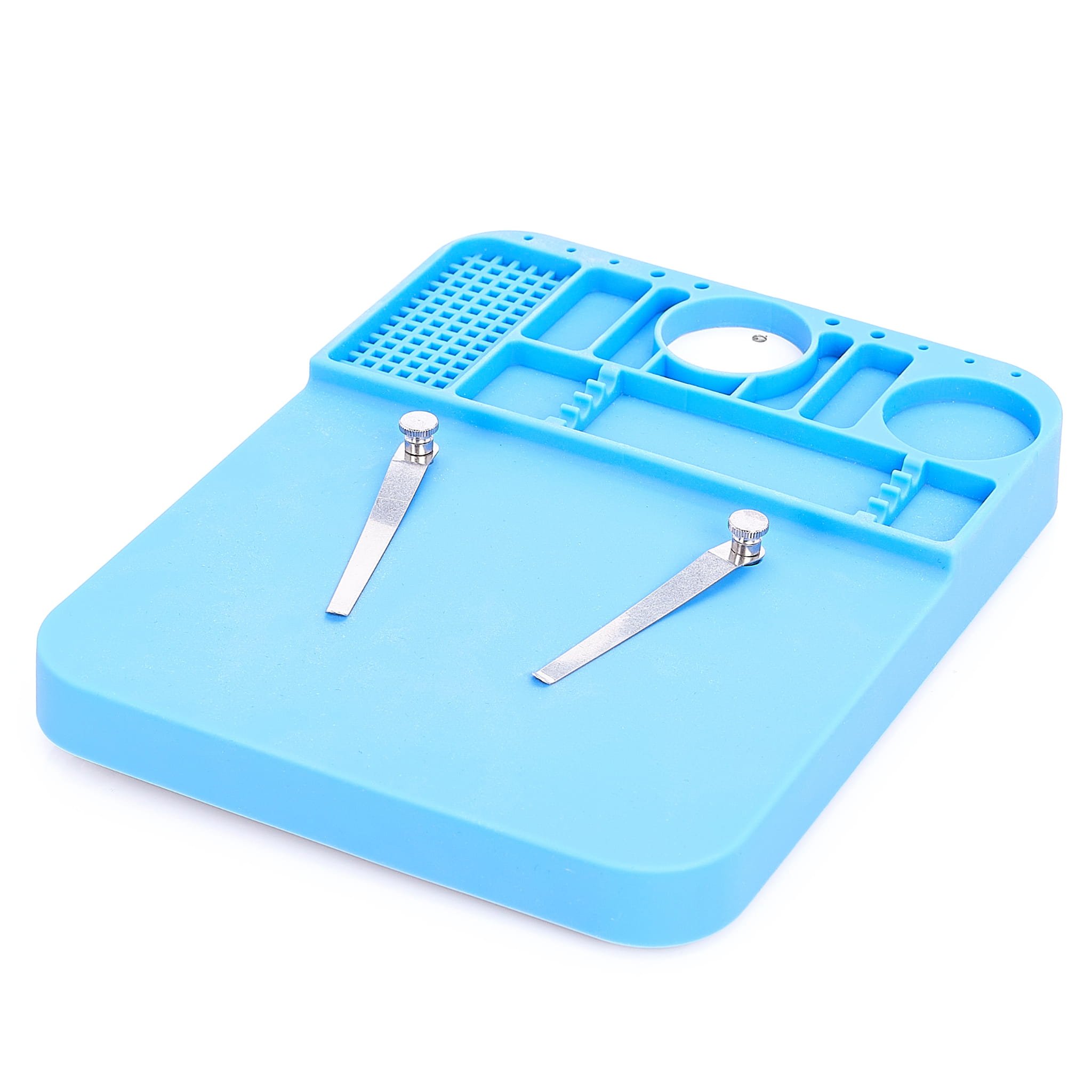 Wysokiej jakości mata silikonowa z wyprofilowanymi przegródkami poprawiająca komfort pracy w każdym serwisie. Antystatyczne właściwości oraz specjalne przegrody umożliwiają organizowanie i segregację elementów elektronicznych, śrubek itp. podczas pracy. Duża płaska powierzchnia oraz odporność na wysoką temperaturę pozwala na lutowanie płyt, ekranów położonych bezpośrednio na macie. Mata odporna na bardzo wysoką temperaturę do 500 ° C, pozwala na lutowanie bezpośrednio na niej. Wyposażona została w wiele różnych przegródek gdzie można umieścić np. śrubokręty, śruby, topniki, cynę, oraz inne małe elementy wykorzystywane w serwisie. Idealnie sprawdzi się do serwisów zajmujących się naprawą telefonów komórkowych, tabletów, komputerów, oraz innych miejsc gdzie potrzebna jest porządna mata antystatyczna z odpornością na wysoką temperaturę. Matę można czyścić wodą, alkoholem izopropylowym, lub innym płynem do czyszczenia płyt PCB.