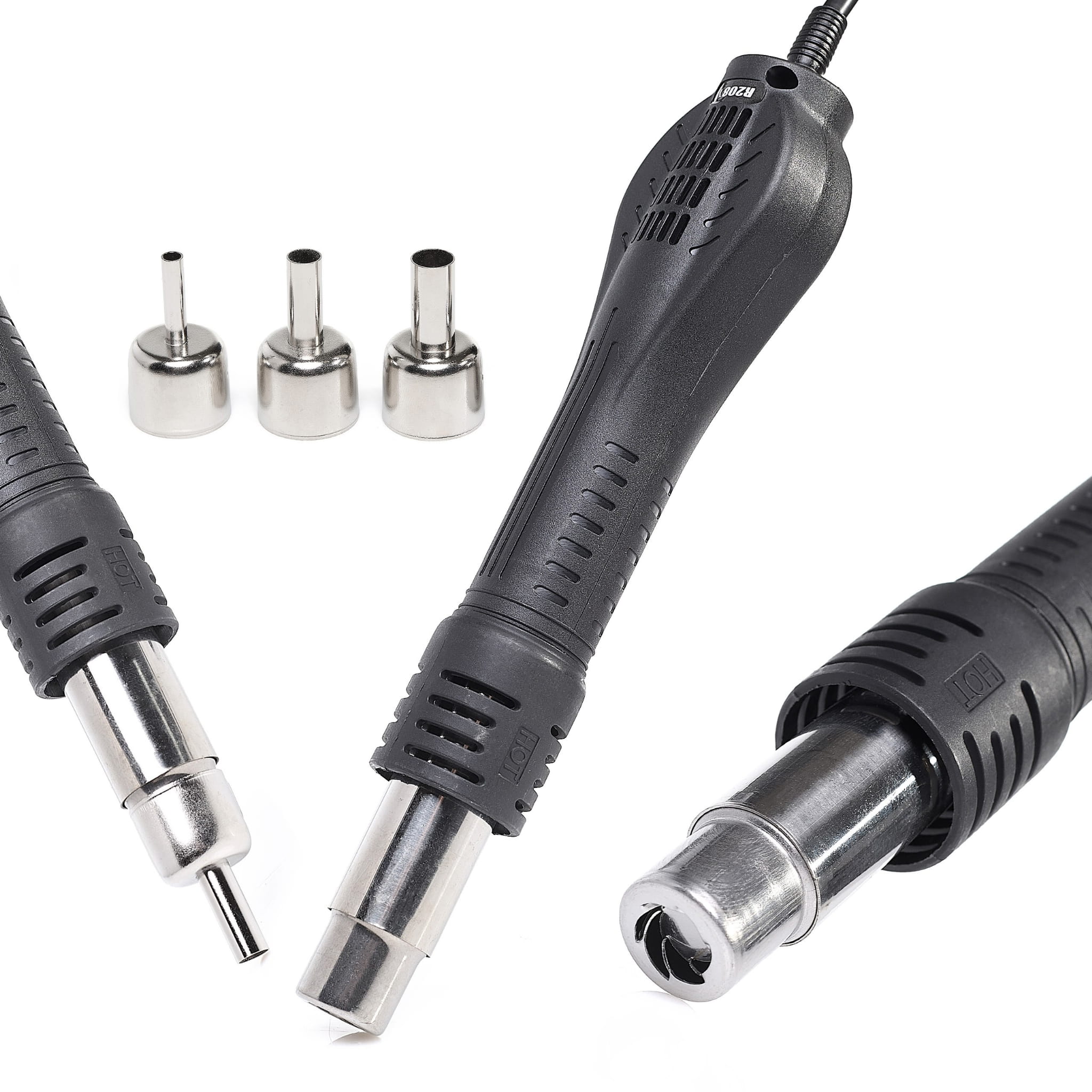 ✅ Trzy wymienne dysze pozwalają na precyzyjne dopasowanie strumienia gorącego powietrza do rozmiaru i kształtu lutowanych elementów.