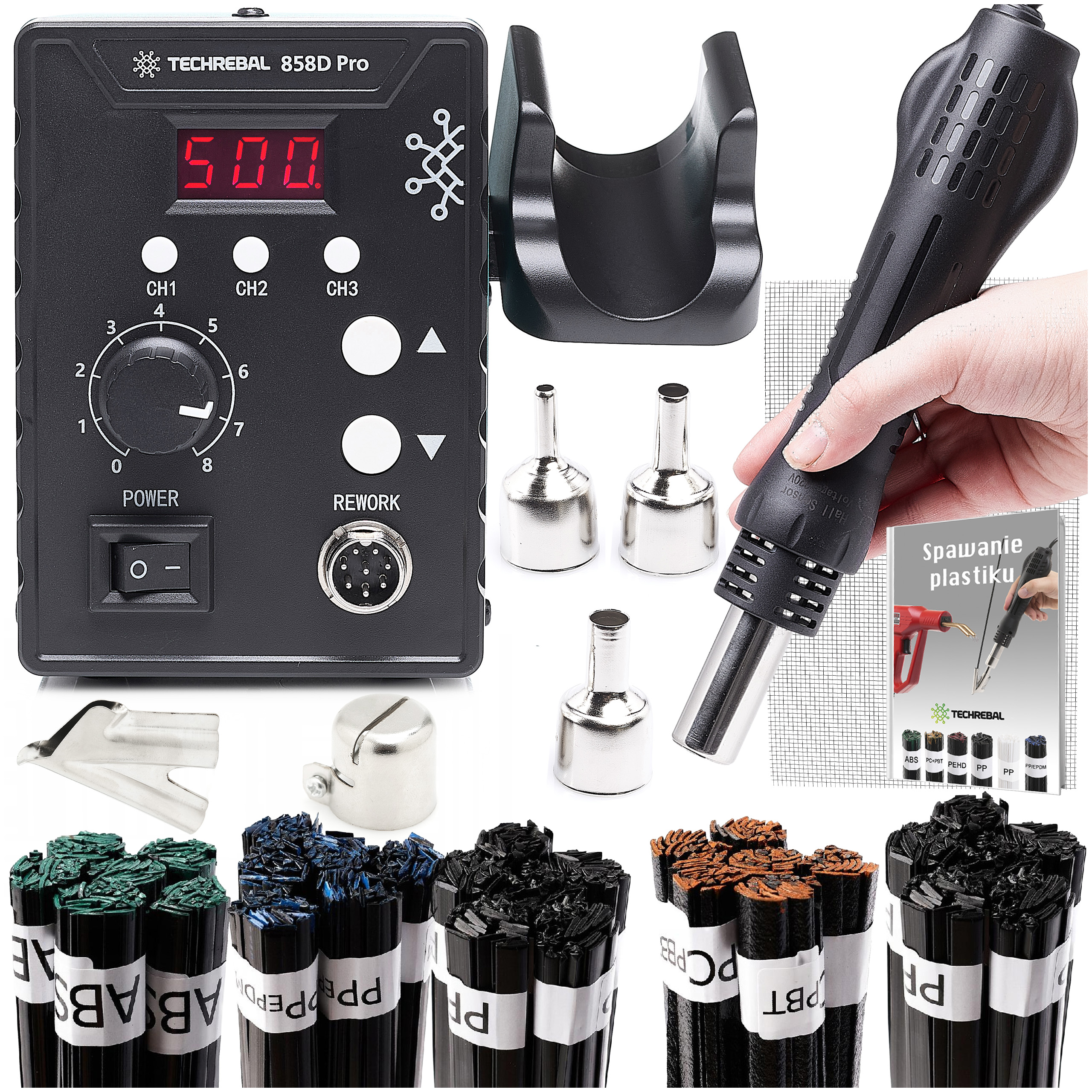 SPAWARKA PLASTIKU LUTOWNICA HOT AIR TECHREBAL 858D PRO + SPOIWA 500G 5 RODZAJÓW SIATKA ZESTAW 5 DYSZ