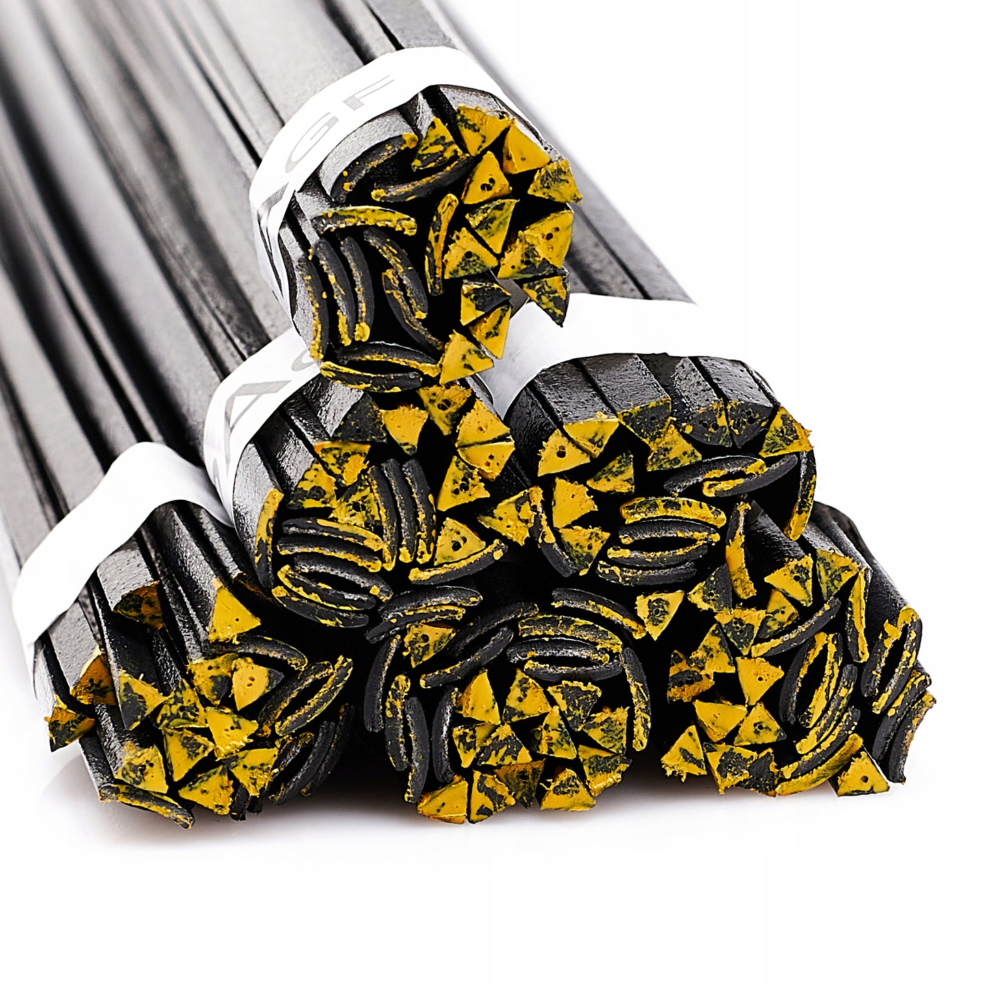 Spoiwo służące do profesjonalnych zastosowań, wysokiej jakości, czysty granulat. Staranie wyselekcjonowana, opisana i zważona wiązka 100 gramowego spoiwa w mieszance pasków i trójkątów.