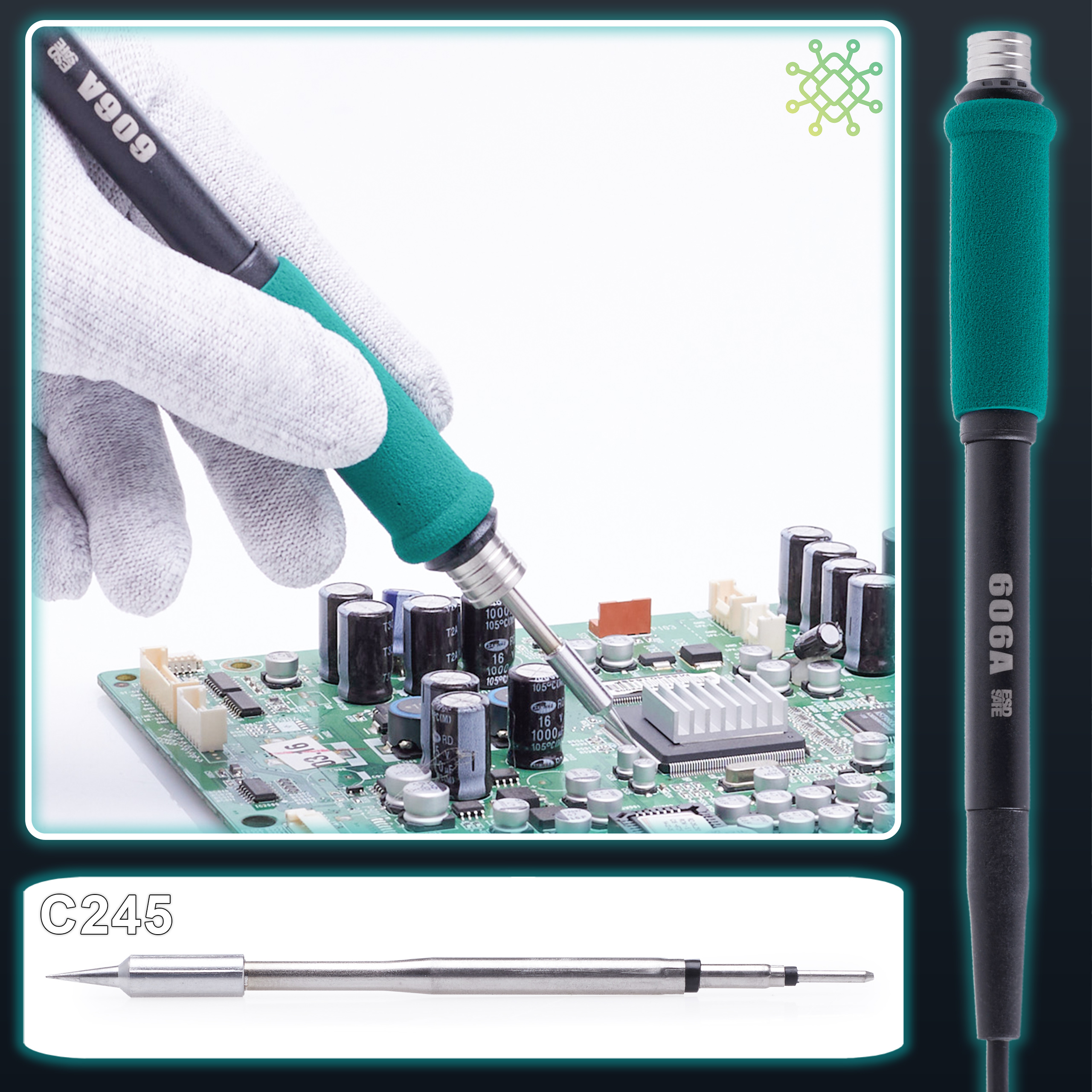 ✅ Obsługa grotów C245 umożliwia pracę z profesjonalnym osprzętem, który zapewnia równomierne przewodzenie ciepła, co znacznie zwiększa jakość i trwałość połączeń lutowanych.